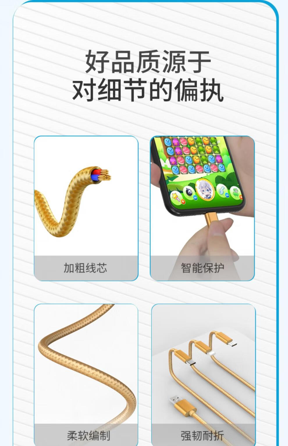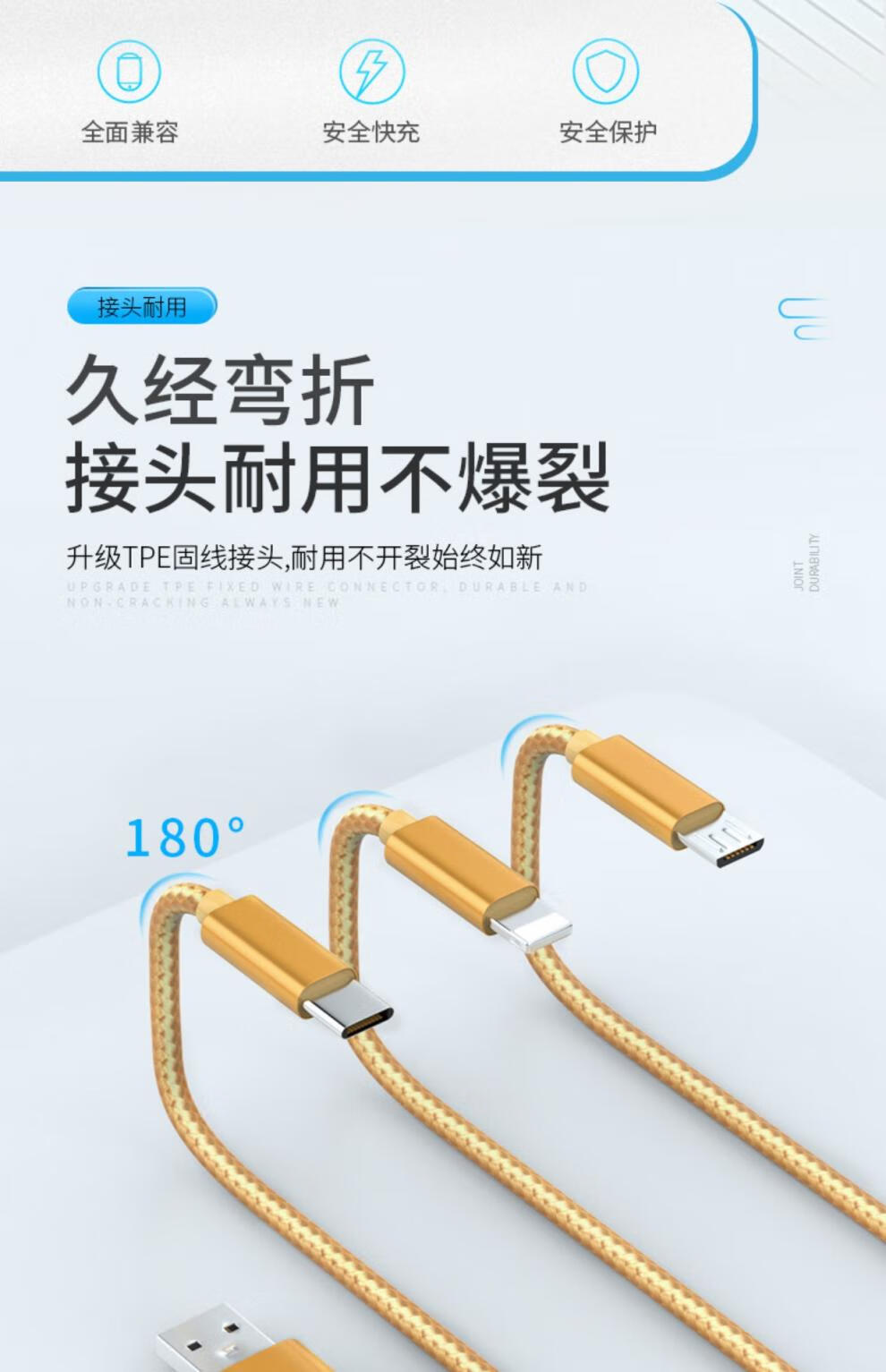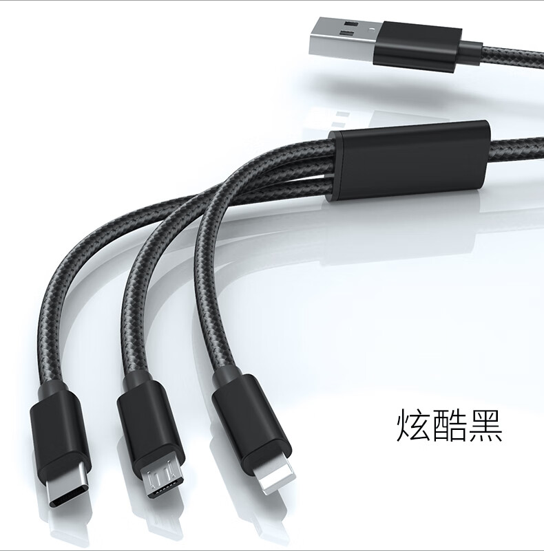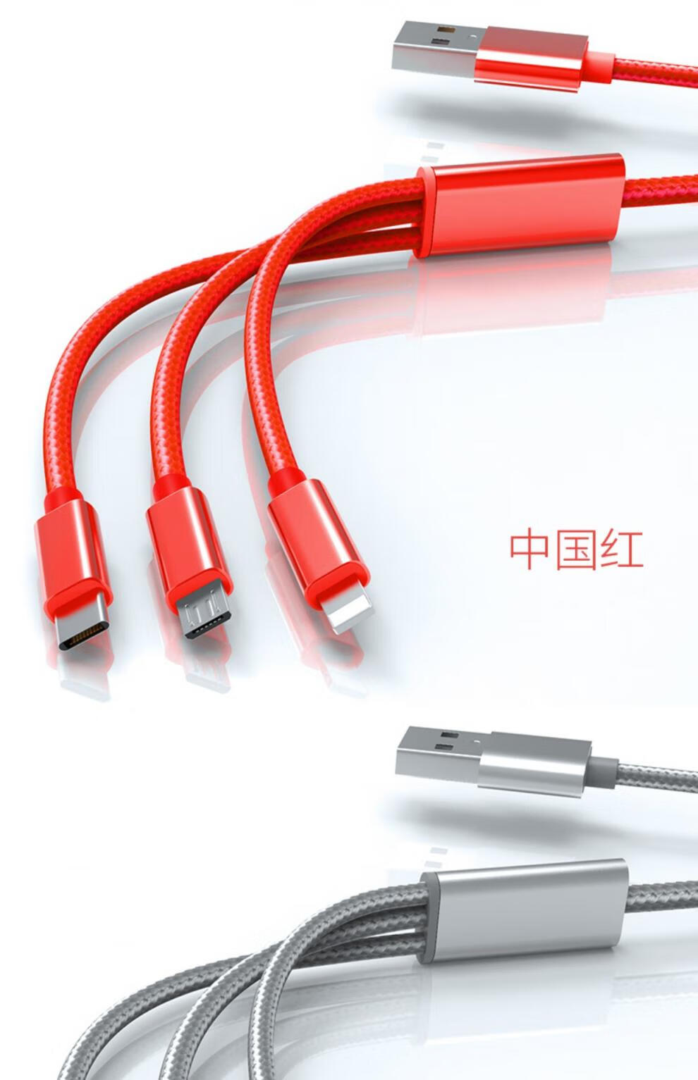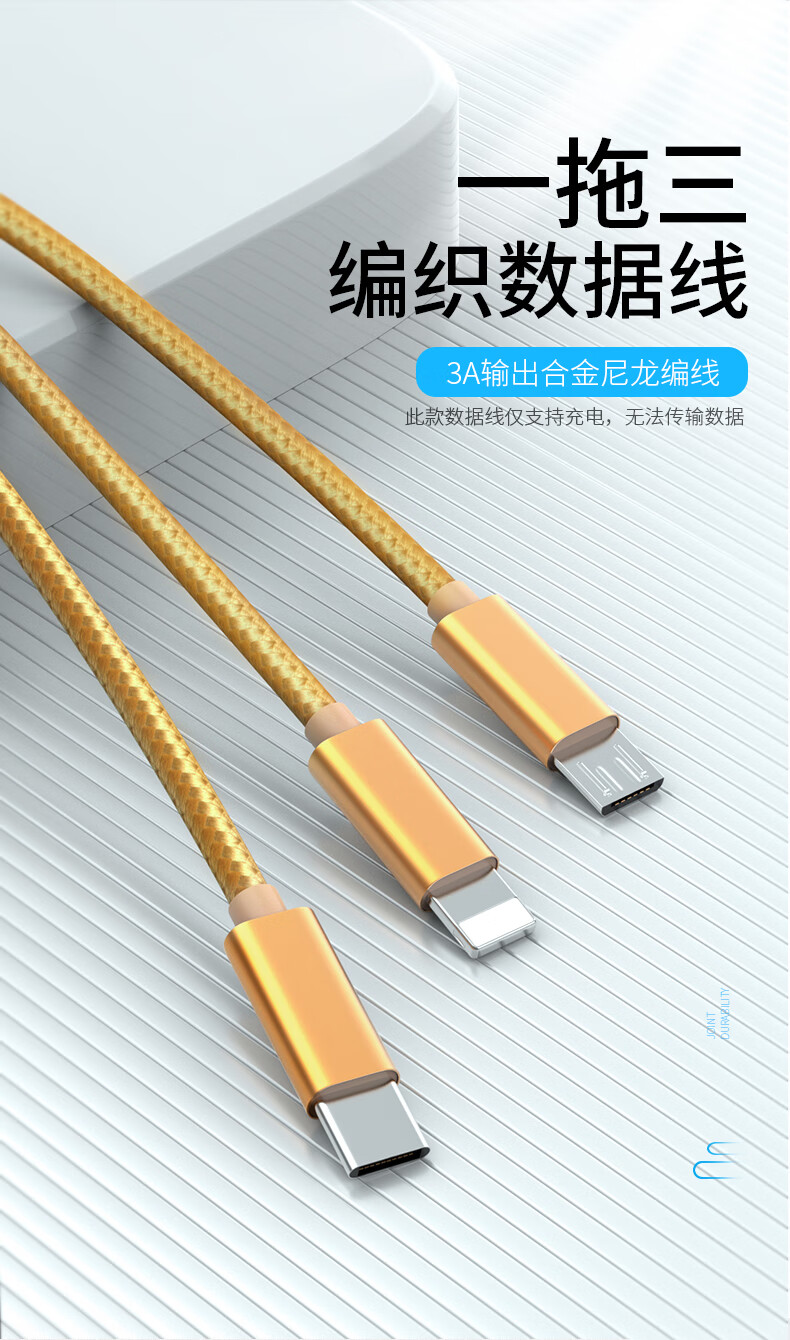 PISEN 66w fast charging three-in-one data cable one-to-three charging cable 120W fast charging car suitable for Apple Huawei Xiaomi Android type-c mobile phone cable tpyec multi-head punch 2 meters 1 meter white 3A one-to-three data cable