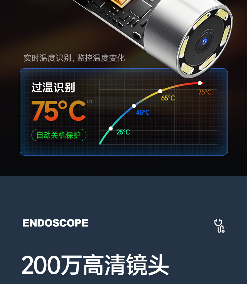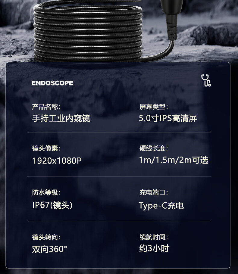 CAKI 360 degree rotating endoscope car maintenance to see carbon deposits cylinder high temperature resistant industrial mobile phone ultra-high definition camera 6mm lens 360 degree steering / 1 meter