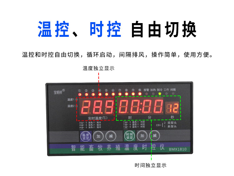 Maixinyi Breeding Thermostat High-precision Temperature Control Box Fully Automatic Intelligent Adjustable Temperature Fan Switch Temperature 10-way Box + 5 Meter Probe + Phase Loss Protection + Overheating