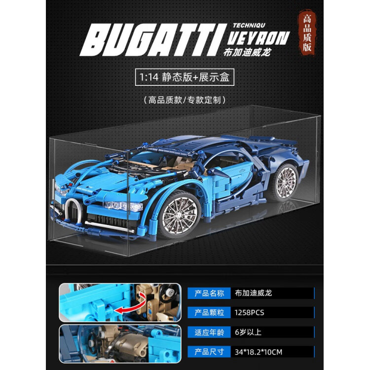 2024 New Bugatti Veyron Sports Car Remote Control Racing Car Assembly Model Toy for Boys 1 High Brick Version Little Bugatti (1 14 Mechanical Linkage)_