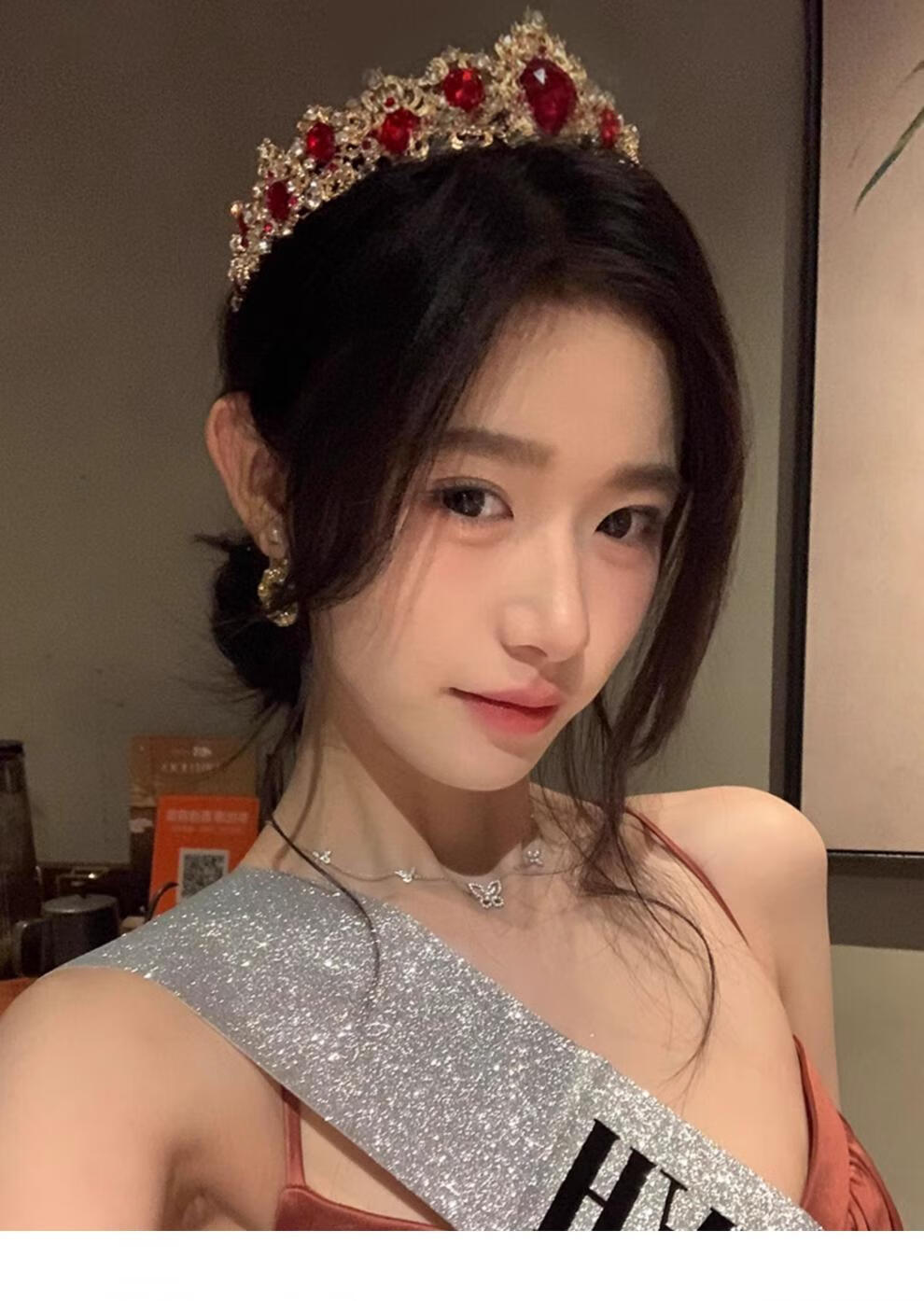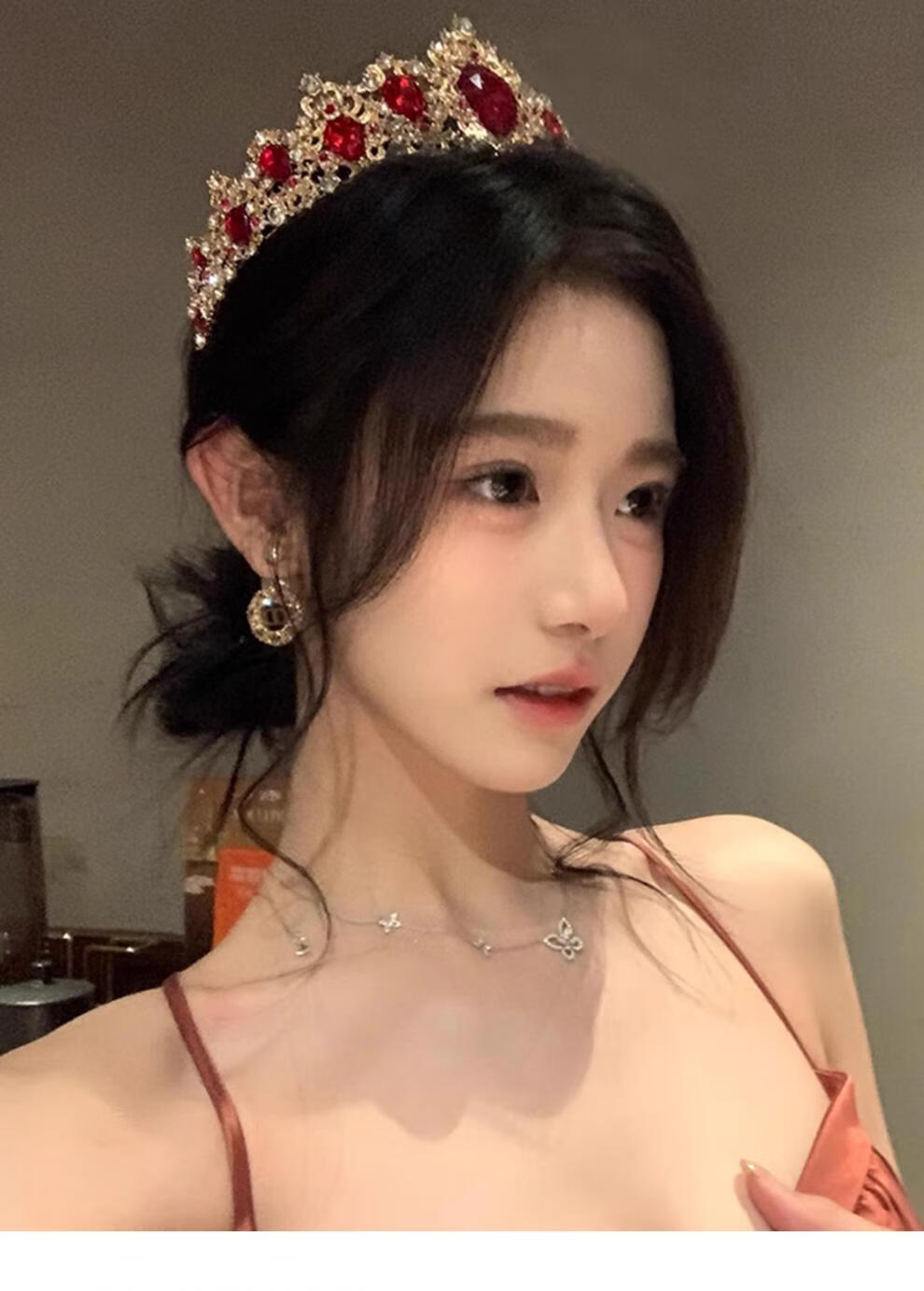 Aoyanlai light luxury princess 18th birthday crown bride ruby crown headband head role-playing earrings hair single product retro palace crown