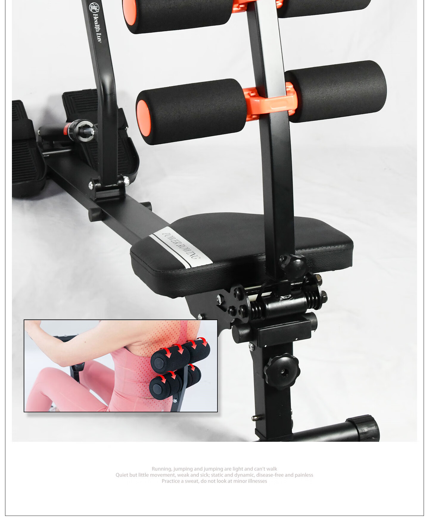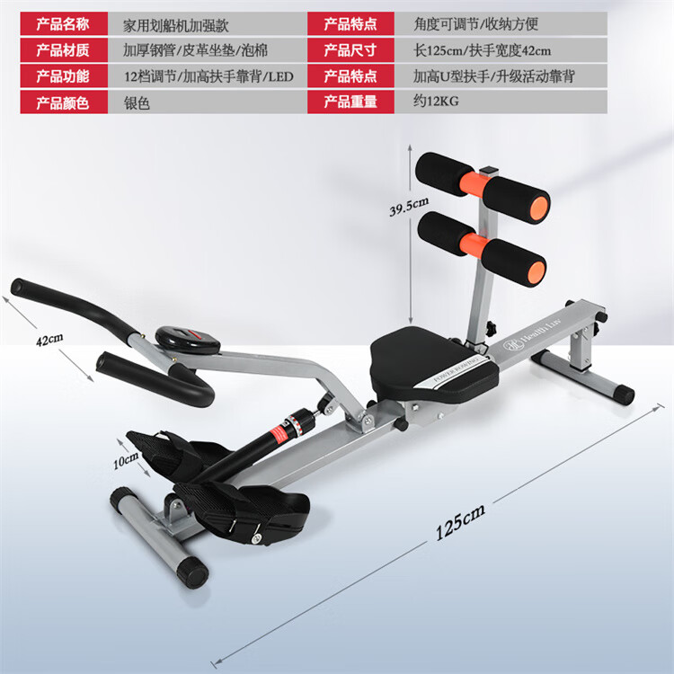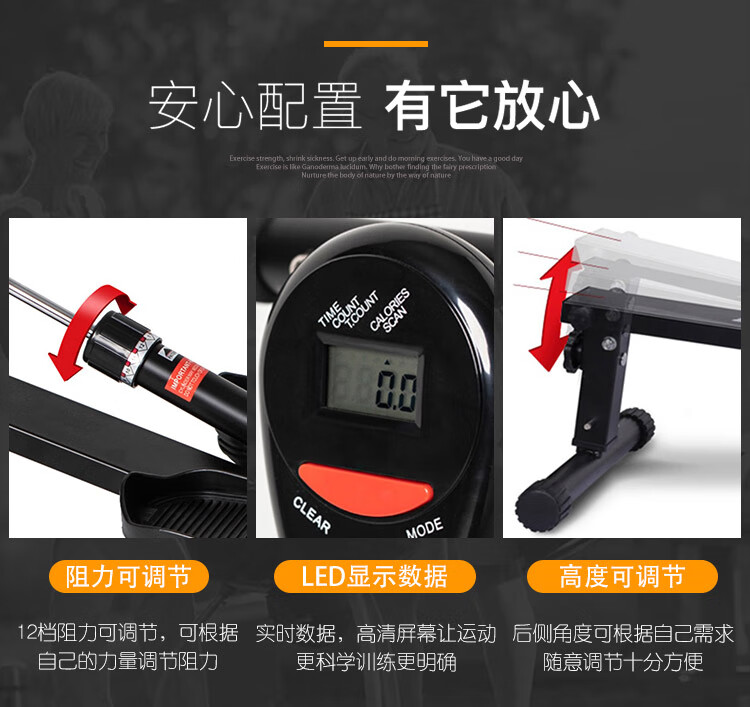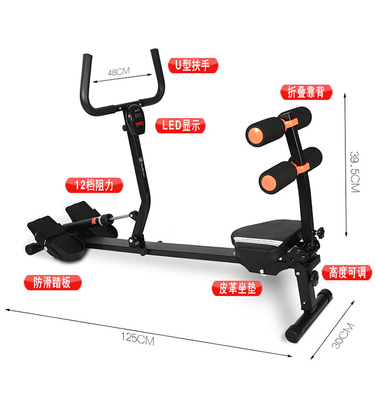 Kaosen household rowing machine foldable water resistance integrated indoor simple sports training home fitness equipment rowing machine black enhanced 12-speed adjustable high backrest