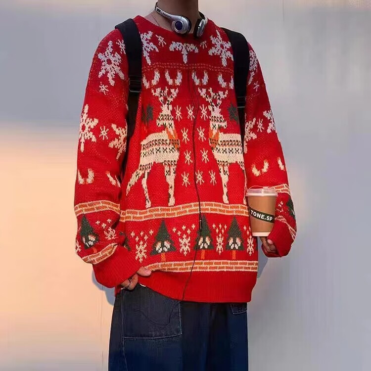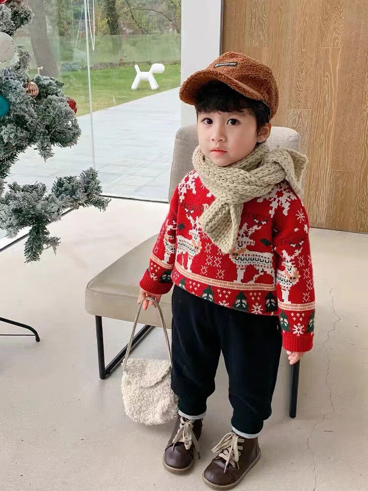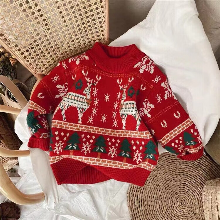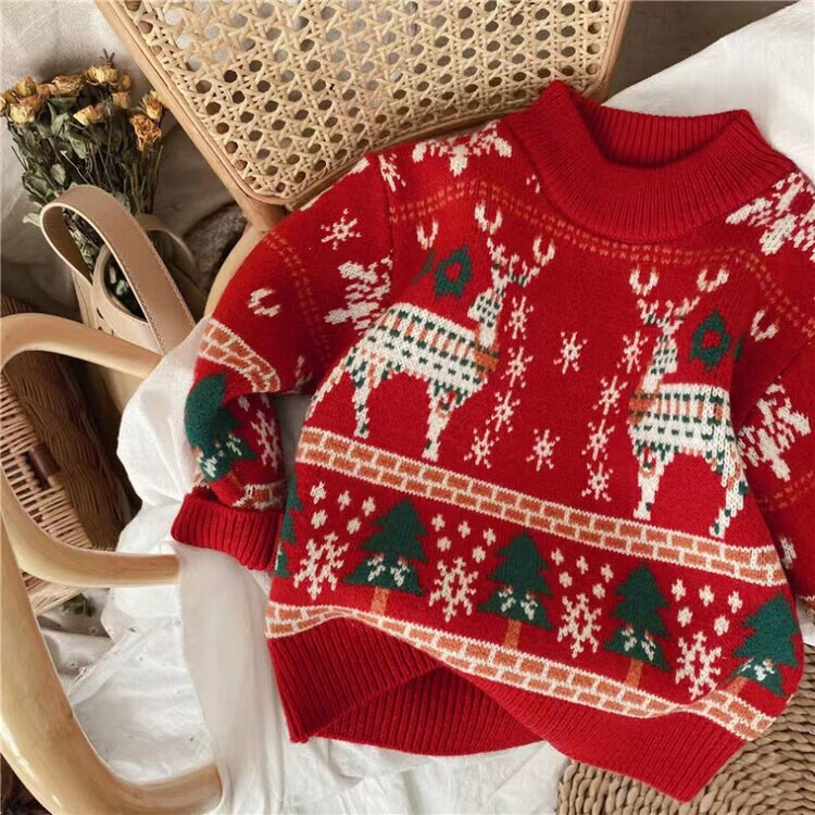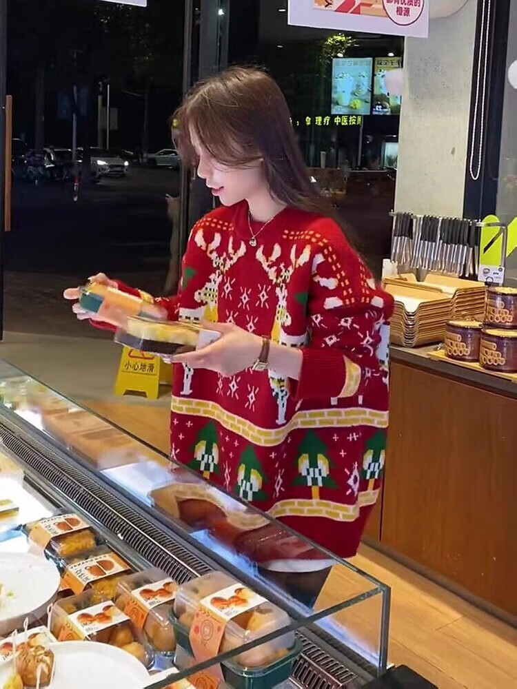 WONST Christmas parent-child wear autumn and winter red sweater 2025 new family of three or four mother and daughter sweater jacket red (elk) 100 adults M (100-120 Jin Jin equals 0.5 kg)