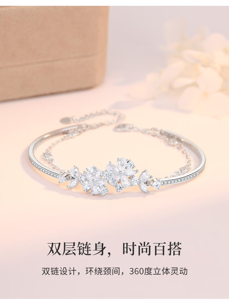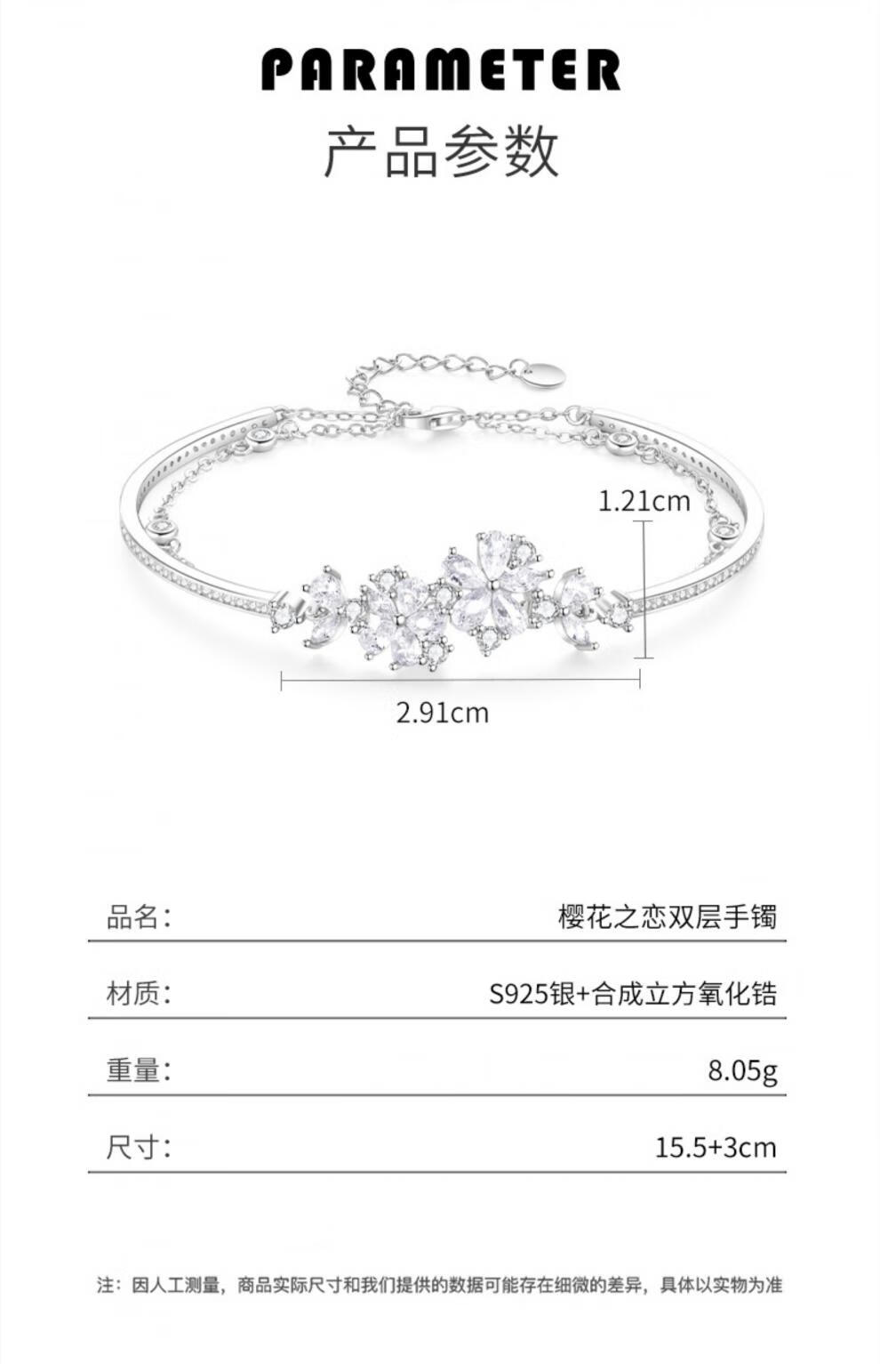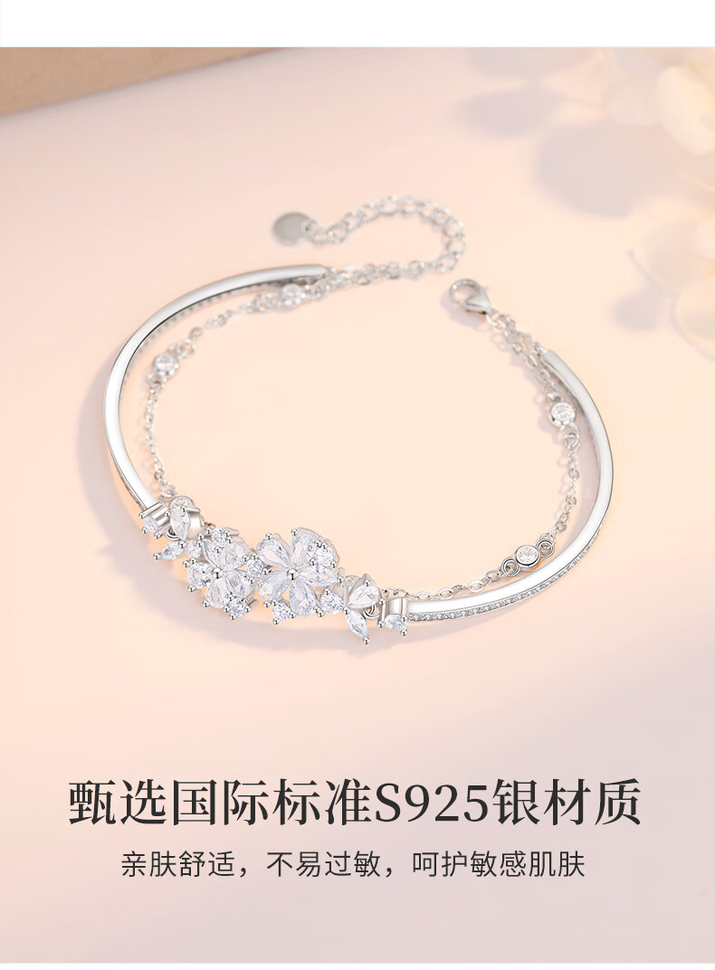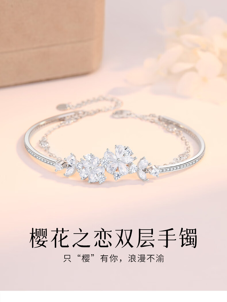 MOLADY Sakura Silver Bracelet Girls Style Light Luxury Niche Exquisite Birthday Gift for Girlfriend Sakura Love Double Layer Bracelet