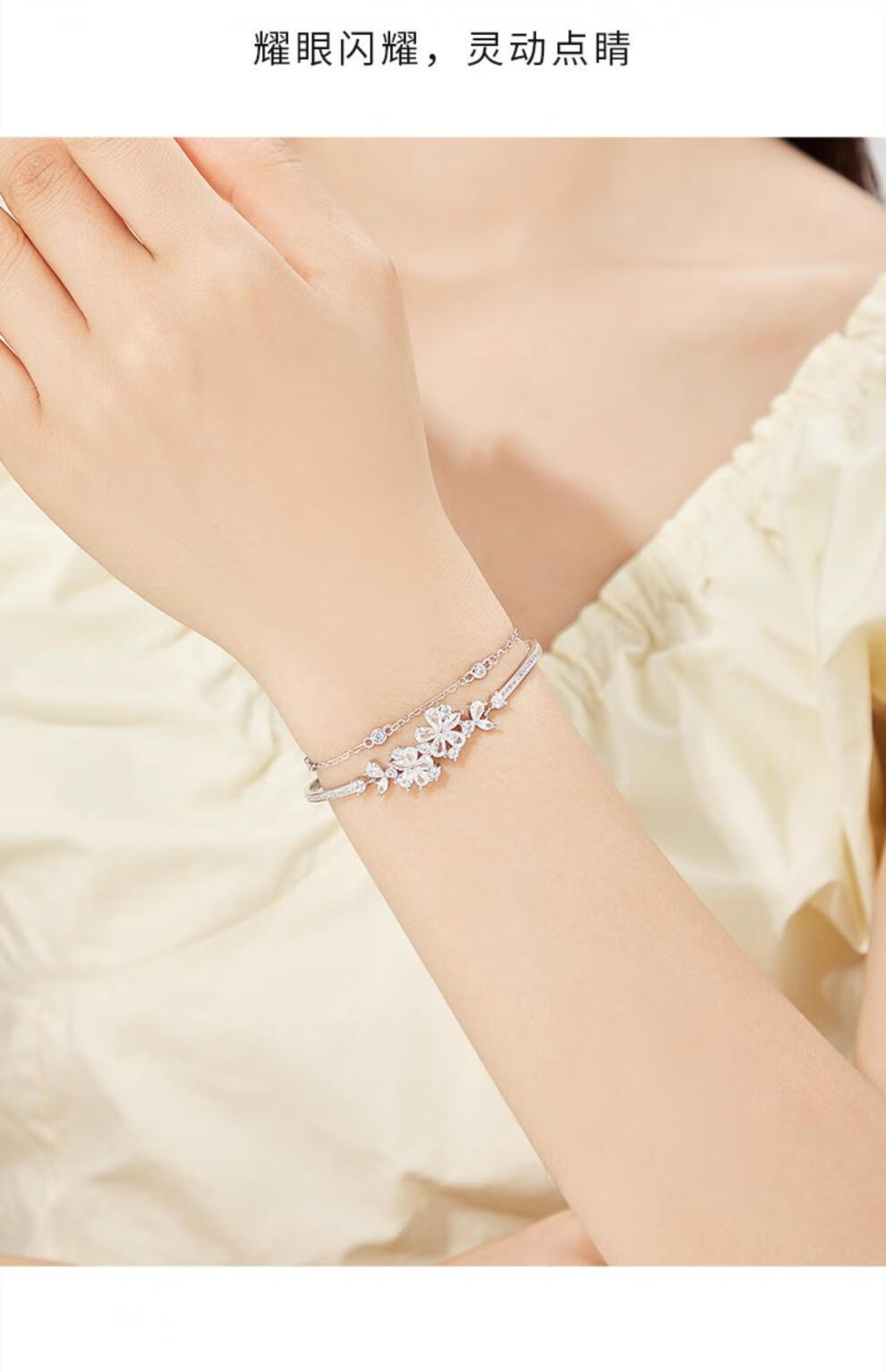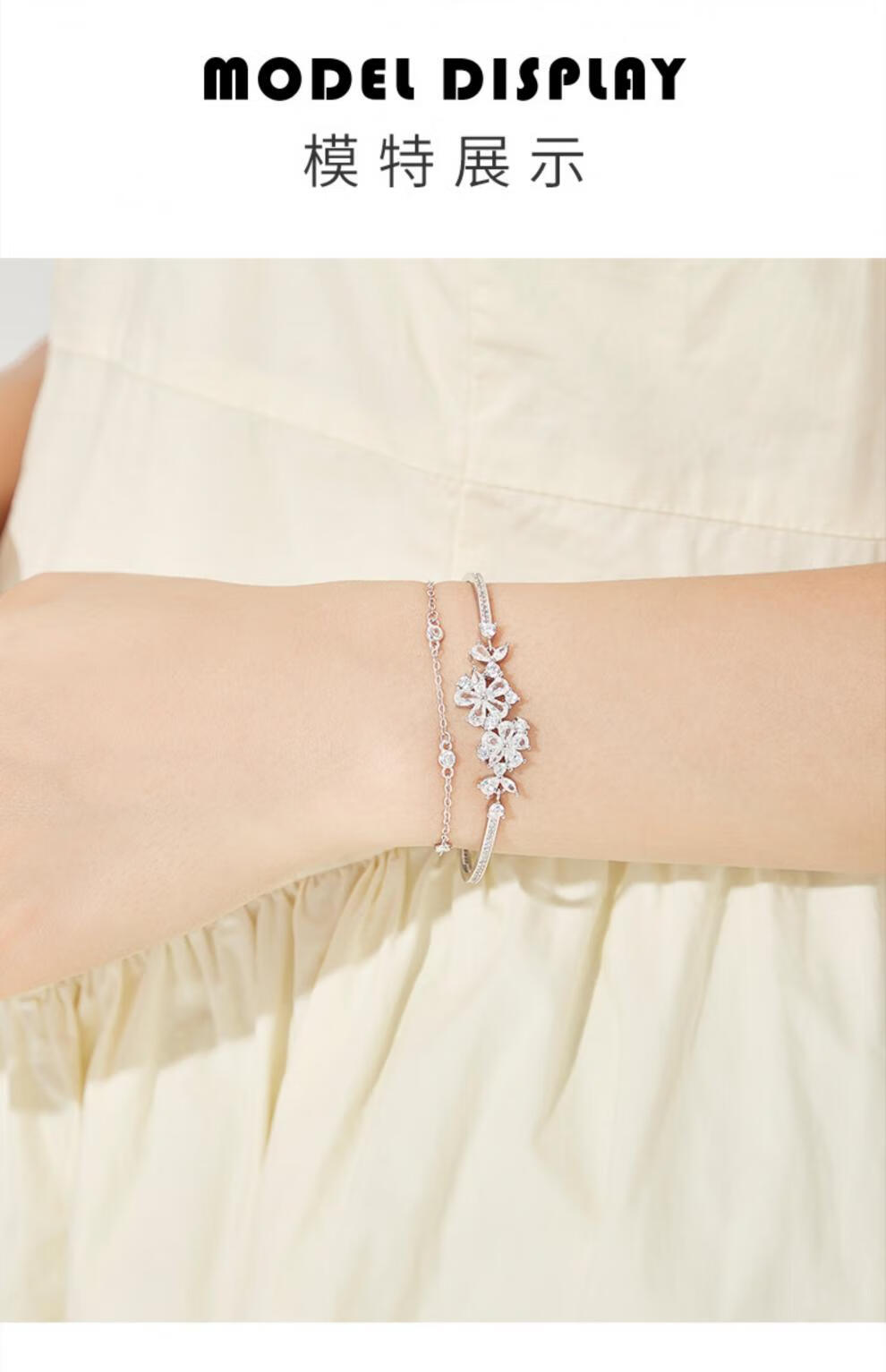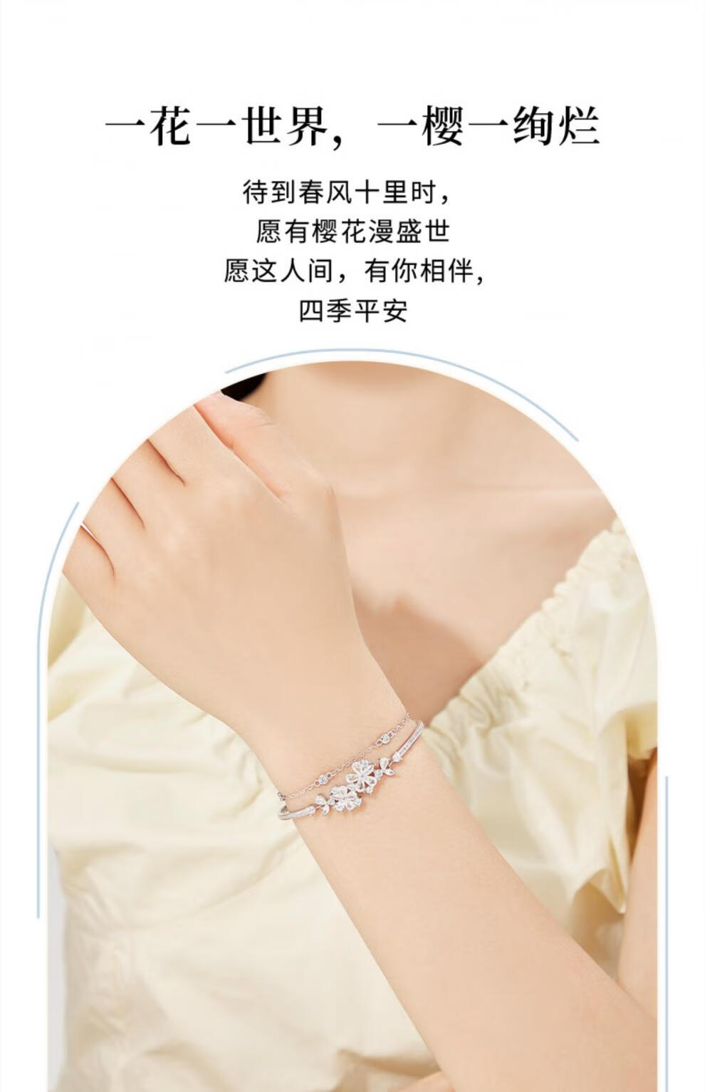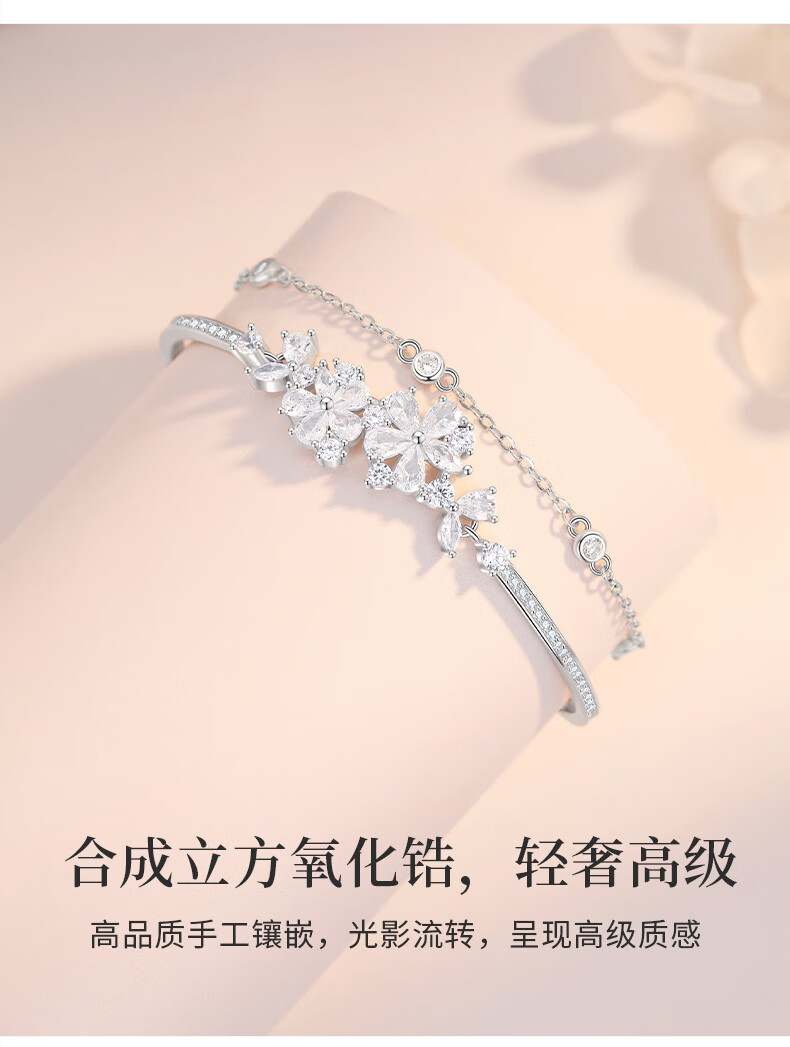 MOLADY Sakura Silver Bracelet Girls Style Light Luxury Niche Exquisite Birthday Gift for Girlfriend Sakura Love Double Layer Bracelet
