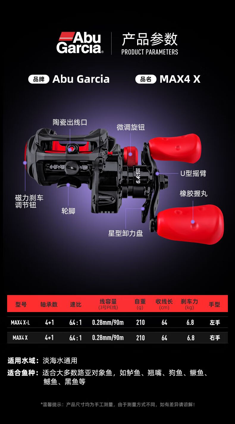 ABU GARCIA Abu MAX4 long-range micro-object water droplet wheel all-metal lure wheel anti-explosion line fishing wheel black fishing wheel Lei Qiang wheel MAX_X water droplet wheel other_right-hand type