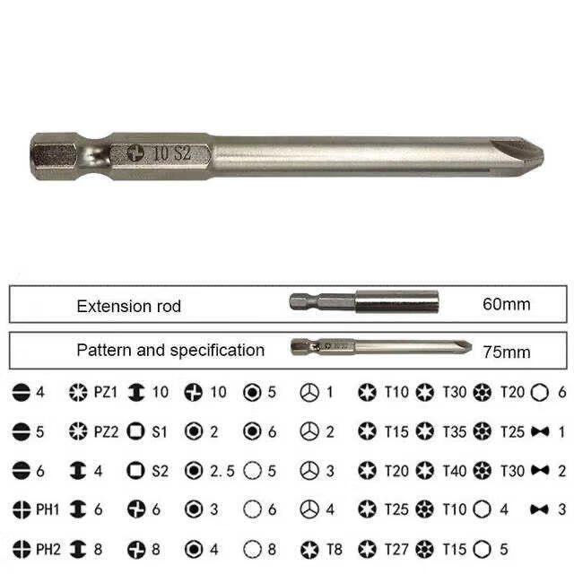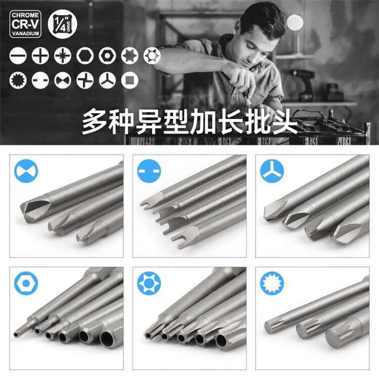German quality electric hand drill electric bit tool set cross-shaped hexagonal triangle plum blossom bit special-shaped batch 50-piece extended bit set