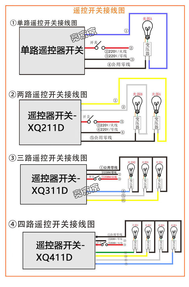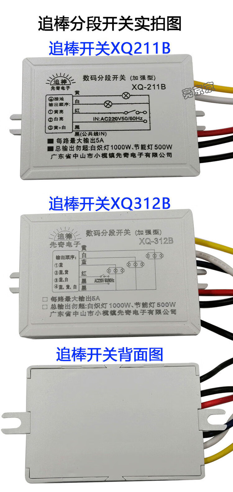 XMSJ digital intelligent remote control switch chasing stick Jingjiu LED lamp wireless 220V segmented controller J chasing stick segmented switch-XQ211B without remote control