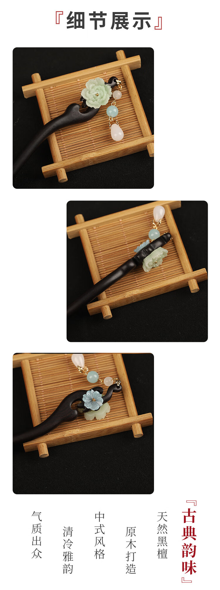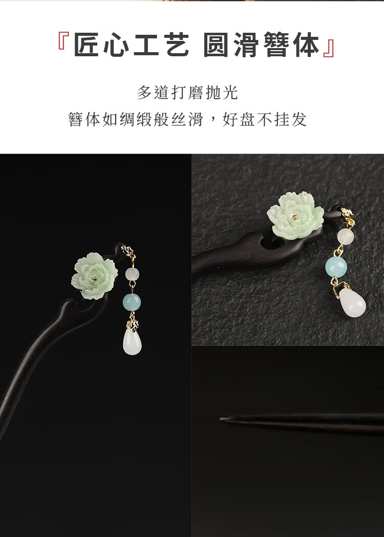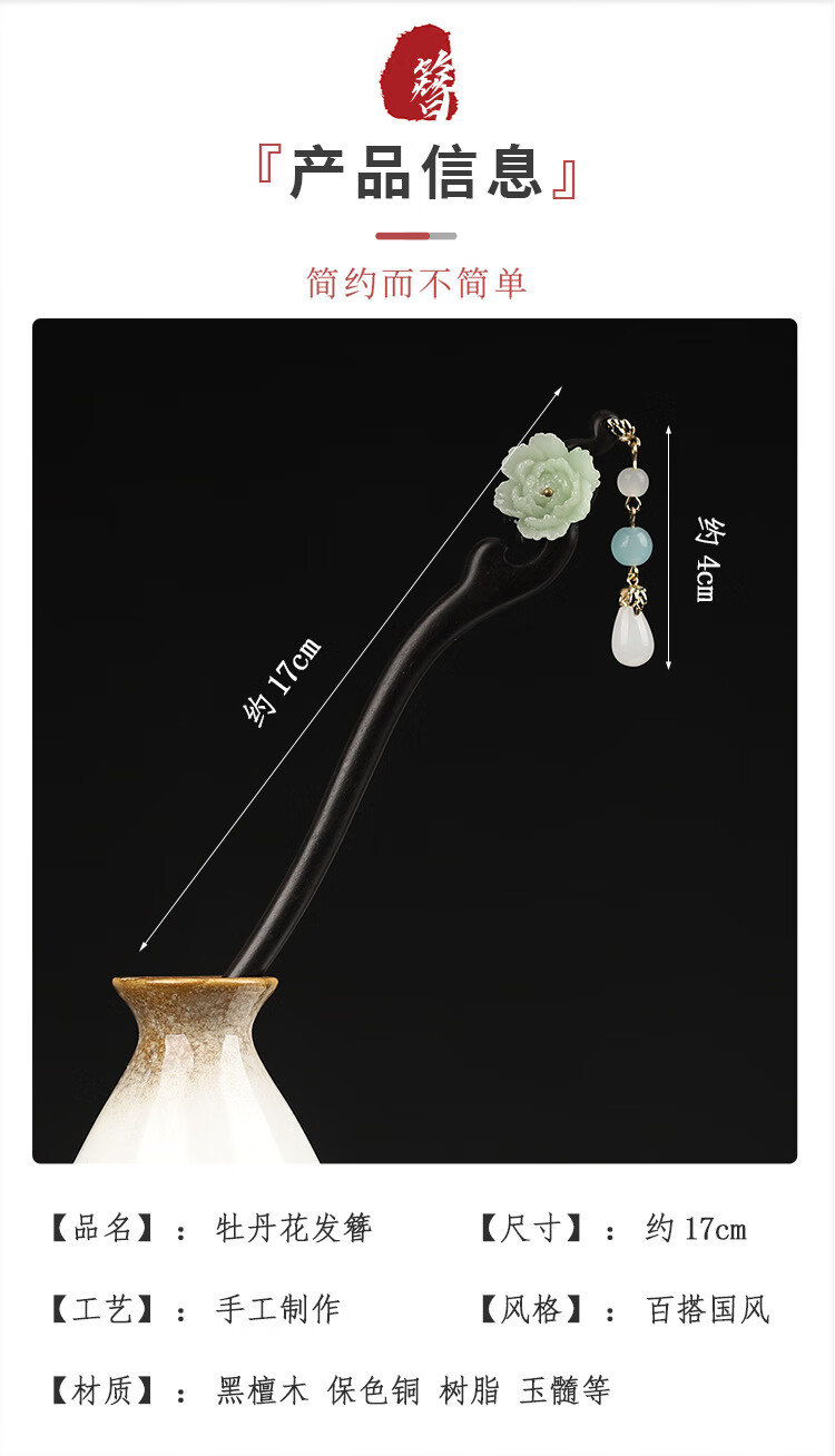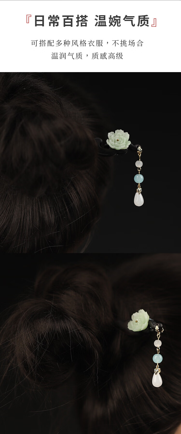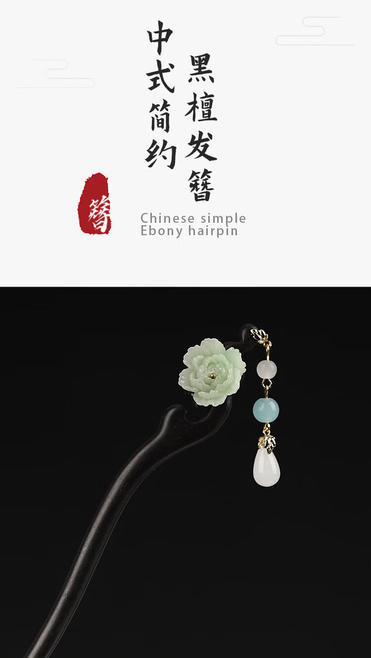 Retro palace style Hanfu hair accessories original handmade ebony hairpin classical temperament cheongsam hairpin peony green