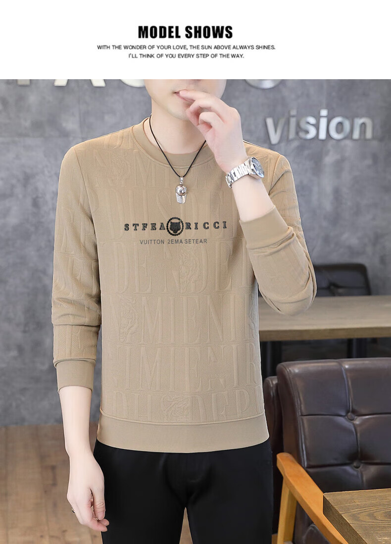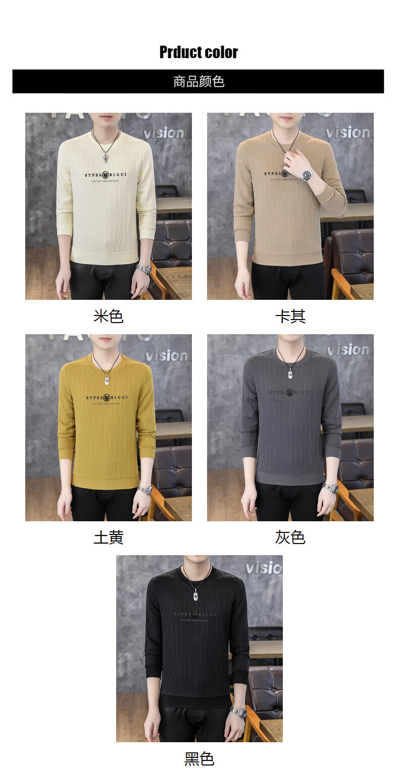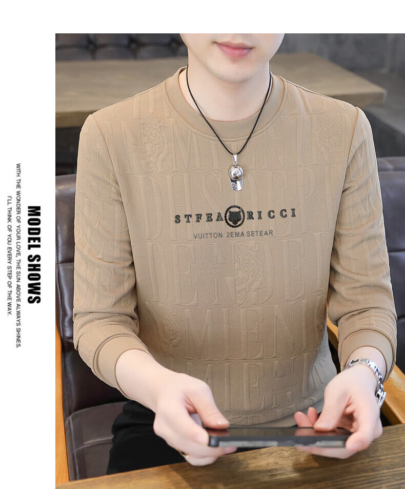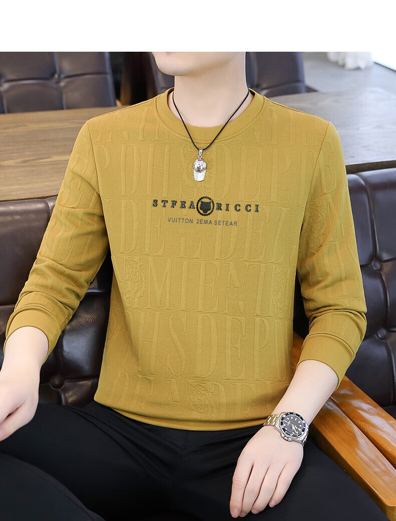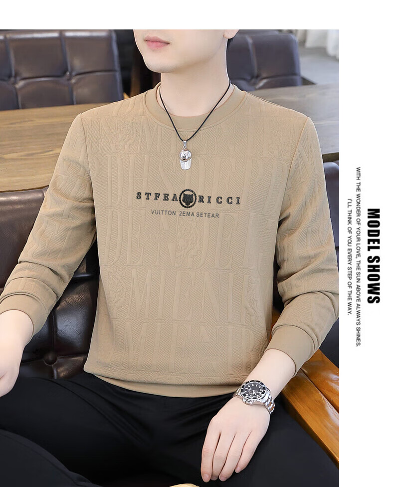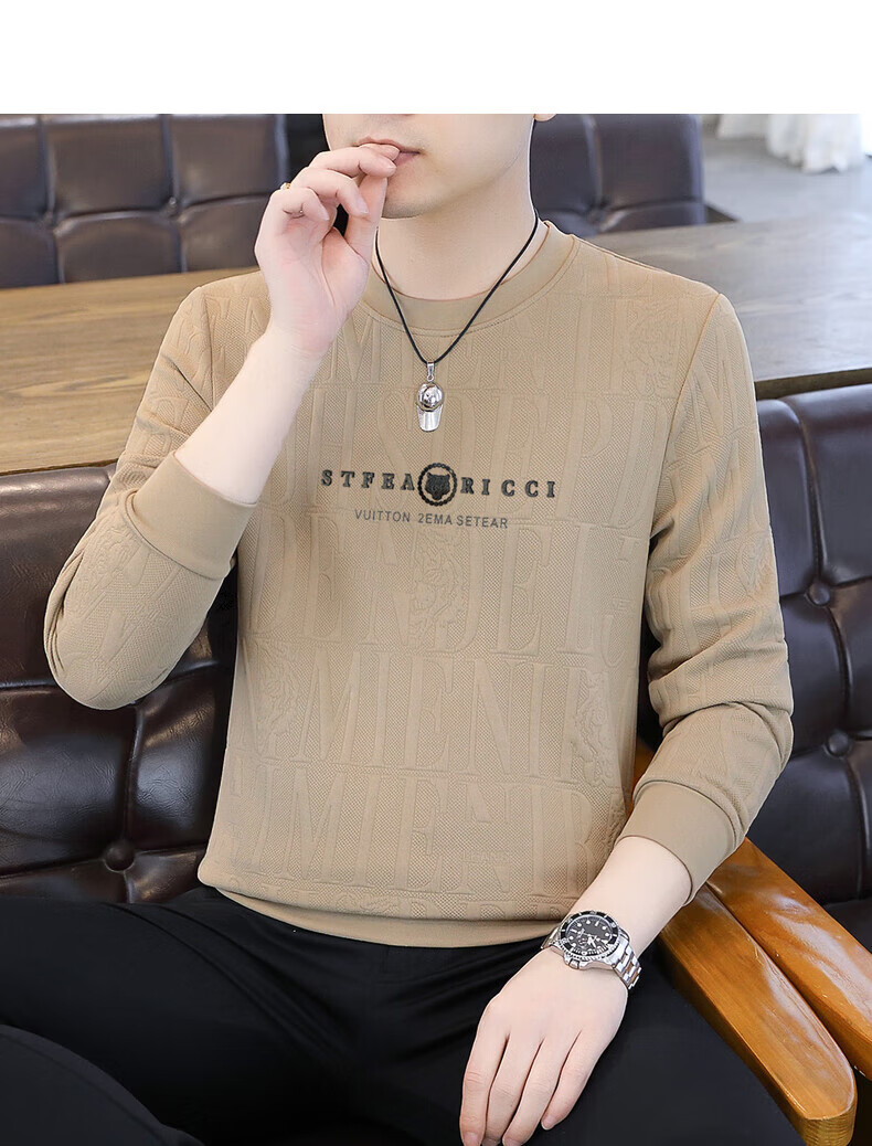 Kangaroo (DAISHU) spring and autumn long-sleeved T-shirt men's round neck slim autumn coat casual inner wear autumn and winter 2025 new small shirt sweatshirt 20662-Q5608-khaki regular L 115-130Jin Jin equals 0.5 kg