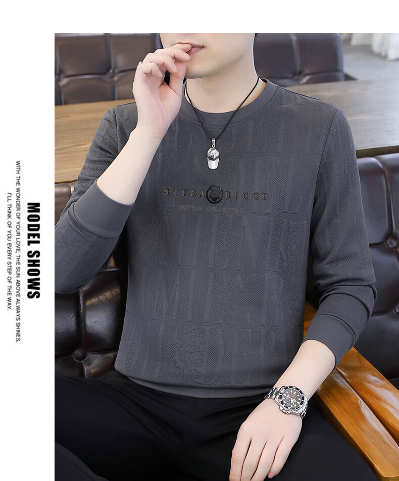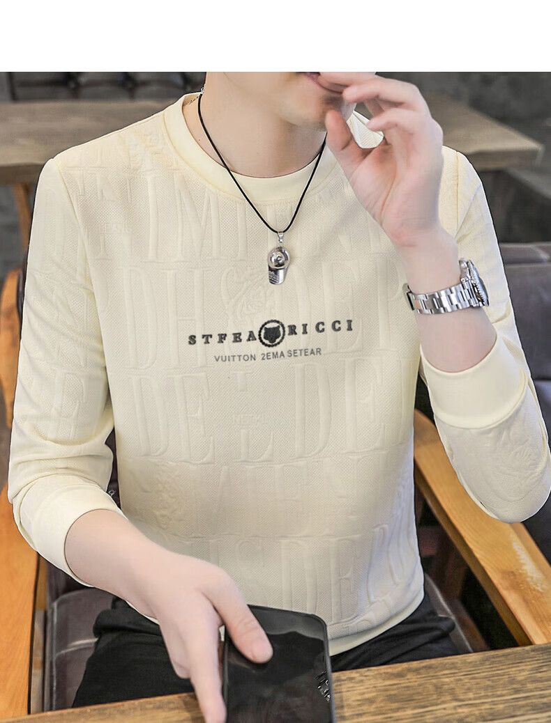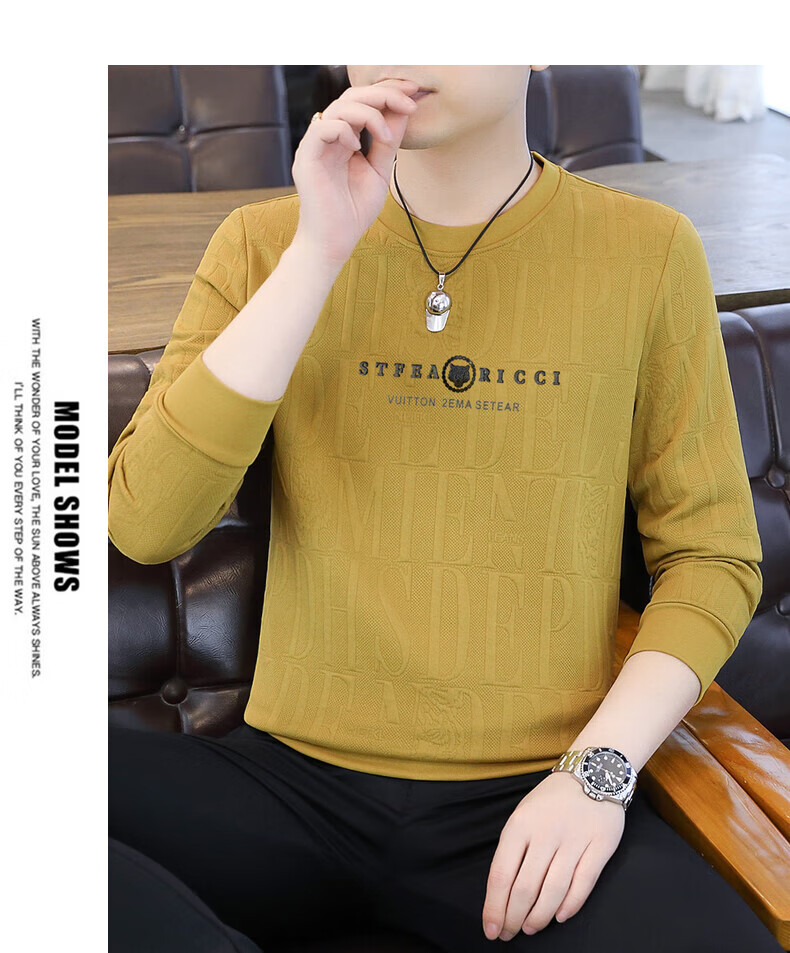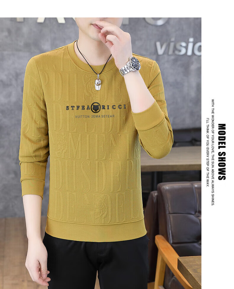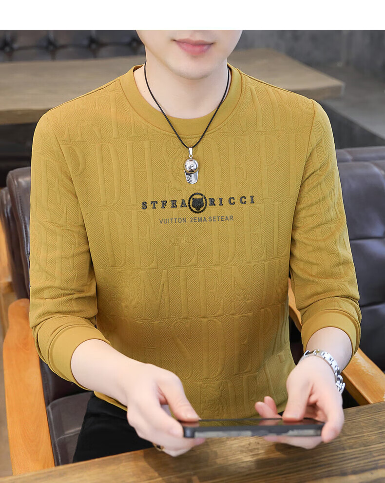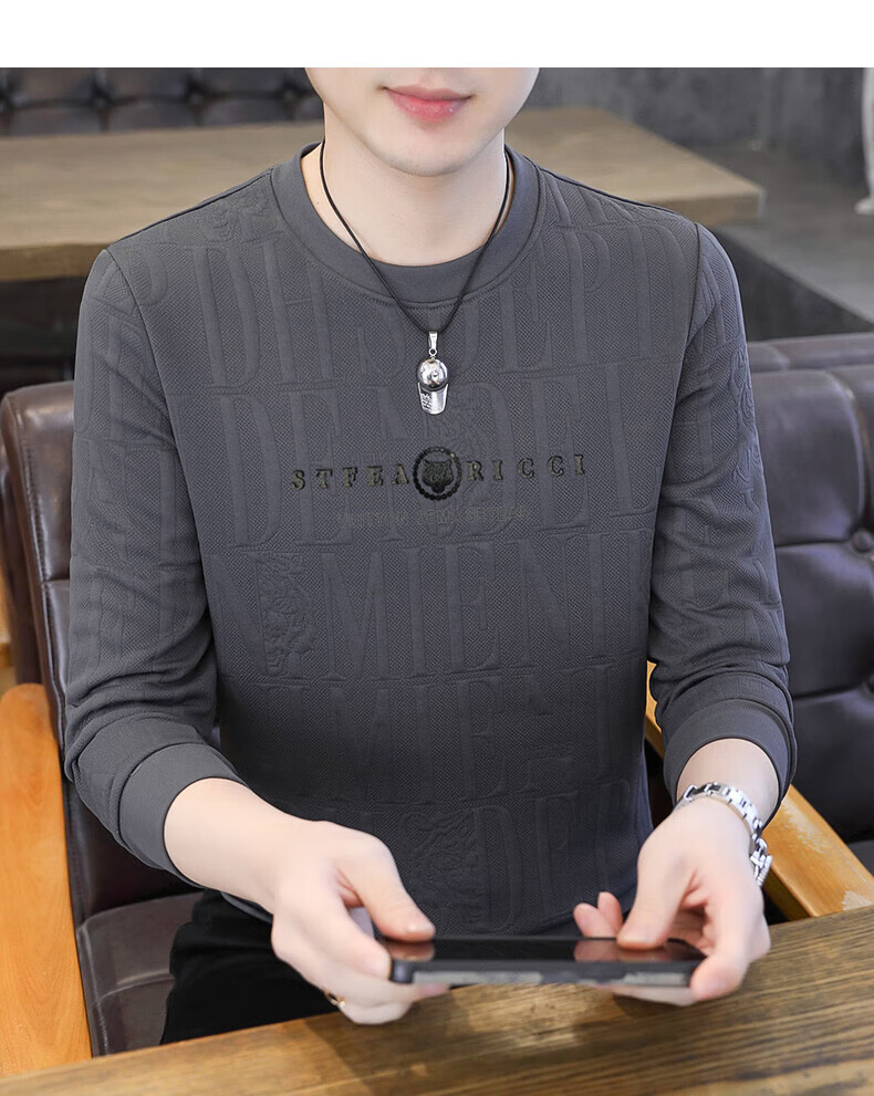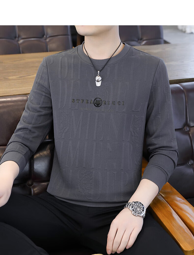 Kangaroo (DAISHU) spring and autumn long-sleeved T-shirt men's round neck slim autumn coat casual inner wear autumn and winter 2025 new small shirt sweatshirt 20662-Q5608-khaki regular L 115-130Jin Jin equals 0.5 kg