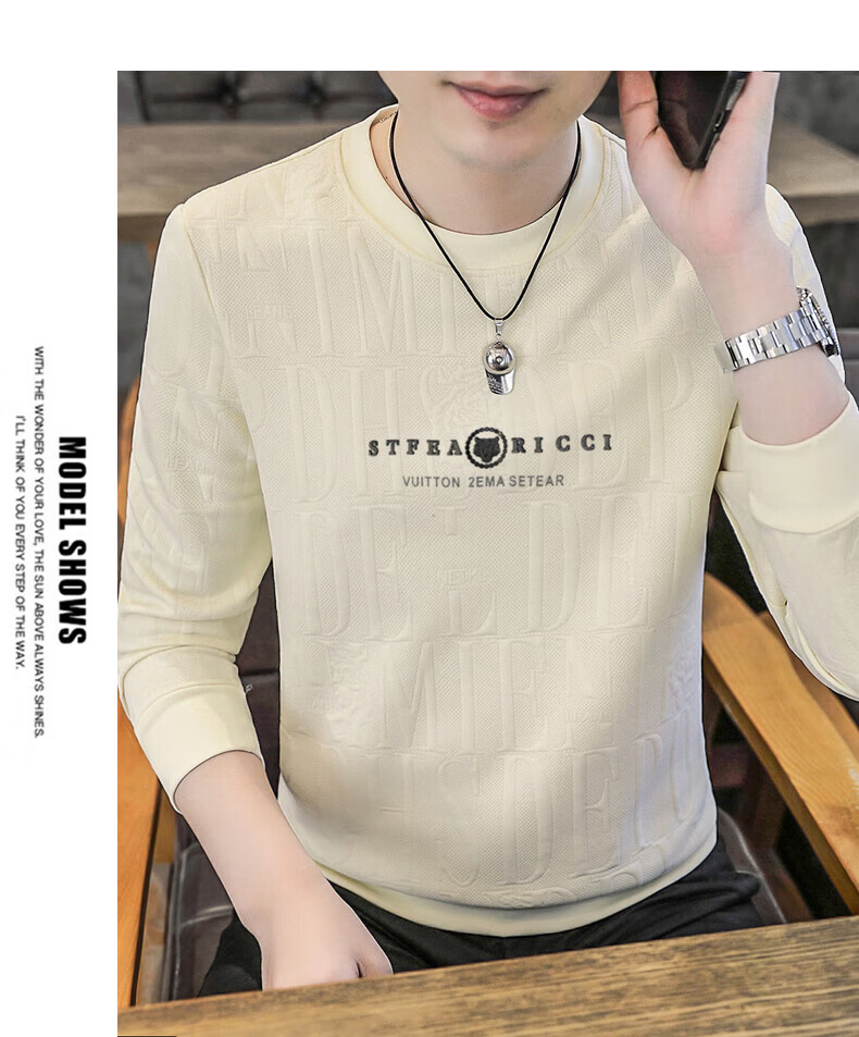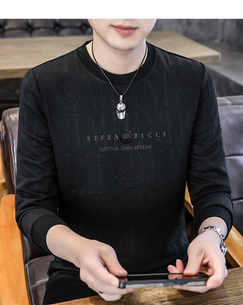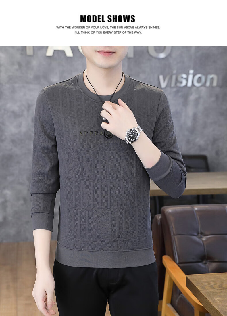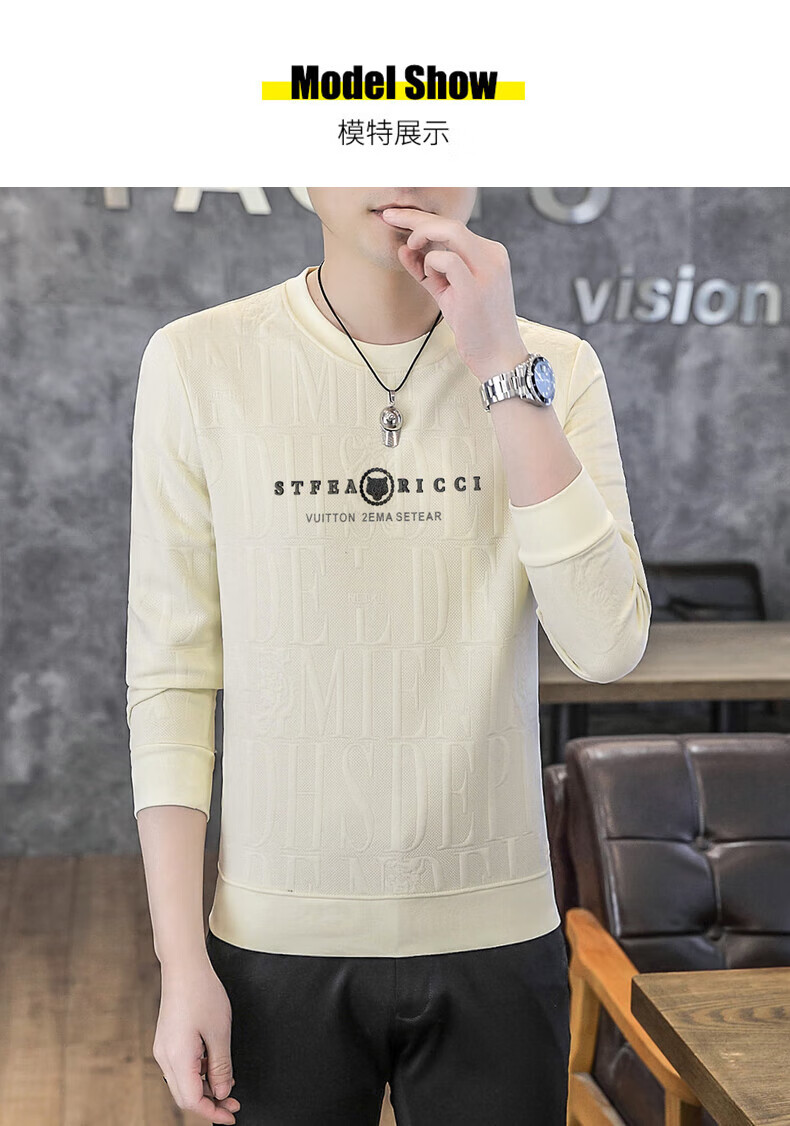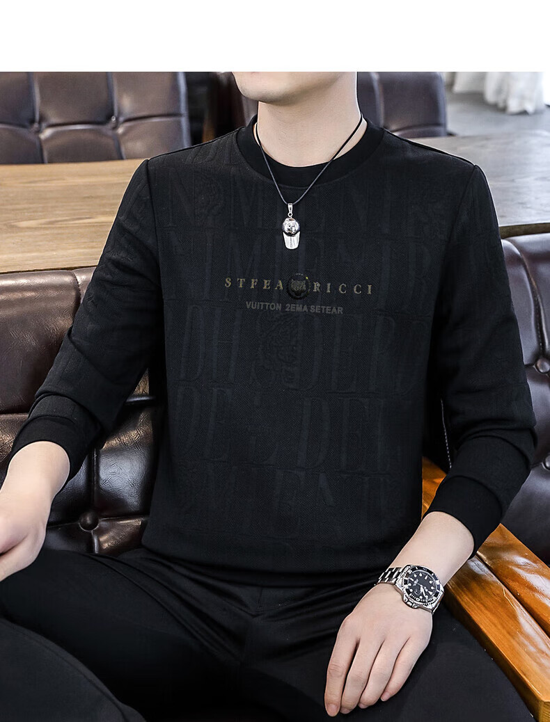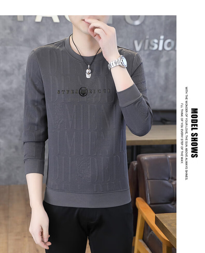 Kangaroo (DAISHU) spring and autumn long-sleeved T-shirt men's round neck slim autumn coat casual inner wear autumn and winter 2025 new small shirt sweatshirt 20662-Q5608-khaki regular L 115-130Jin Jin equals 0.5 kg