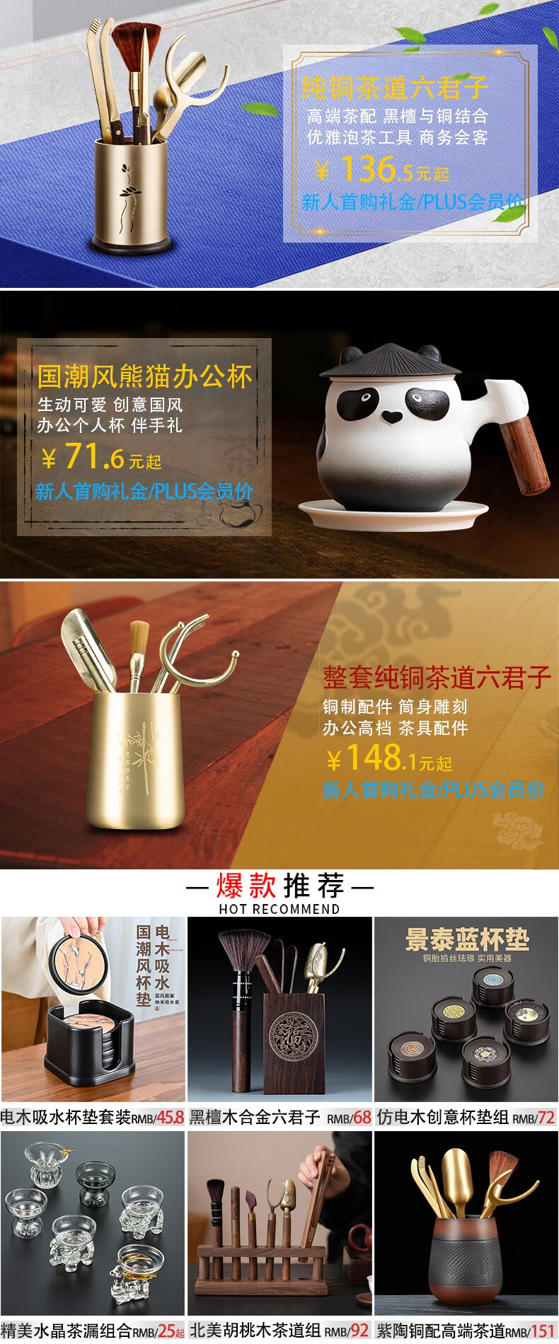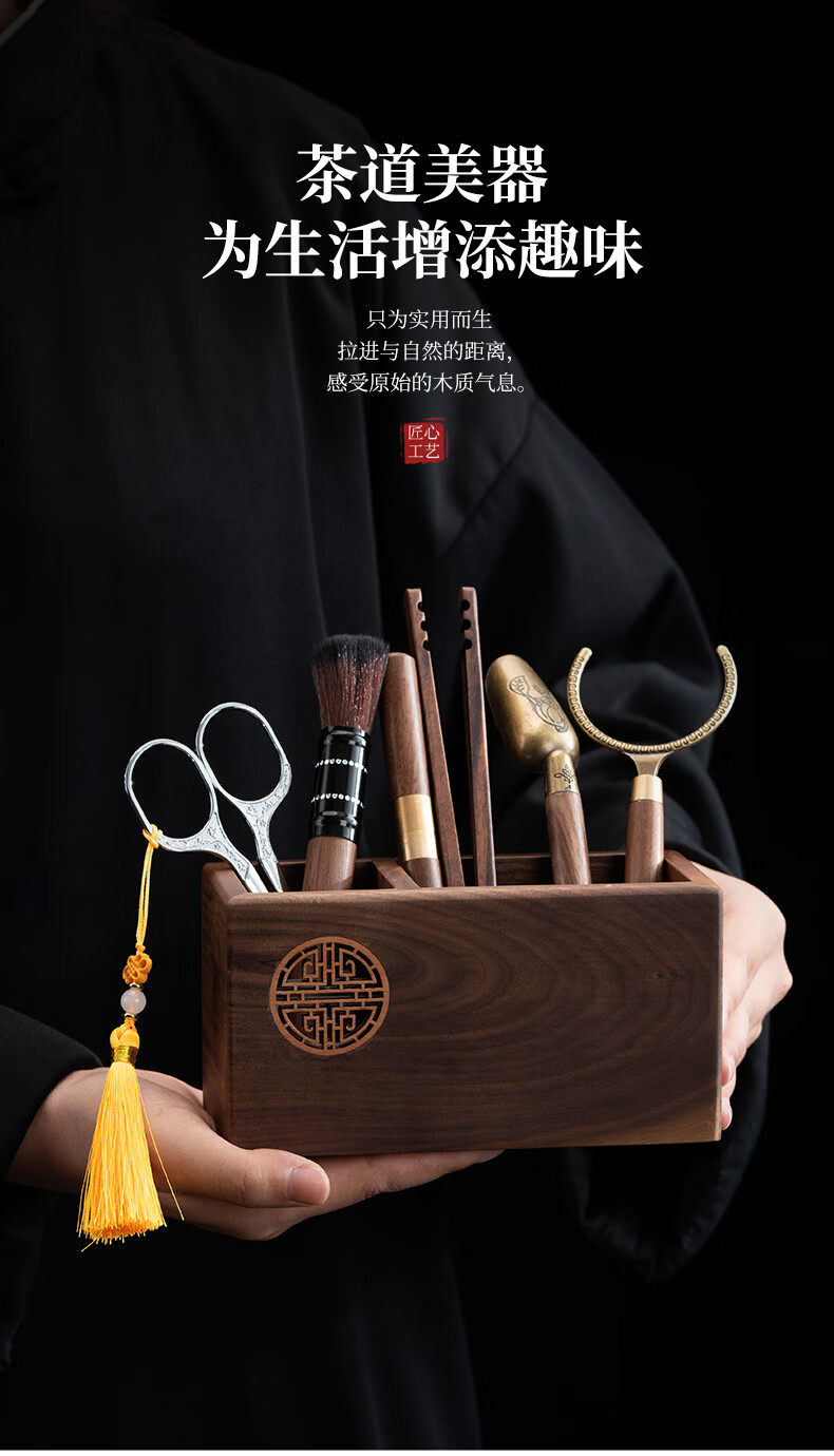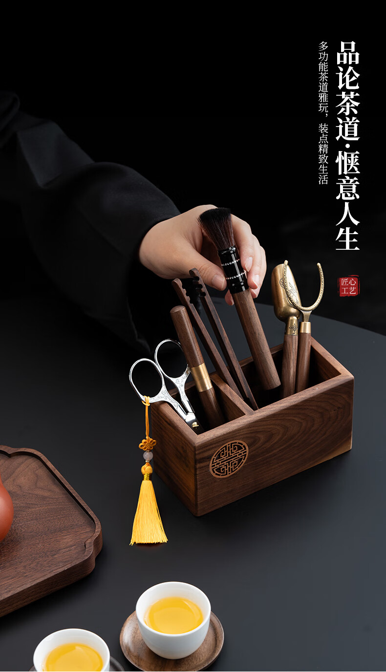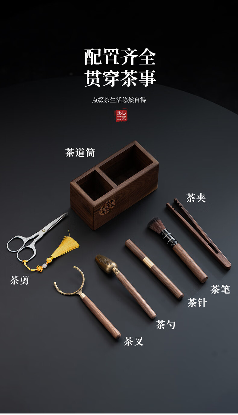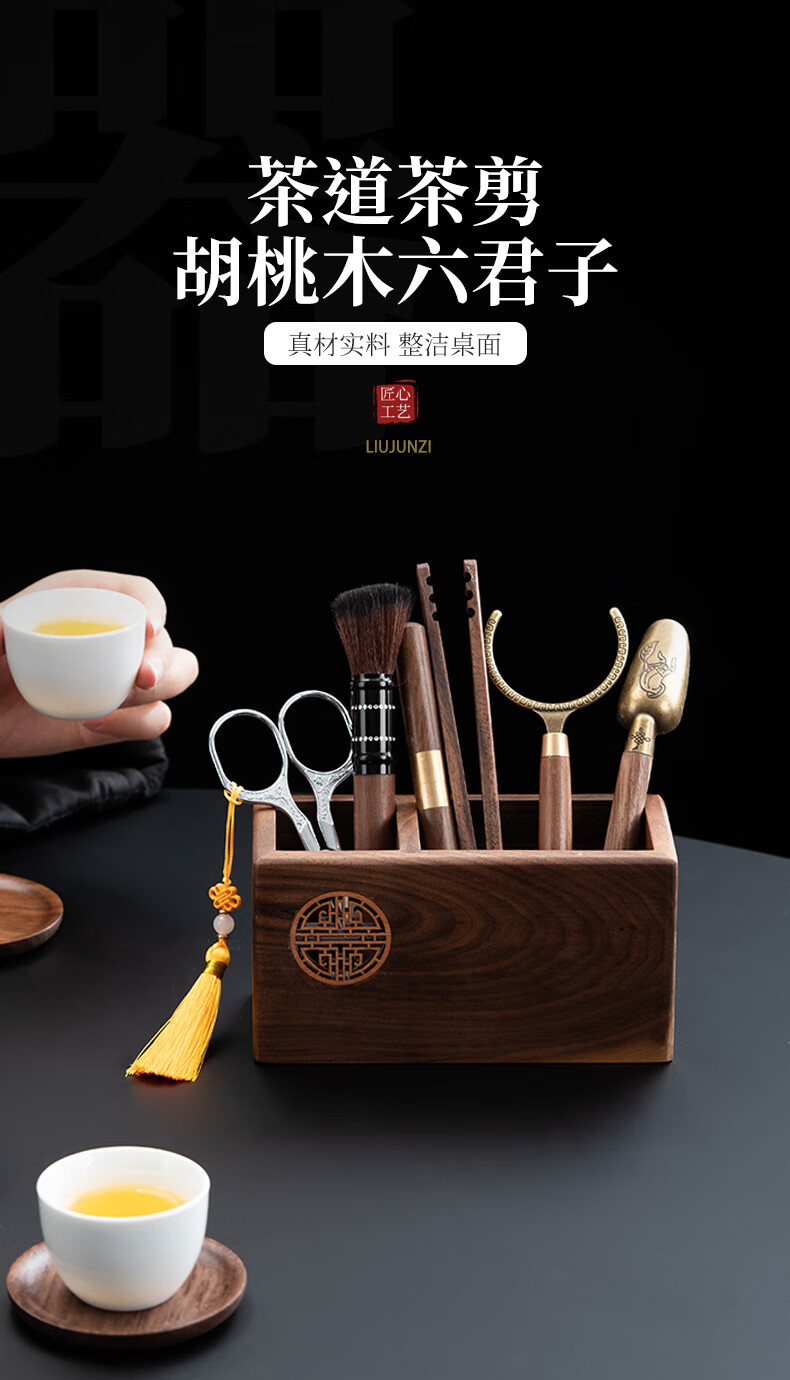 Zhengyang walnut wood tea ceremony six gentlemen high-end tea set accessories titanium office kung fu tea making tools anti-scalding coasters tea scissors tea scissors tea ceremony pure titanium six gentlemen