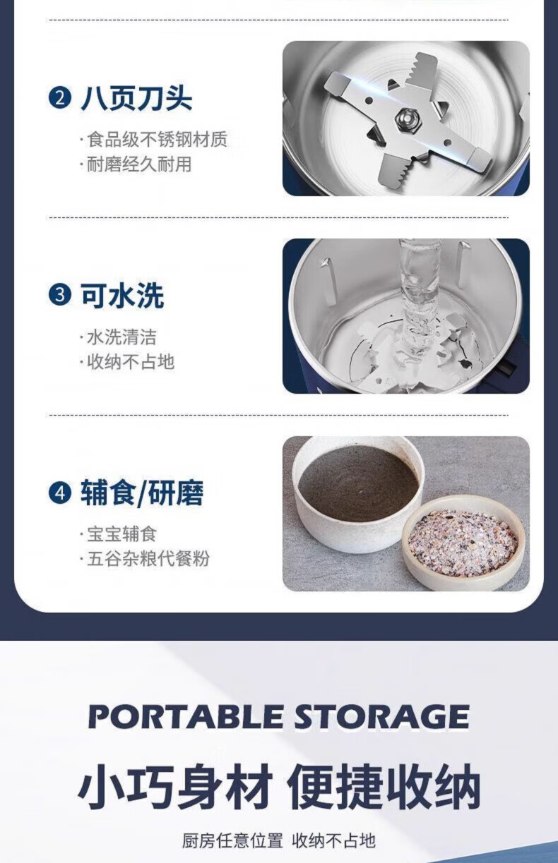 JCZS German quality new grinding machine ultra-fine large-capacity grinder grains and Chinese medicine cooking dry and wet grinder high-end version (8-blade knife + powerful motor + ultra-fine grinding machine