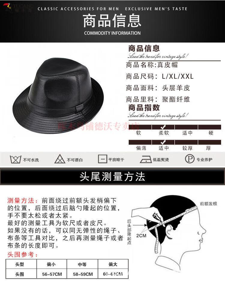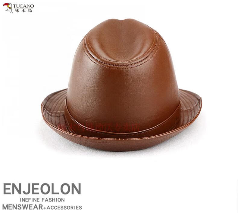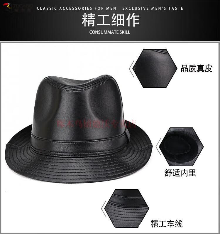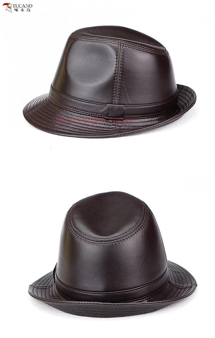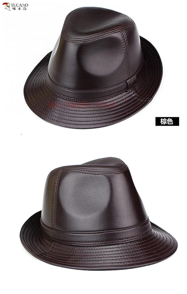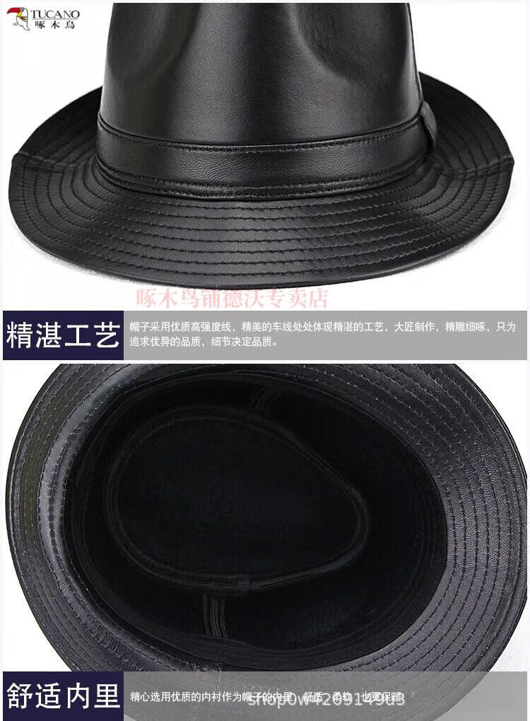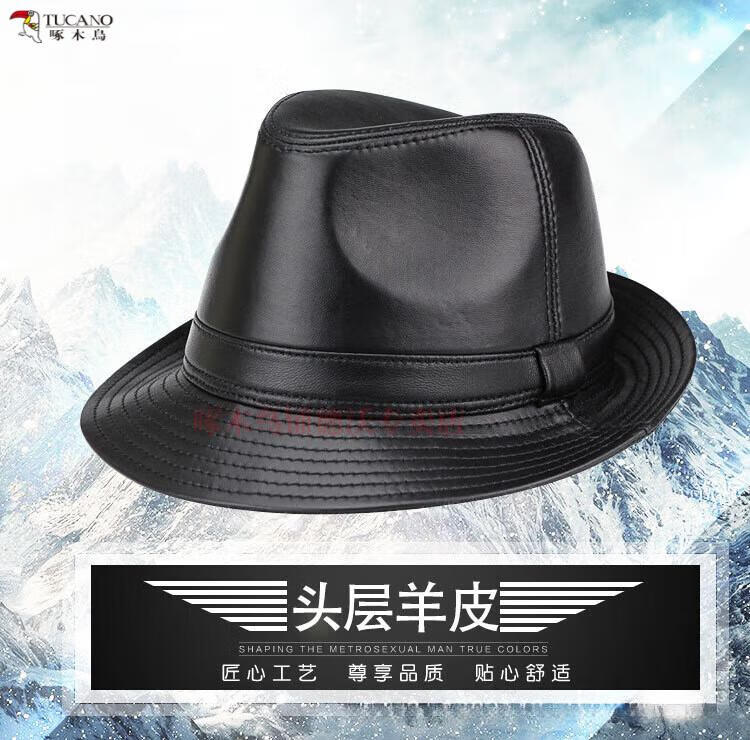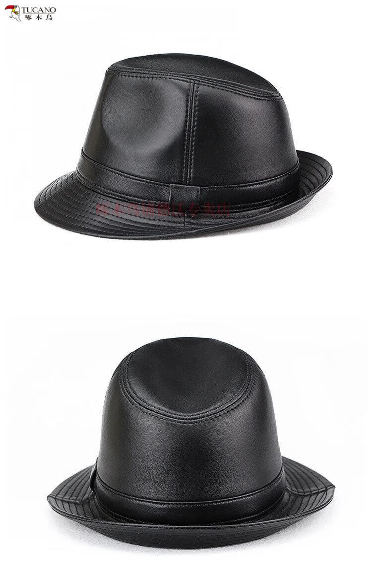 Woodpecker (TUCANO) Spring and Autumn First Layer Genuine Sheepskin Hat Shanghai Beach Men's Top Hat Gentleman Cowboy British Jazz Hat Middle-aged and Elderly Men's Hat Sheepskin Black L(56-57)CM