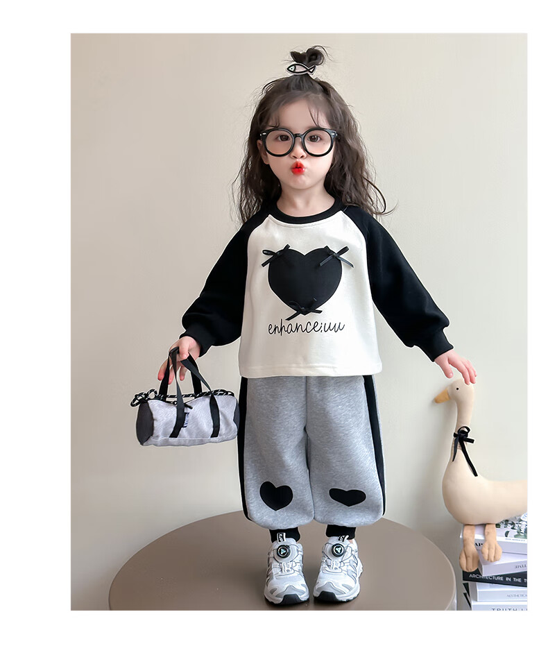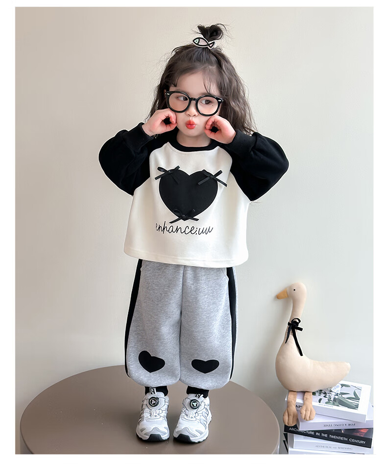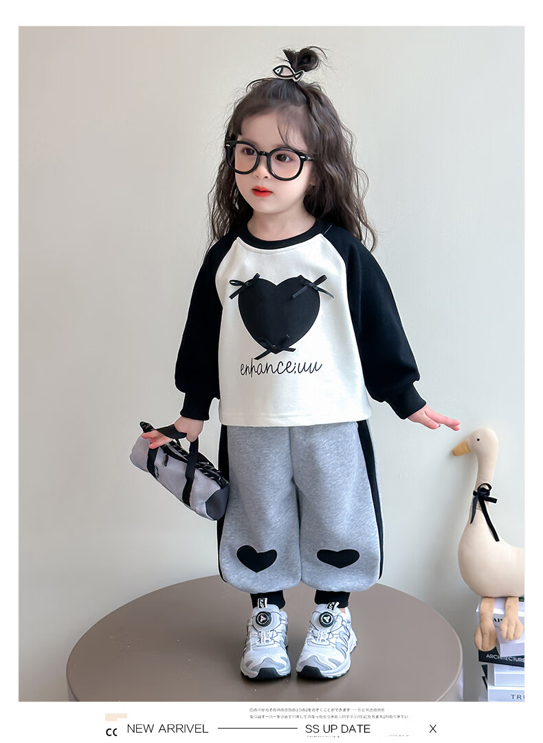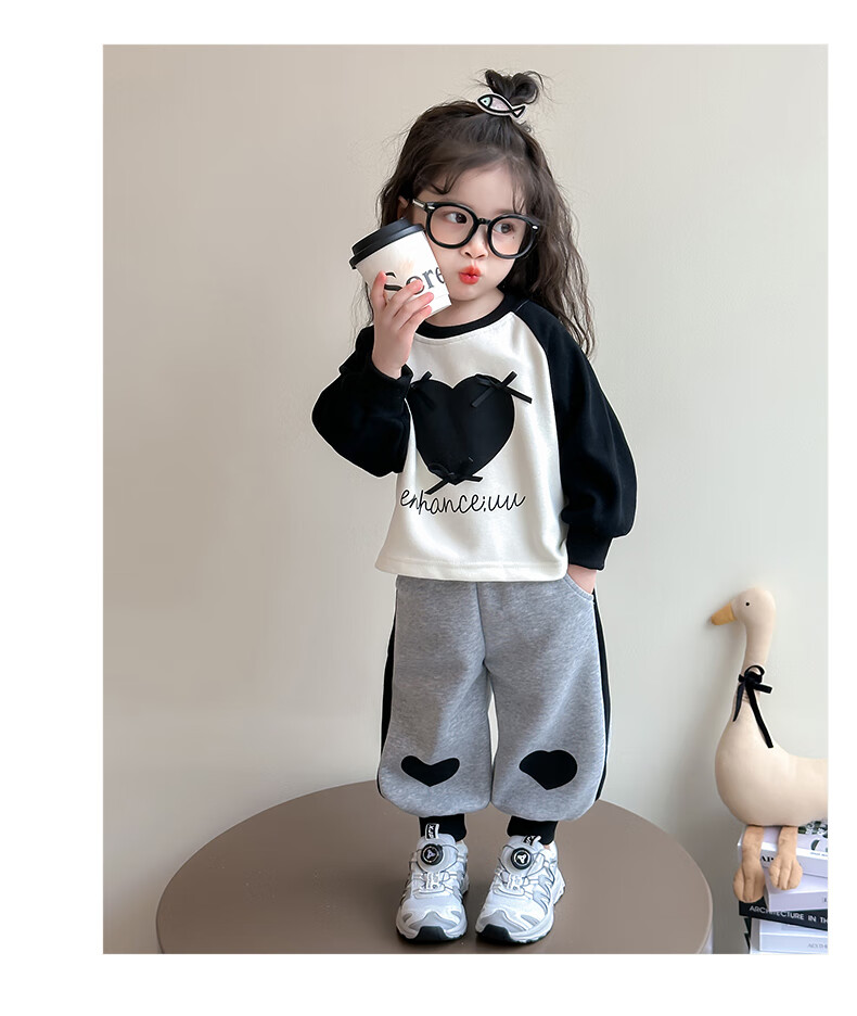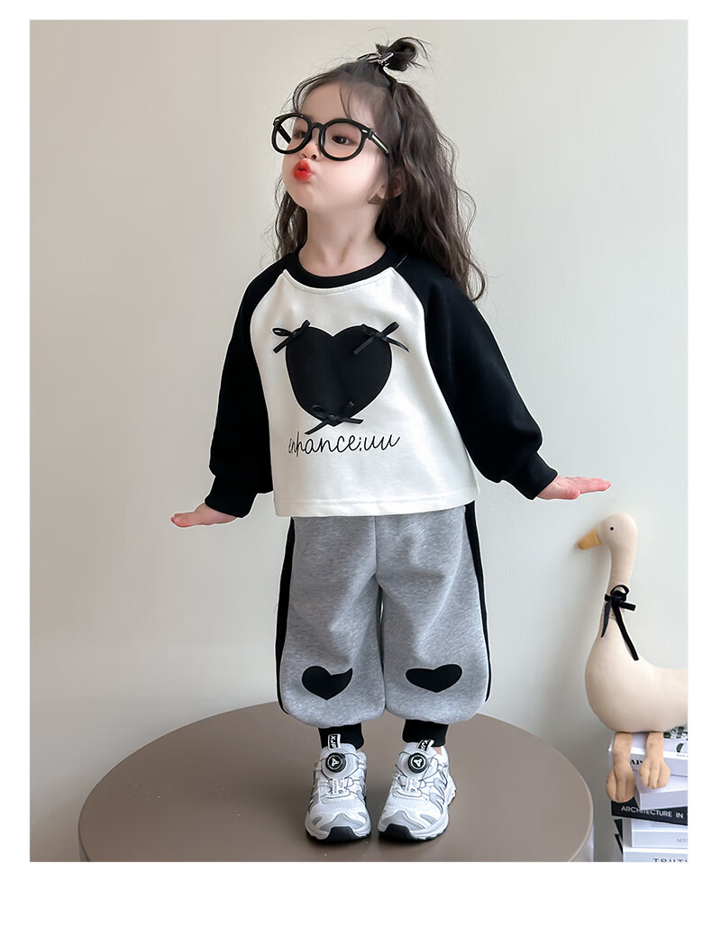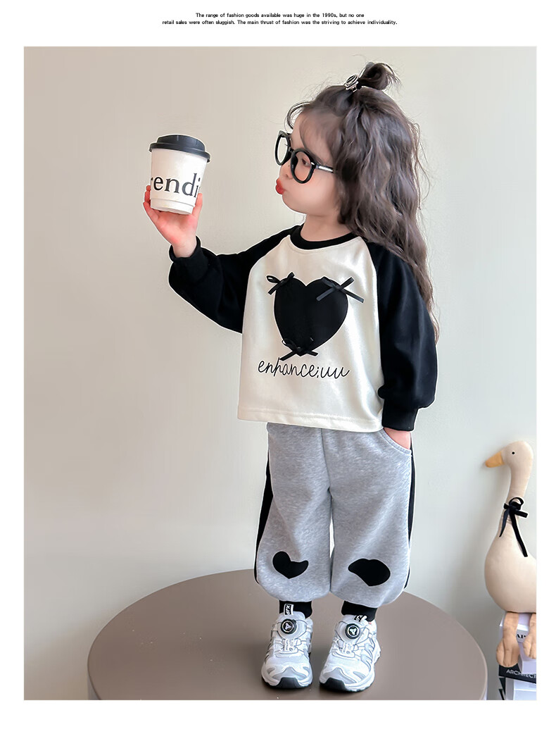 Burwilde International Brand Girls' Autumn Clothing Set 2025 New Children's Love Contrast Color Western Style Long-Sleeved Sweatshirt Spring and Autumn Clothing for Women White (Gift Box) 120 cm