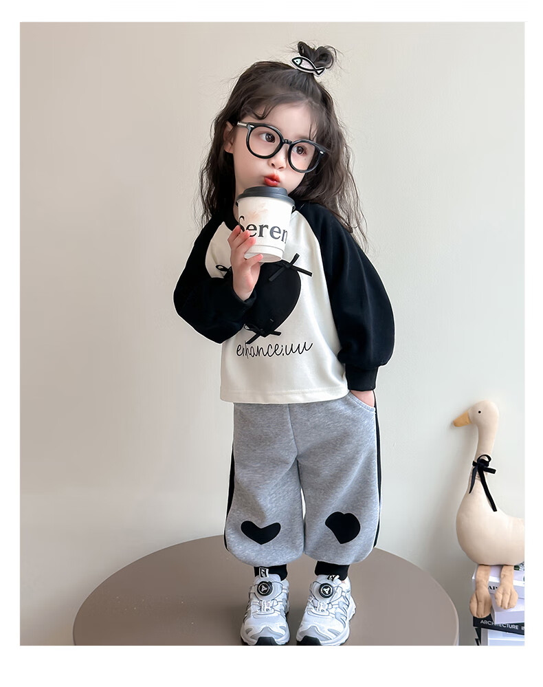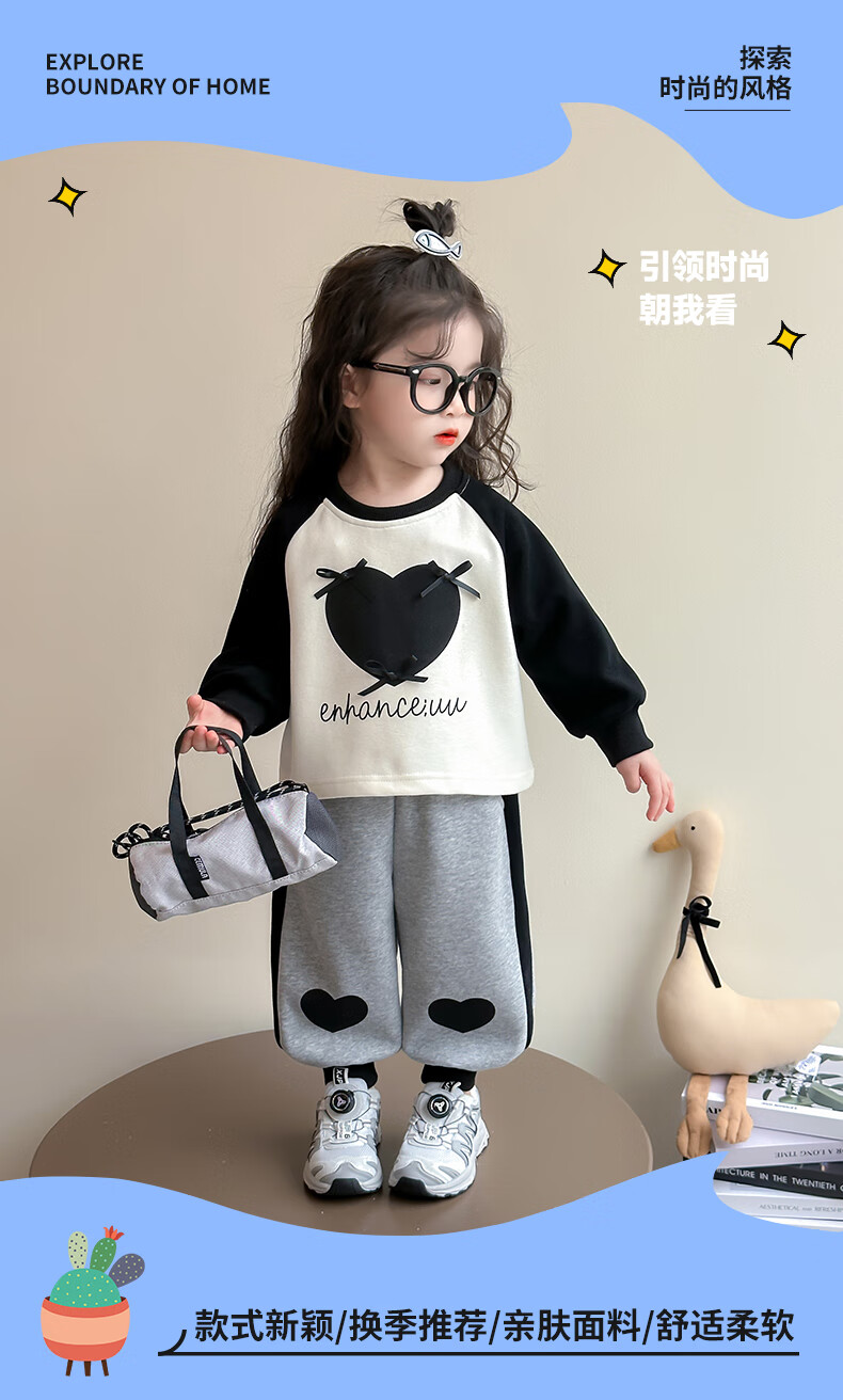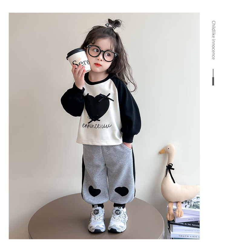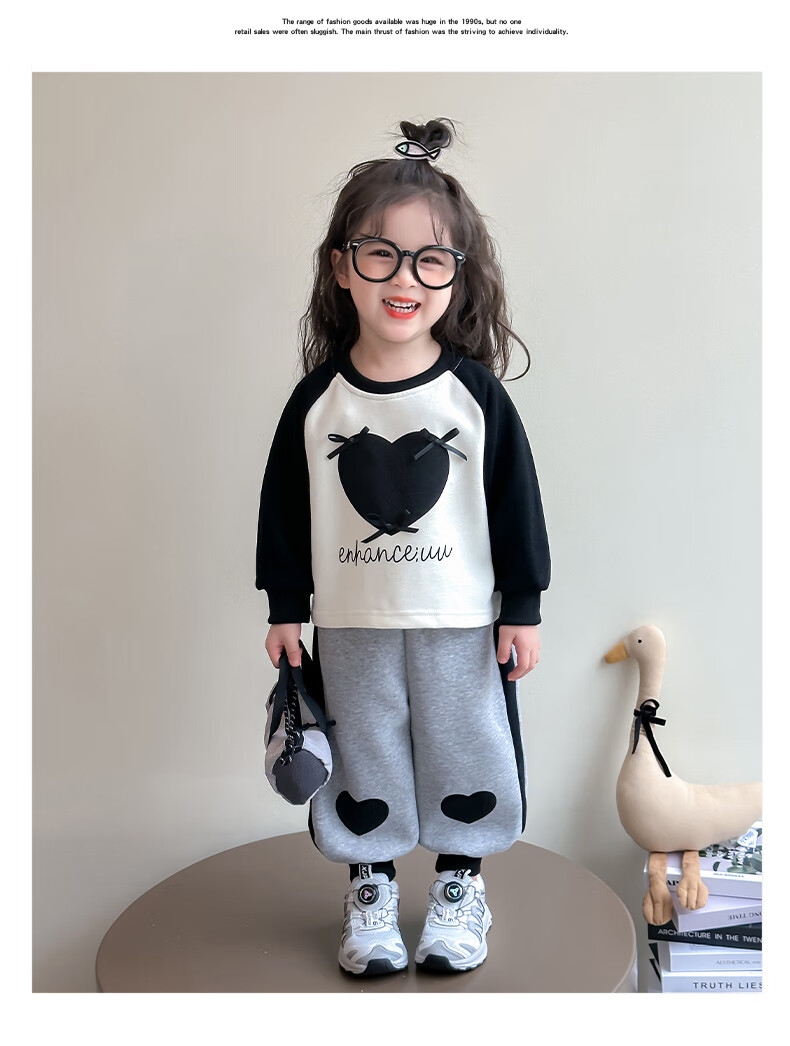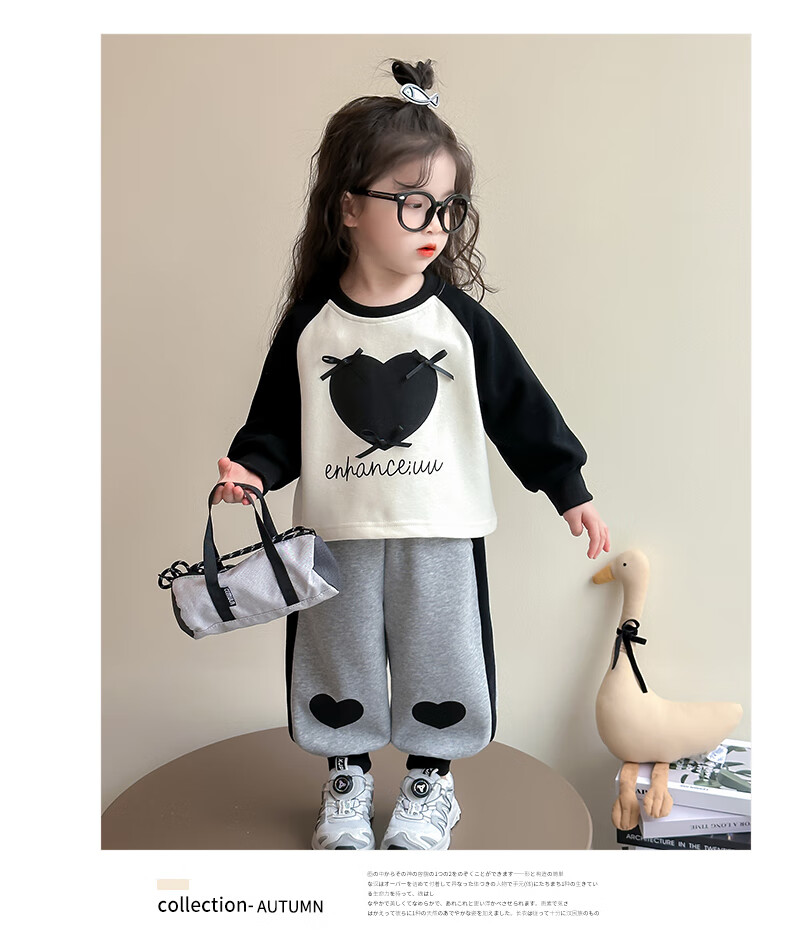 Burwilde International Brand Girls' Autumn Clothing Set 2025 New Children's Love Contrast Color Western Style Long-Sleeved Sweatshirt Spring and Autumn Clothing for Women White (Gift Box) 120 cm