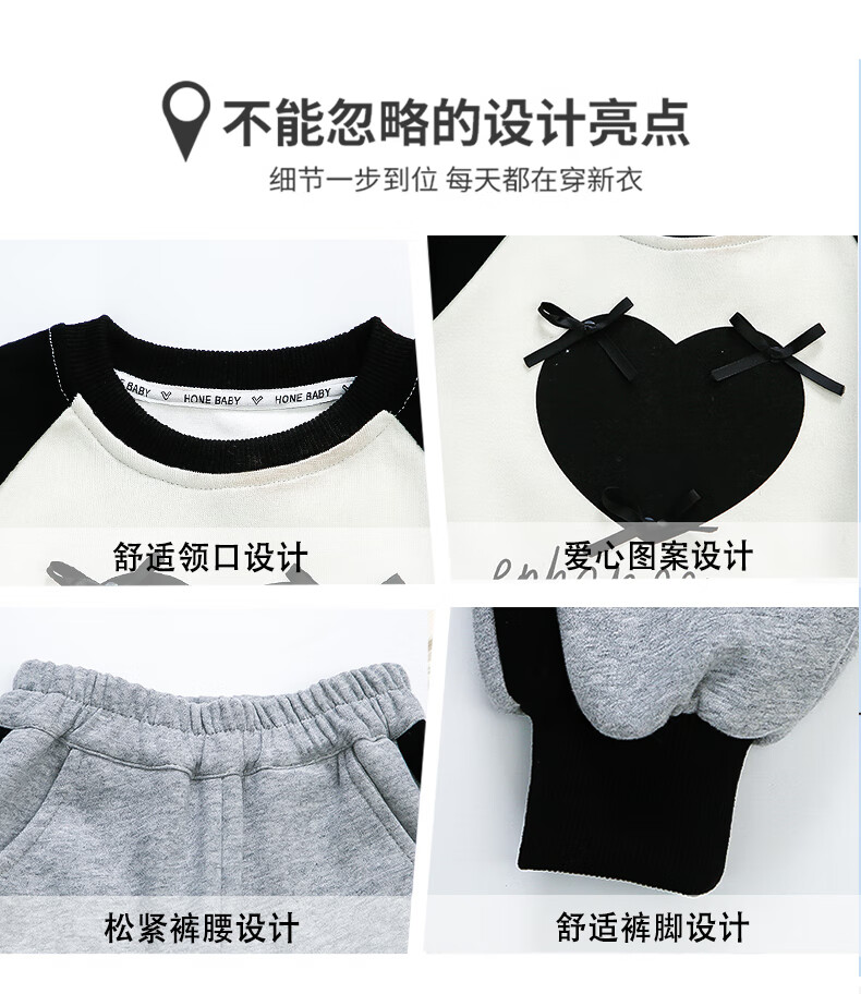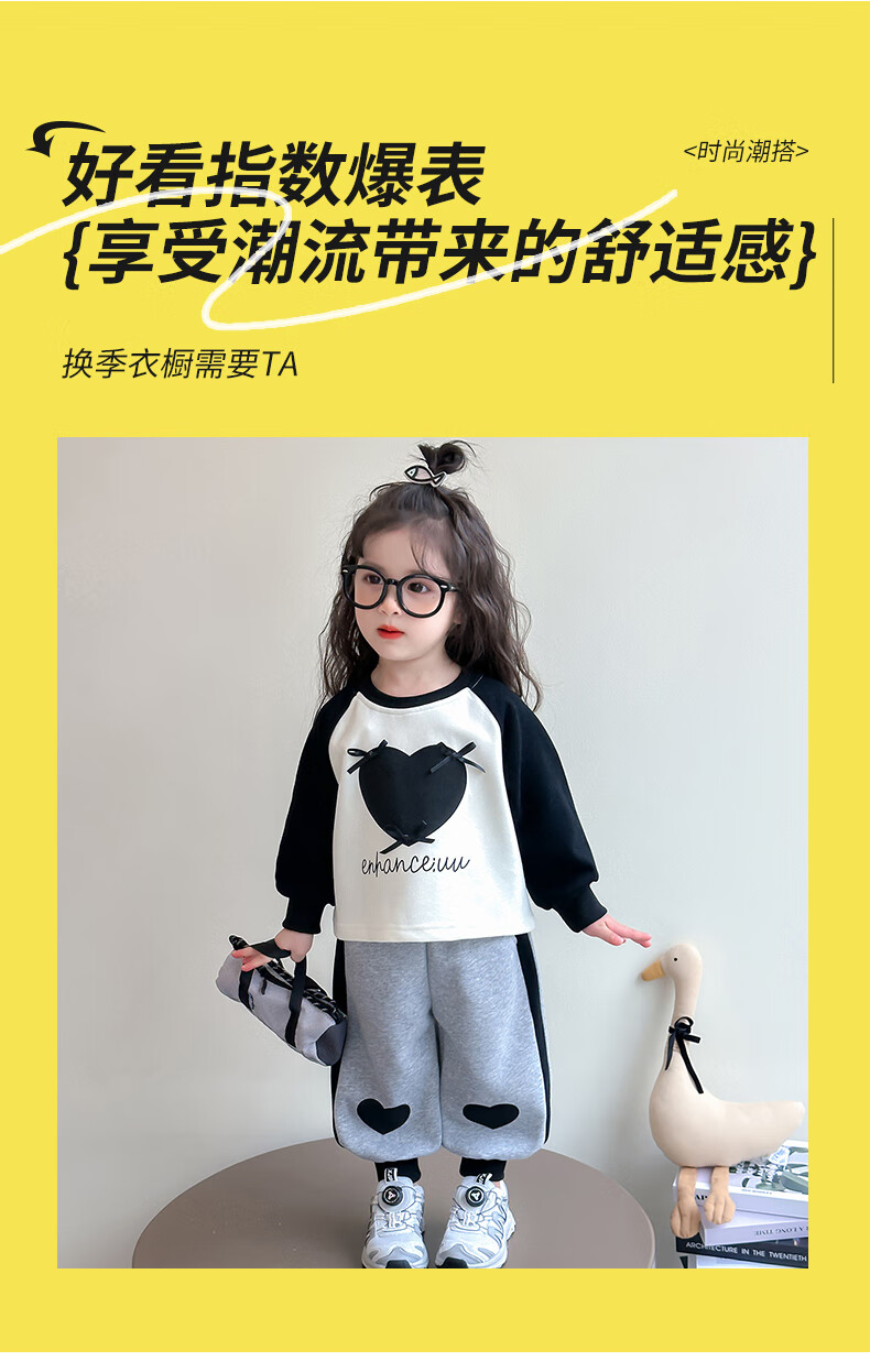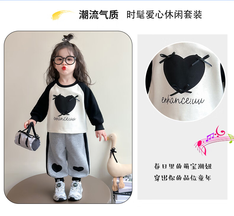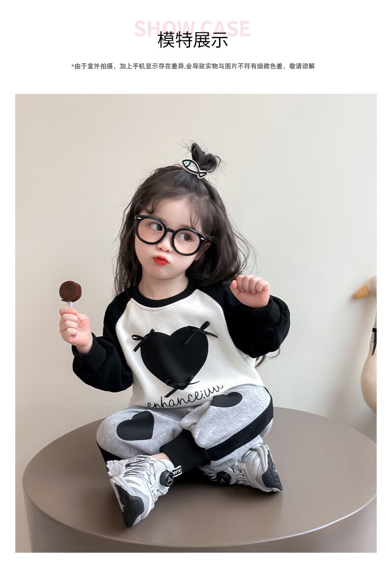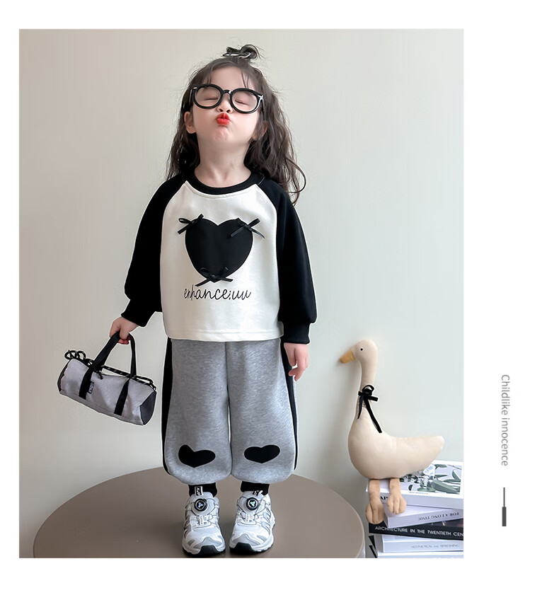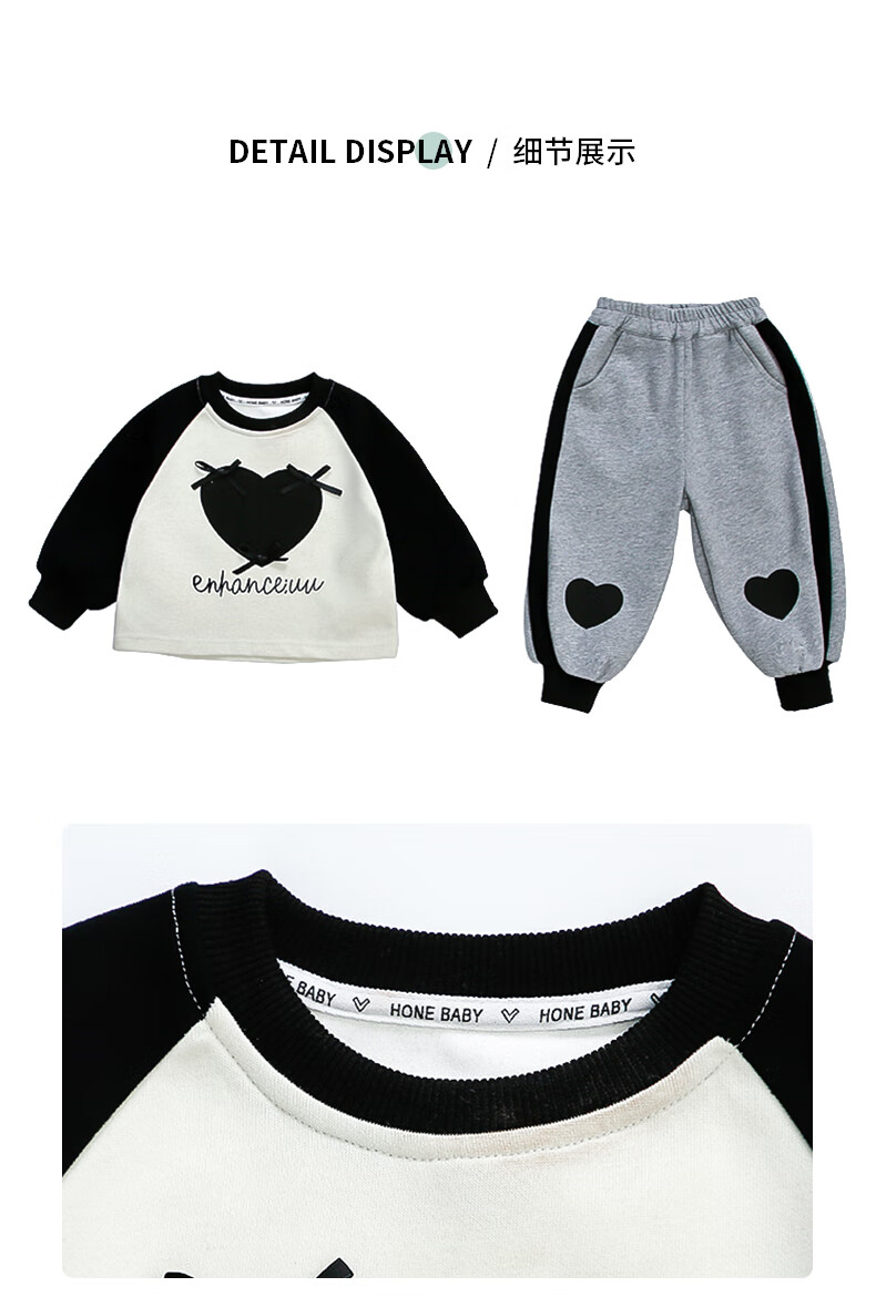 Burwilde International Brand Girls' Autumn Clothing Set 2025 New Children's Love Contrast Color Western Style Long-Sleeved Sweatshirt Spring and Autumn Clothing for Women White (Gift Box) 120 cm