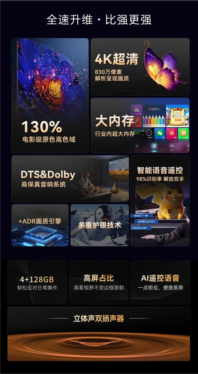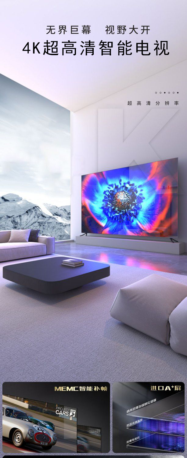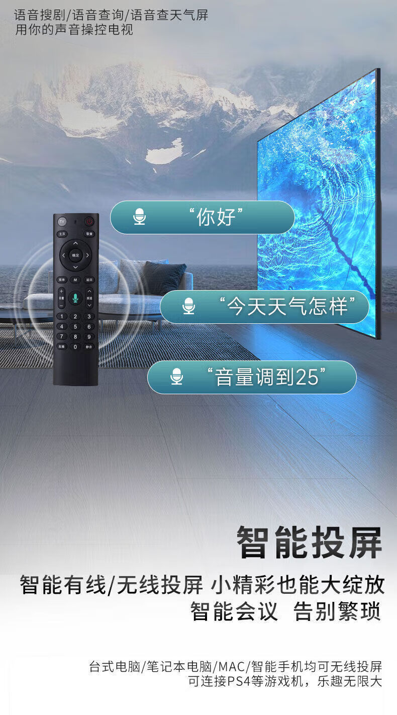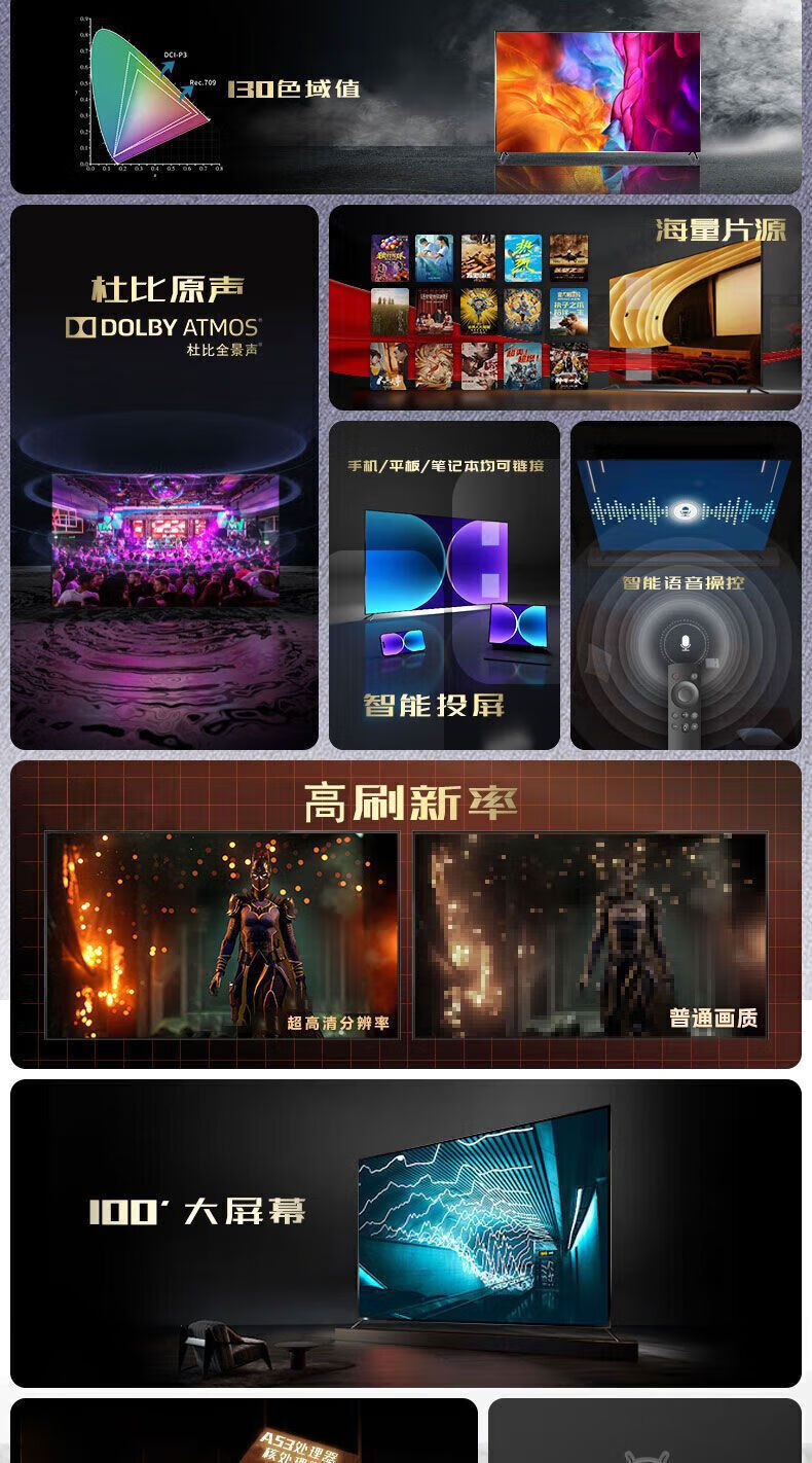 Kang Jiaqi 30% subsidy for home appliances, large 100-inch TV in the living room, LCD 4K ultra-clear smart wireless voice projection network, hotel conference advertising display, explosion-proof screen 130LED ultra-clear smart network, length 190X height 113 cm