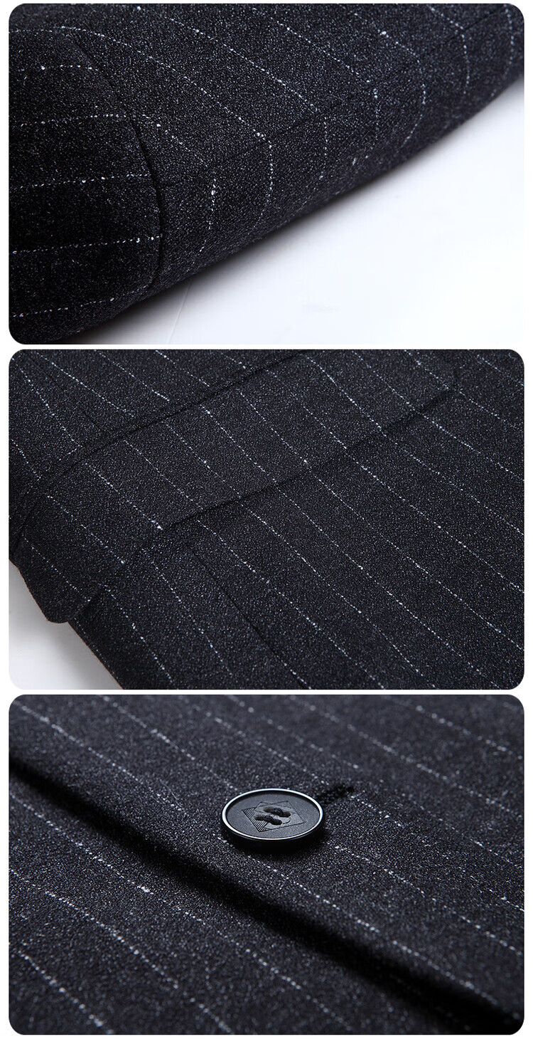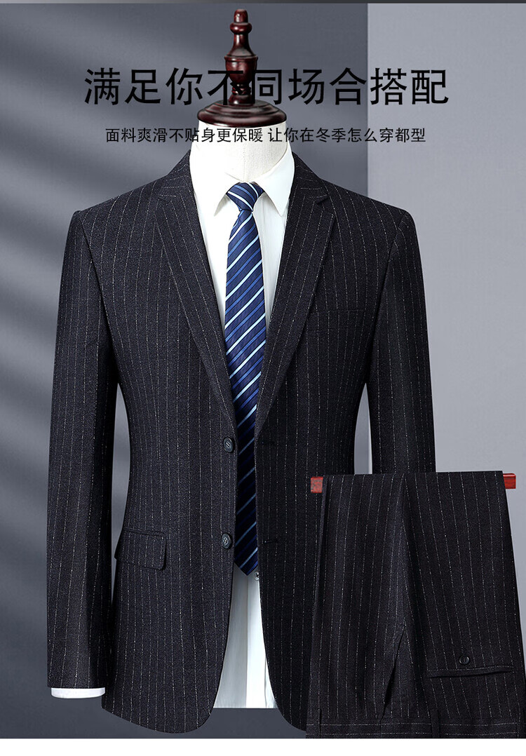 TOME BORNEK High-End Suit Set Men's Banquet Professional Formal Wear Business Casual Vertical Stripe Simple Solid Color Suit Two-piece Set Dark Gray Stripe (Set) XL 180