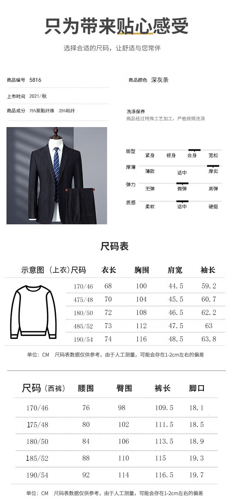 China (cm) 160-165/84-86 165-170 / 88-90 167-172 / 92-96 168-173 / 98-102 170-176 / 106-110