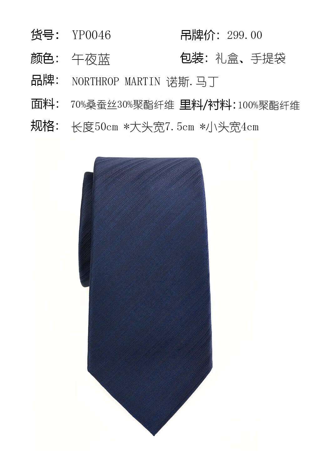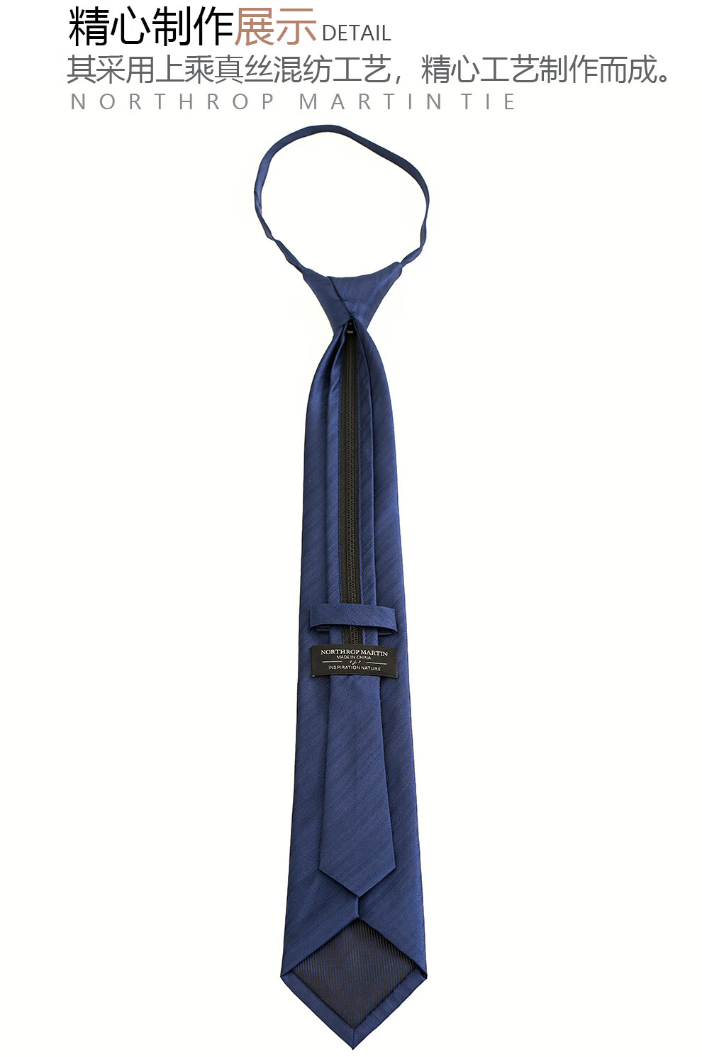 North Martin High-End Silk Tie No-Knot Lazy Zipper Men's Business One-Pull Blue New Year Gift Midnight Blue