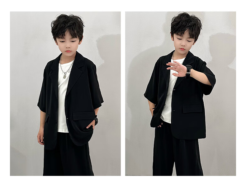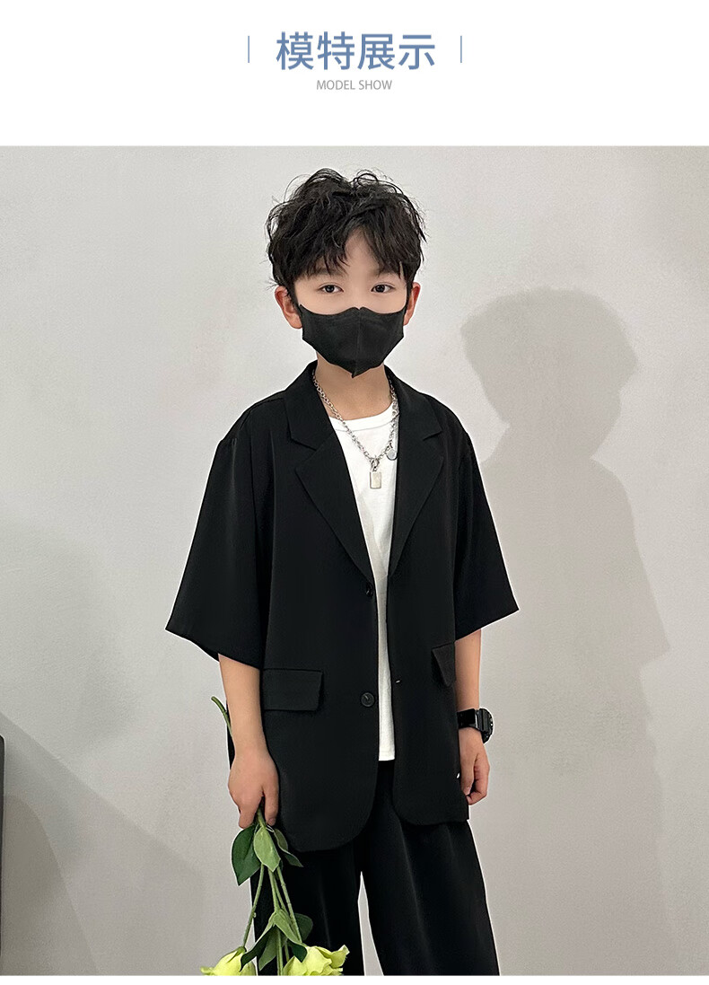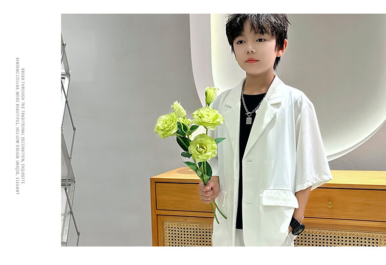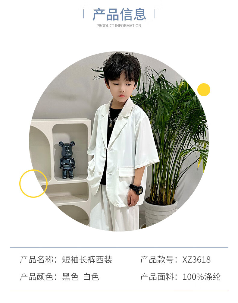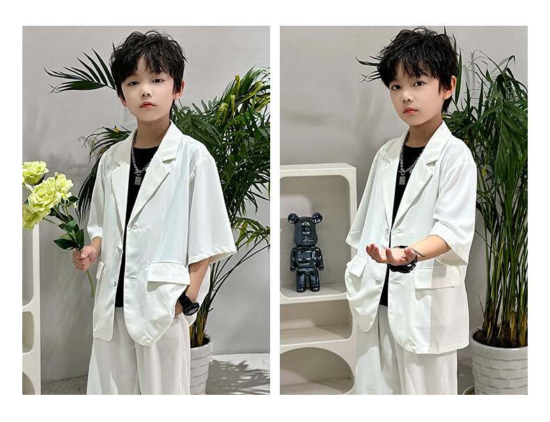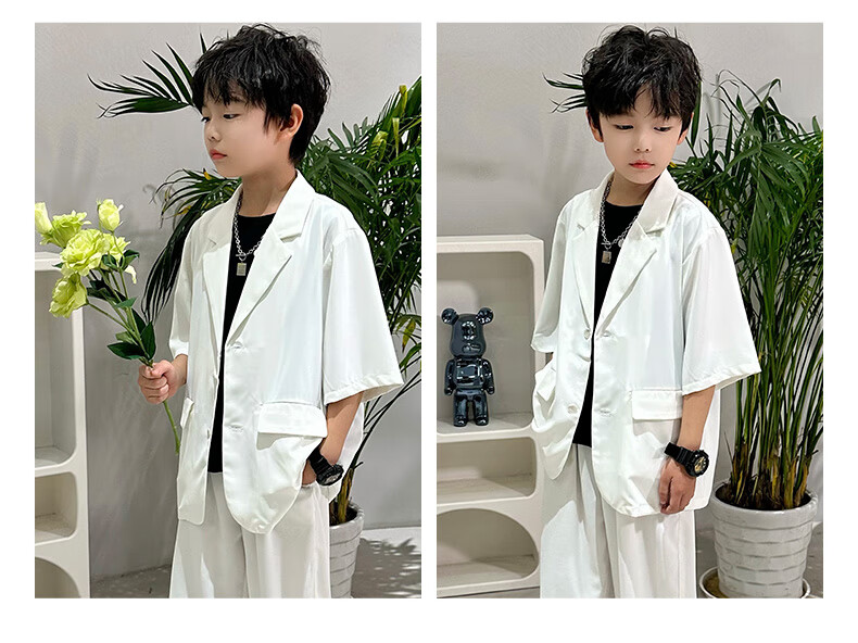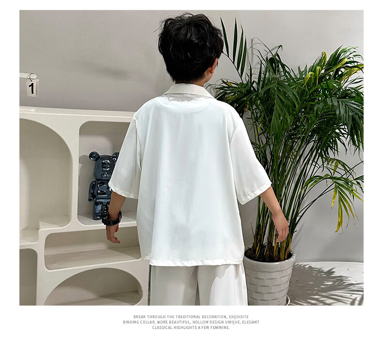 Burwilde international brand Elephant Dad children's clothing cool short-sleeved trousers suit 2025 summer high-end handsome middle-aged and older children's suit white top + pants two-piece set 150 (recommended height 141-150cm)