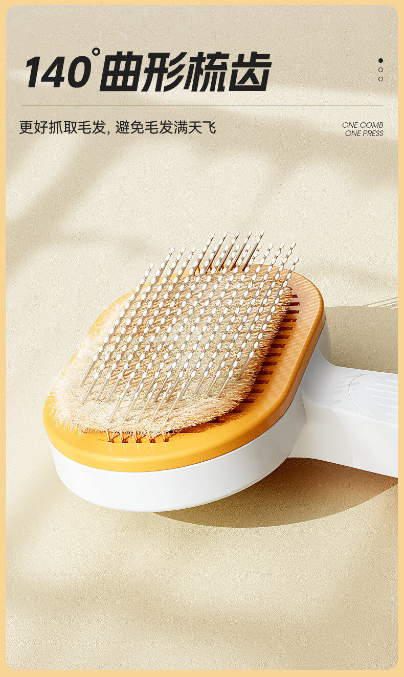 AILUKI Japanese cat comb special cat hair comb small dog to remove floating hair long hair pet needle comb brush cat cleaning oval self-cleaning comb white and yellow