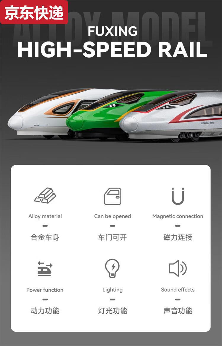 Sanqihu high-speed rail toy train alloy Fuxing train model children's electric track high-speed train remote control car remote control high-speed rail Fuxing Baisijie