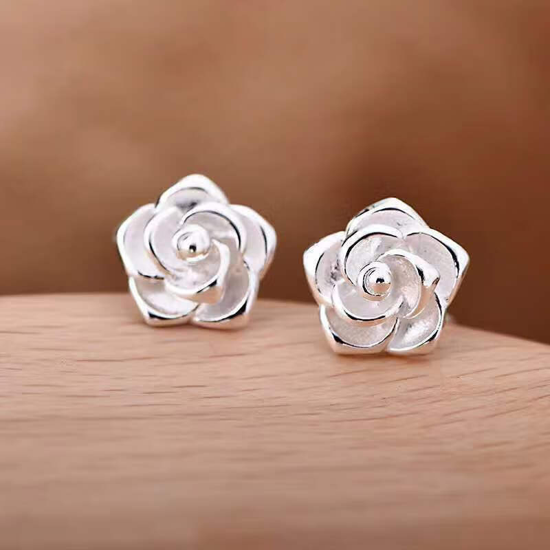 Lingmeng Hong Kong Silver Earrings 9999 Sterling Silver Earrings for Women Rose Silver Earrings Earrings for Mom Hypoallergenic Rose Earrings + Certificate 3.59g