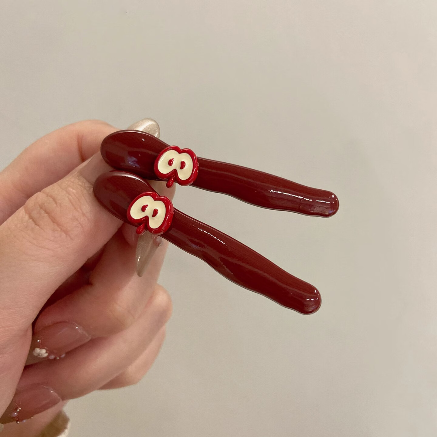 Ze Yuhan Korean cute little apple bangs hair clip bangs hair clip ancora red high-value side duckbill clip wine red small apple bangs clip random 2 pieces