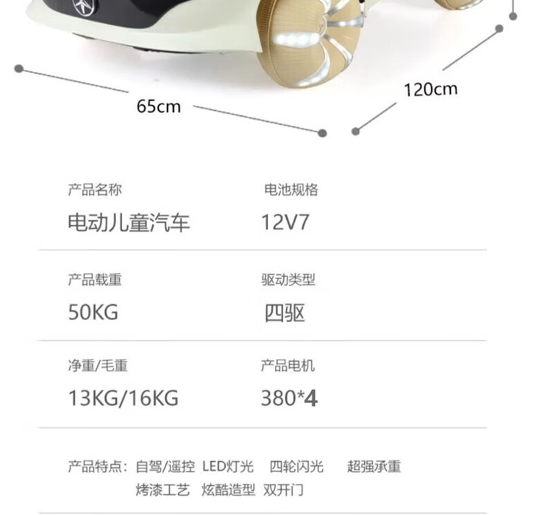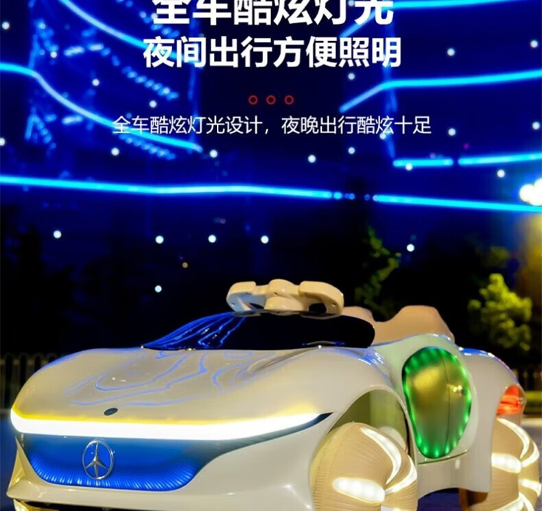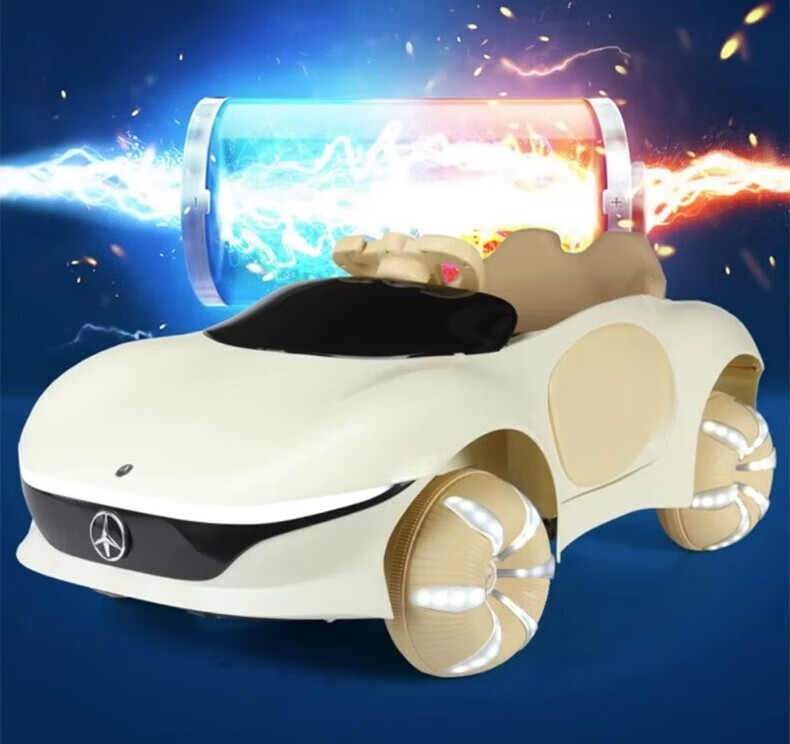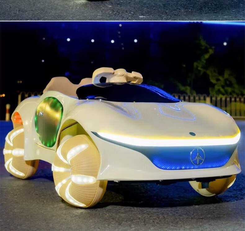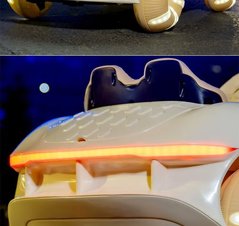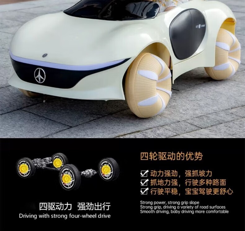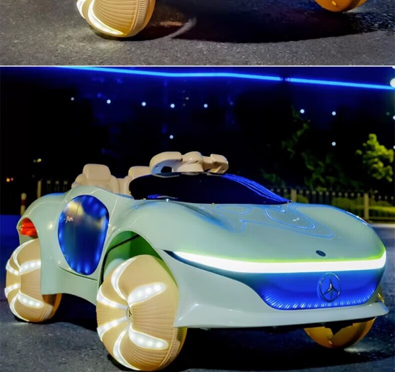 Aobele children's electric car, four-wheeled, can sit on and drive with remote control, infant toy car, baby driving stroller, baked silver, four-wheel drive + leather seat + 12v14 lithium battery + wheel light, early childhood education music + light
