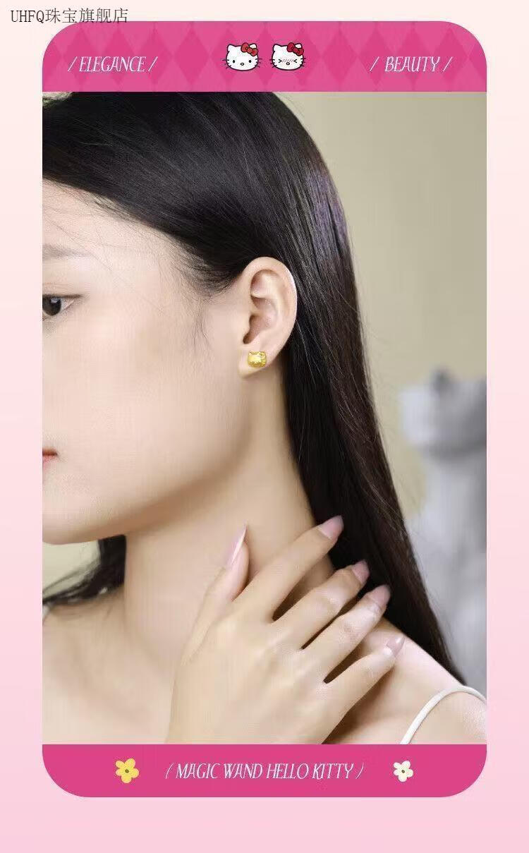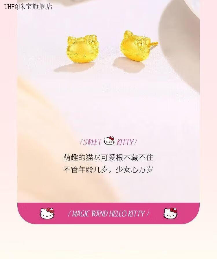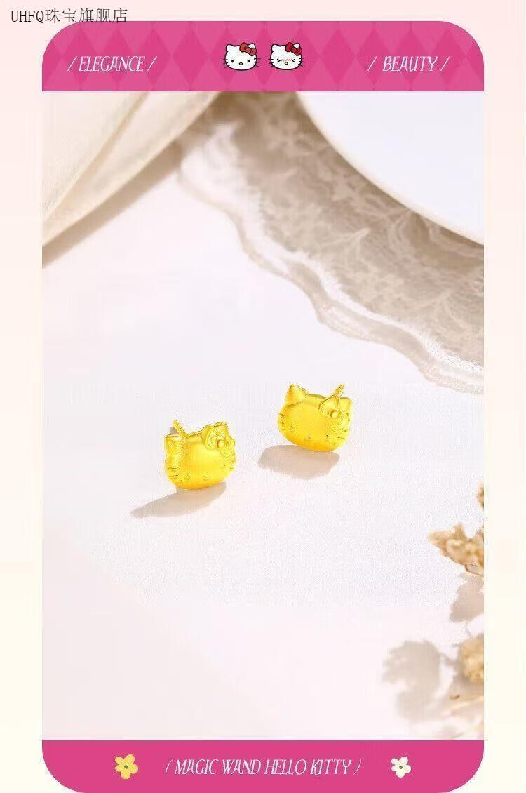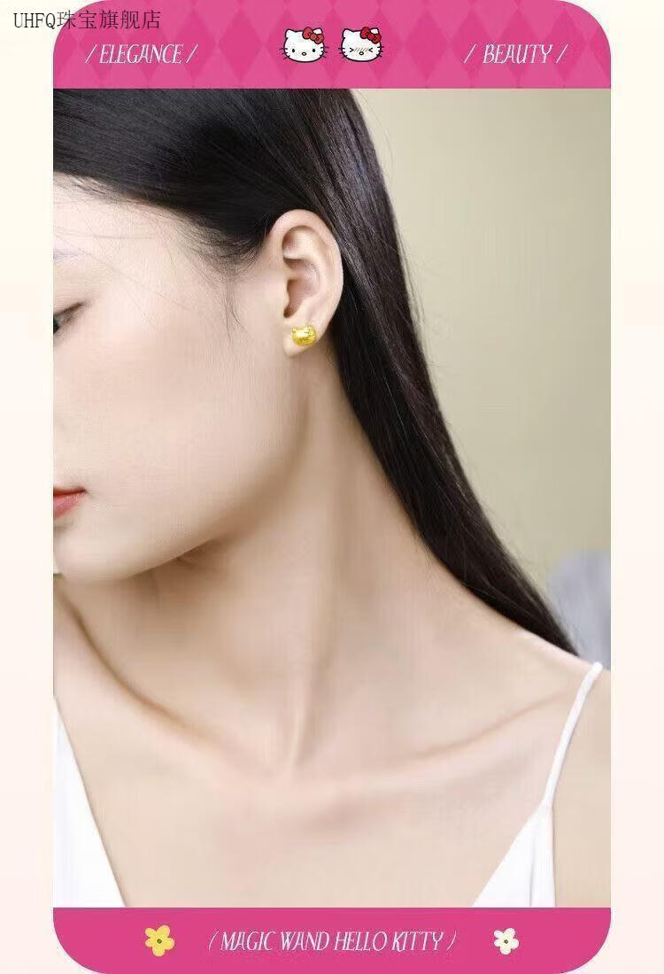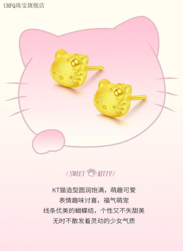 UHFQ Old Phoenix 999 pure gold hellokitty earrings 5Gkt cat bow earrings Valentine's Day gift 0.13g KT cat earrings official