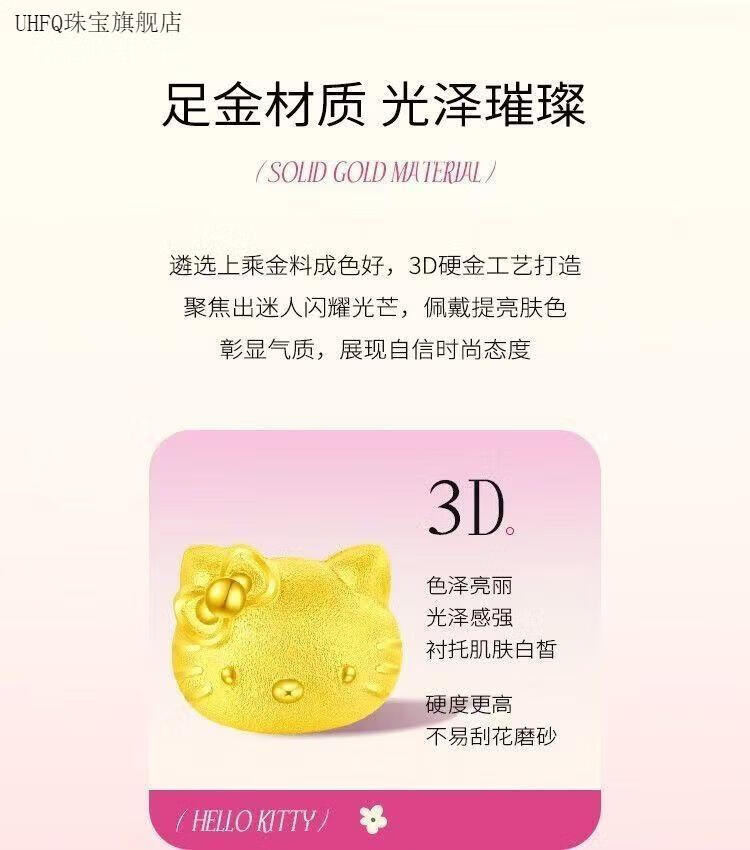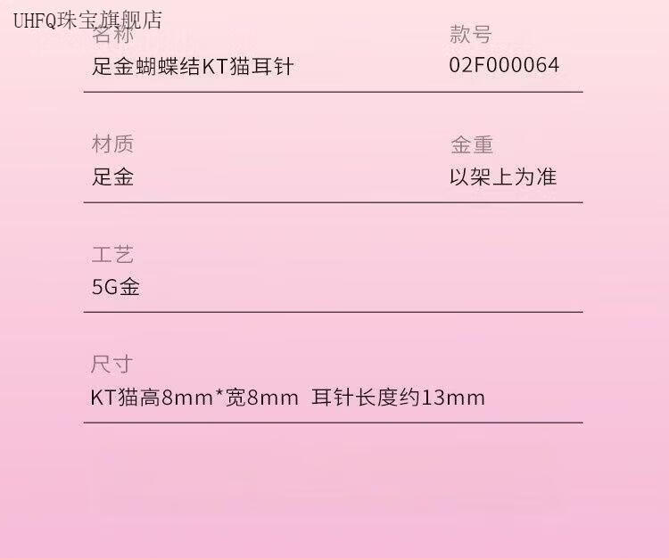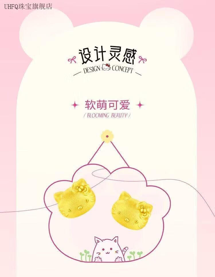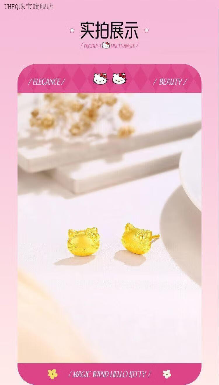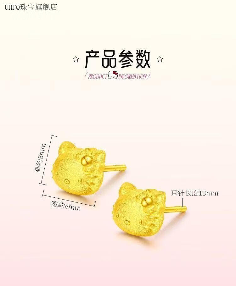 UHFQ Old Phoenix 999 pure gold hellokitty earrings 5Gkt cat bow earrings Valentine's Day gift 0.13g KT cat earrings official
