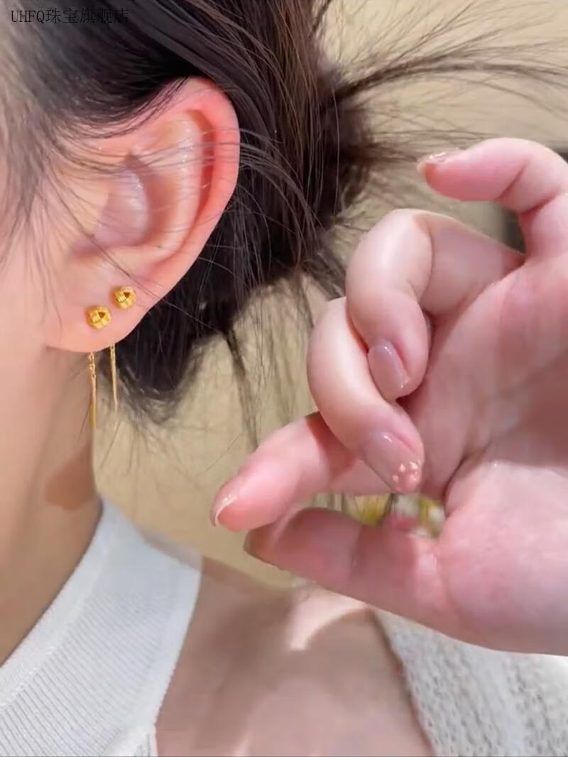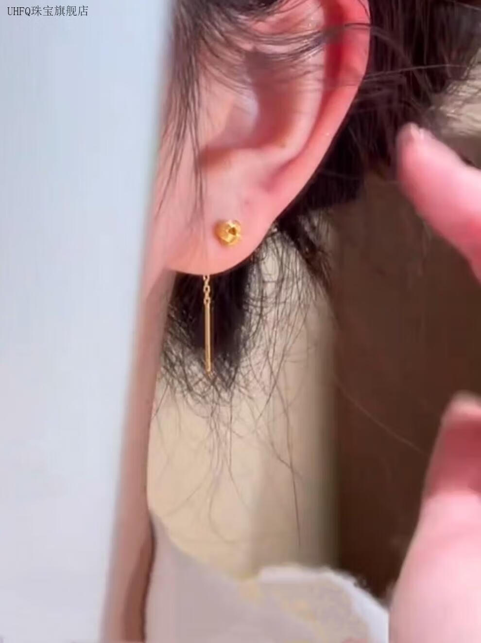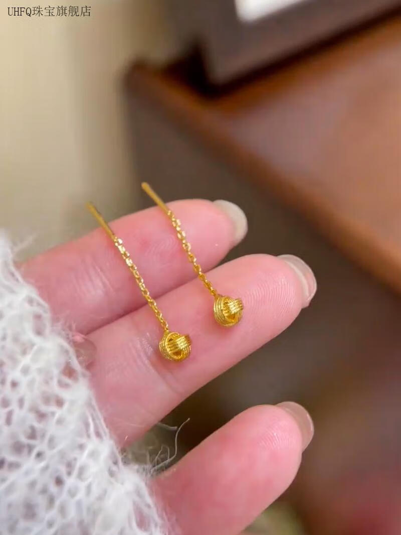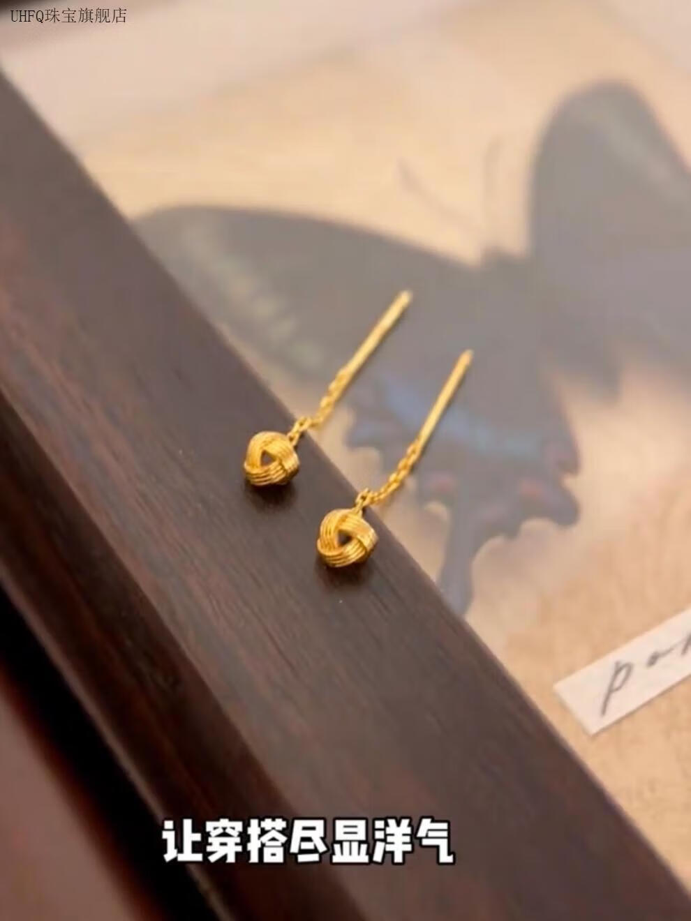 UHFQ Old Phoenix Simple Ruyi Knot Tassel Ear Wire New Niche Versatile Light Luxury Earrings Earrings Golden Ruyi Knot Tassel Ear Wire
