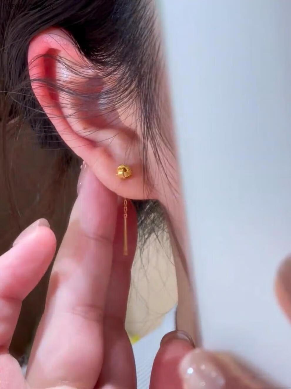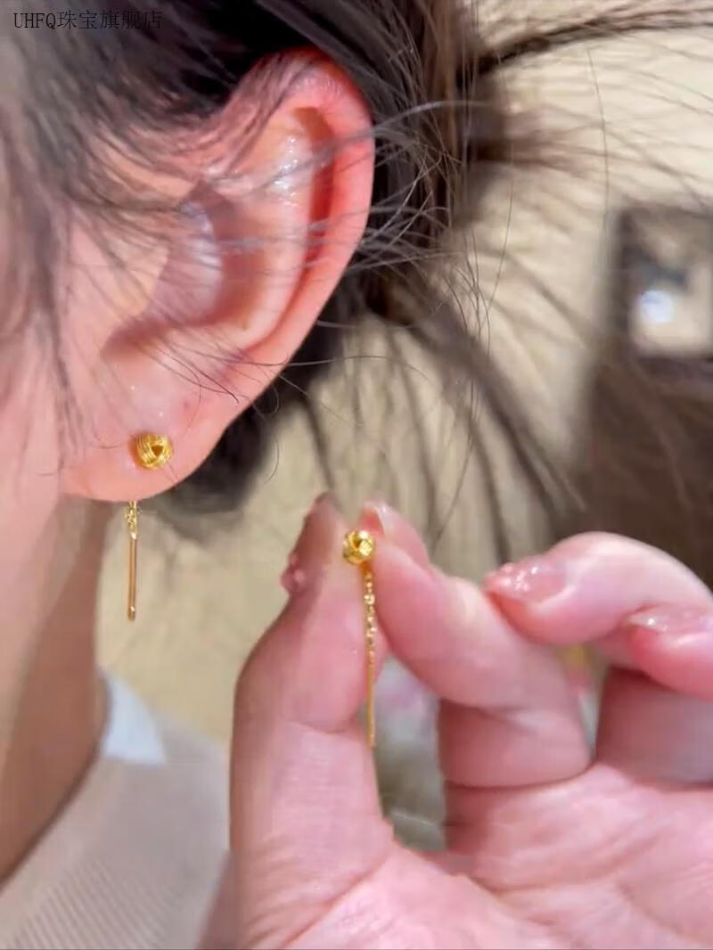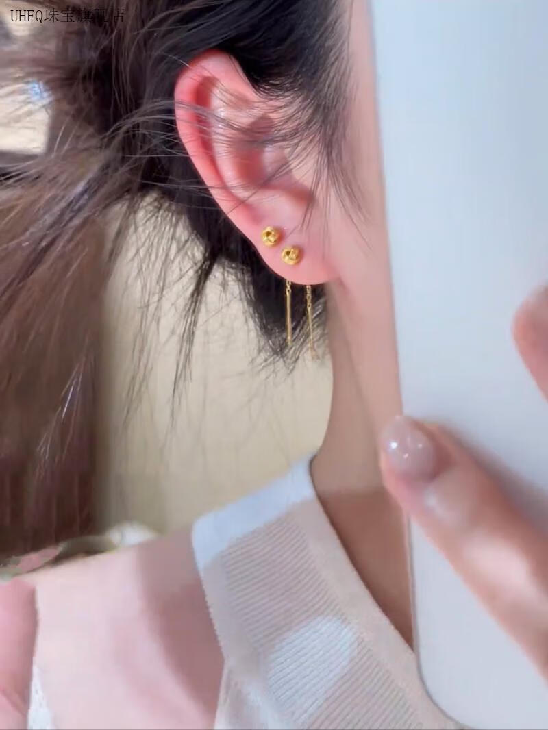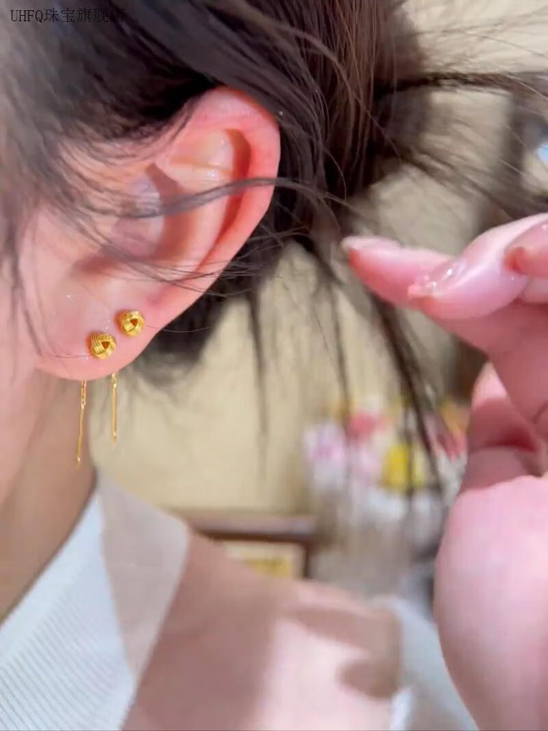 UHFQ Old Phoenix Simple Ruyi Knot Tassel Ear Wire New Niche Versatile Light Luxury Earrings Earrings Golden Ruyi Knot Tassel Ear Wire