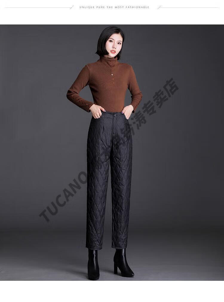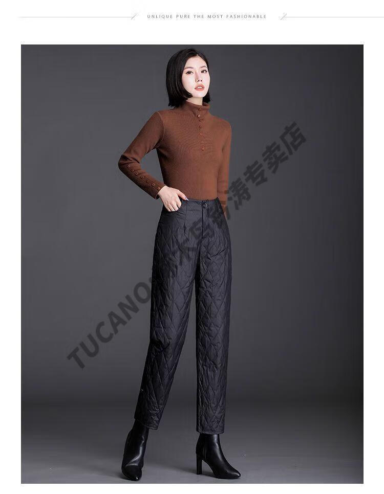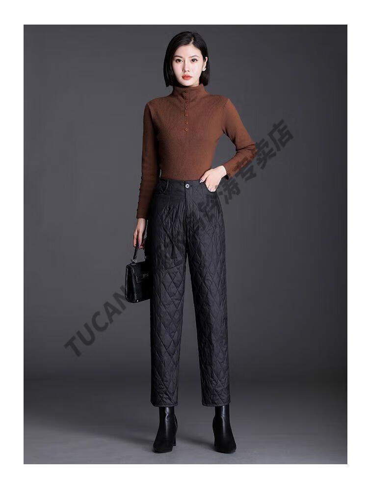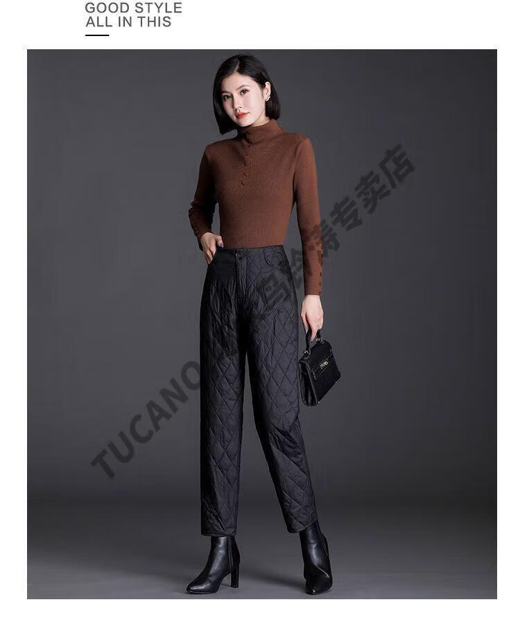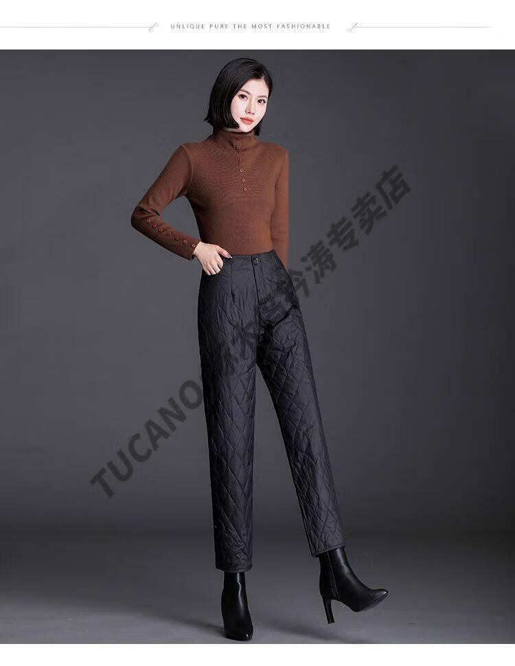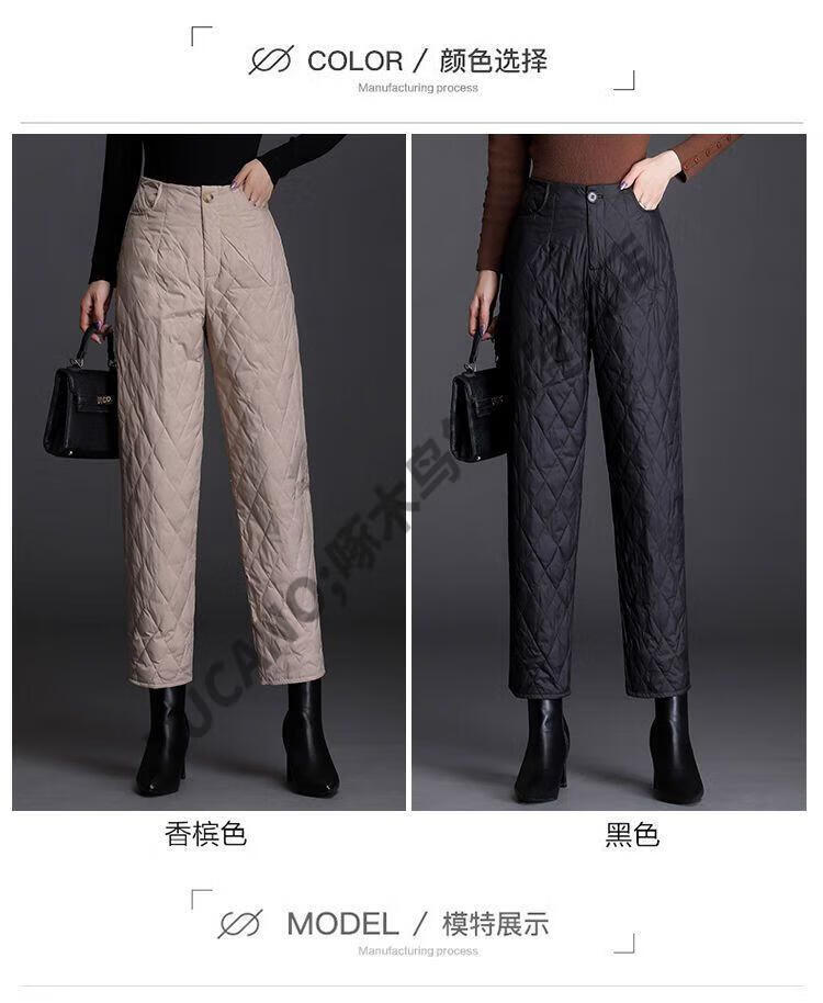 Woodpecker lightweight cotton pants for women, fashionable straight cotton pants for winter, new style, thickened, high-waisted, loose, warm and slim, black M recommended 95-105Jin Jin equals 0.5kg