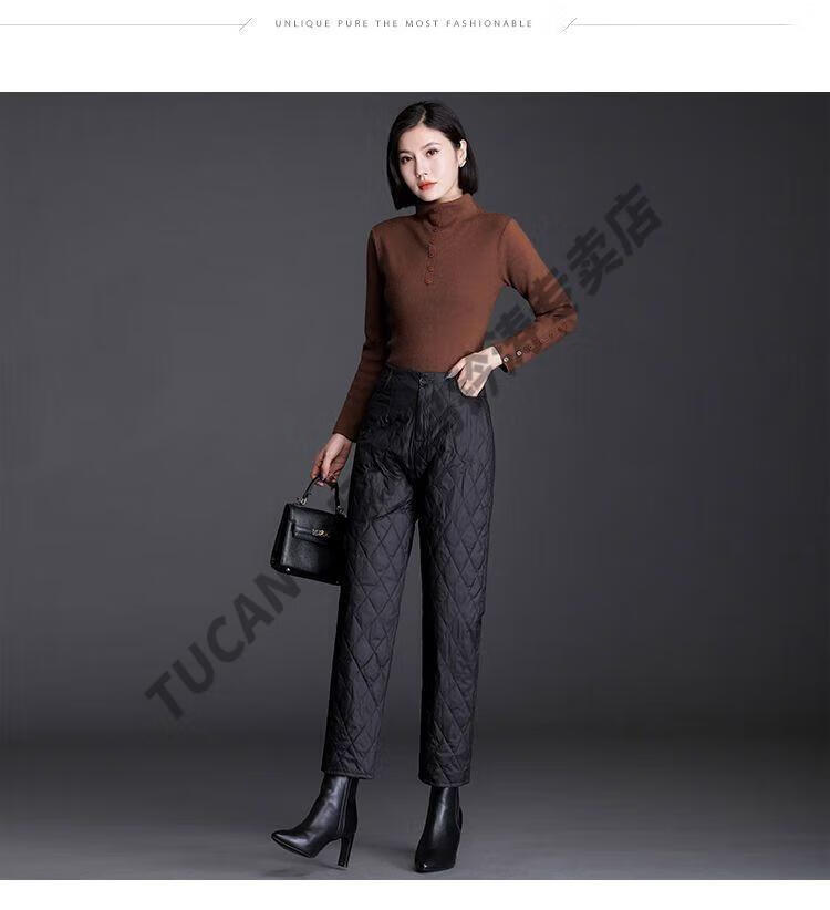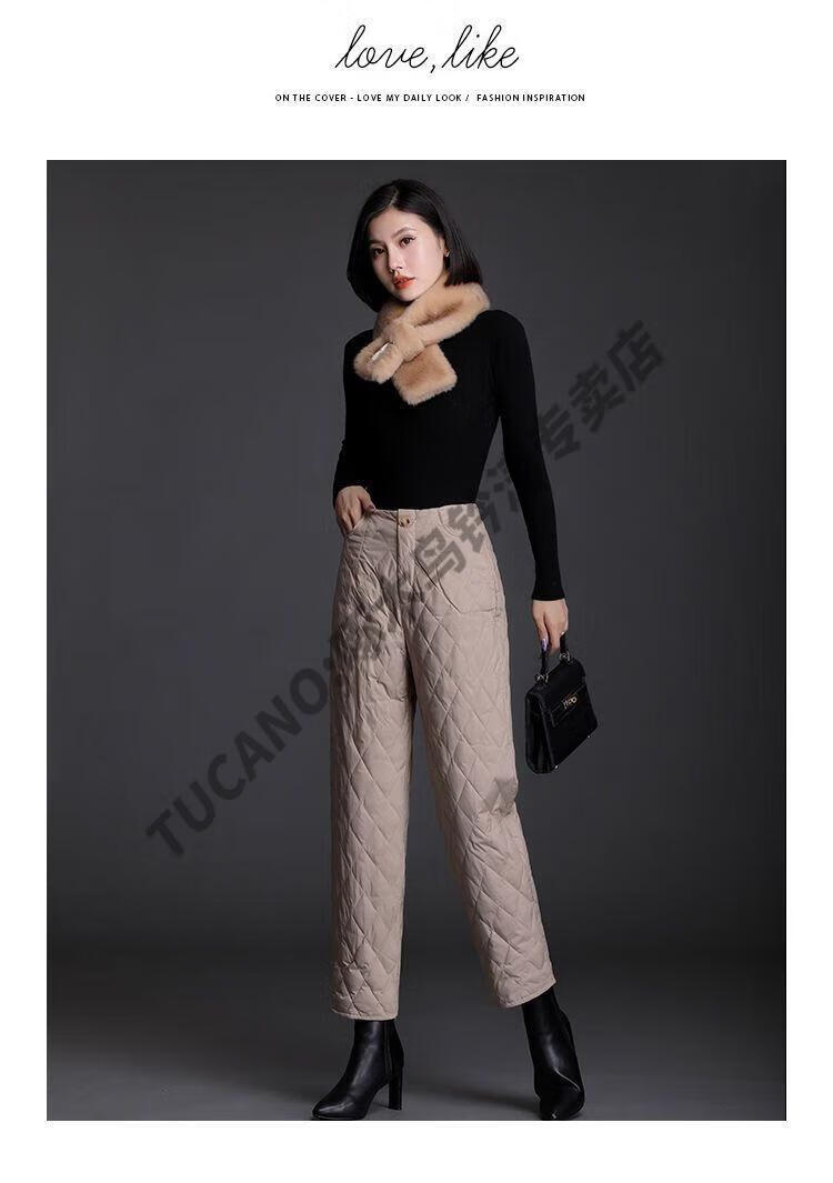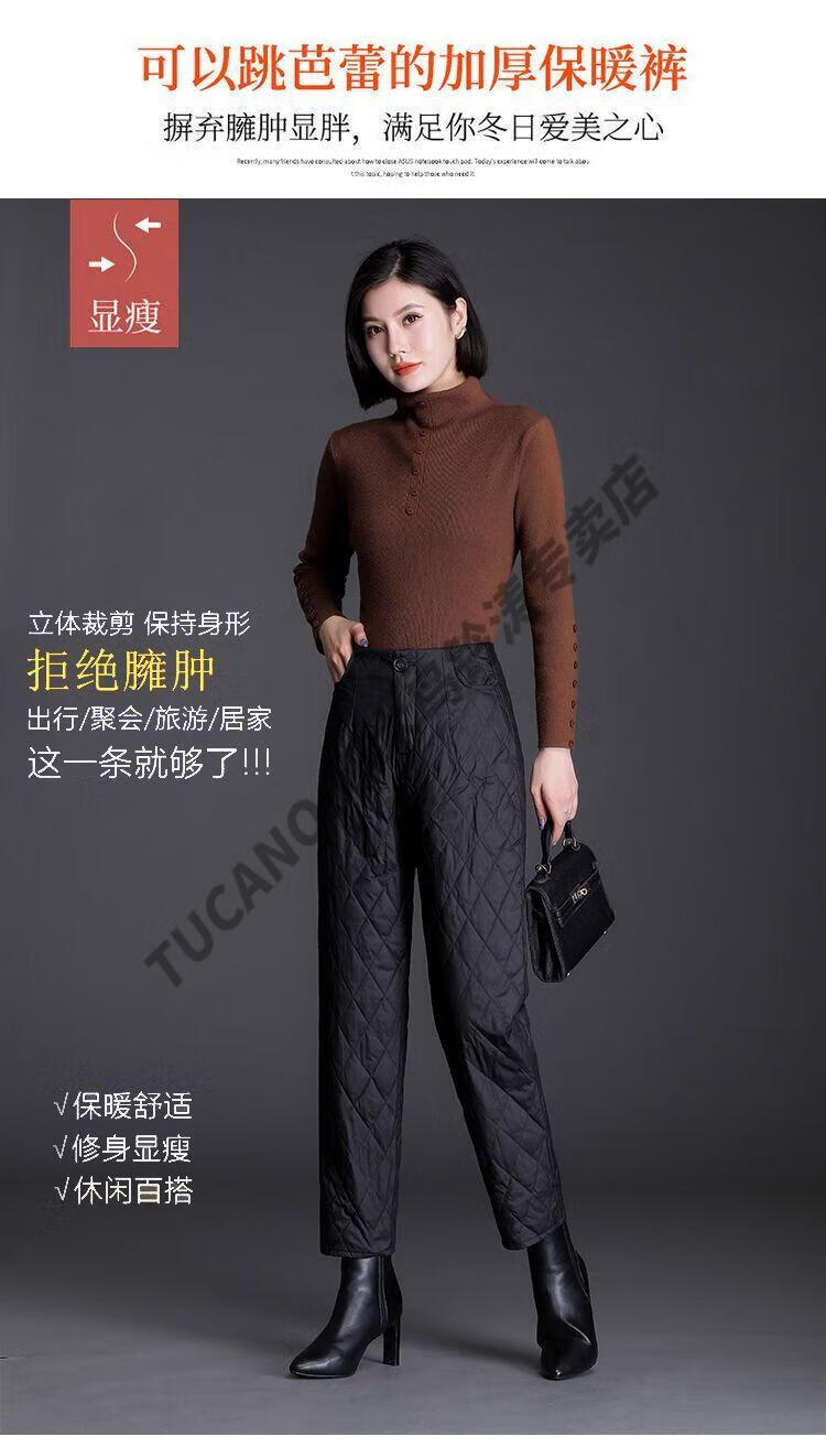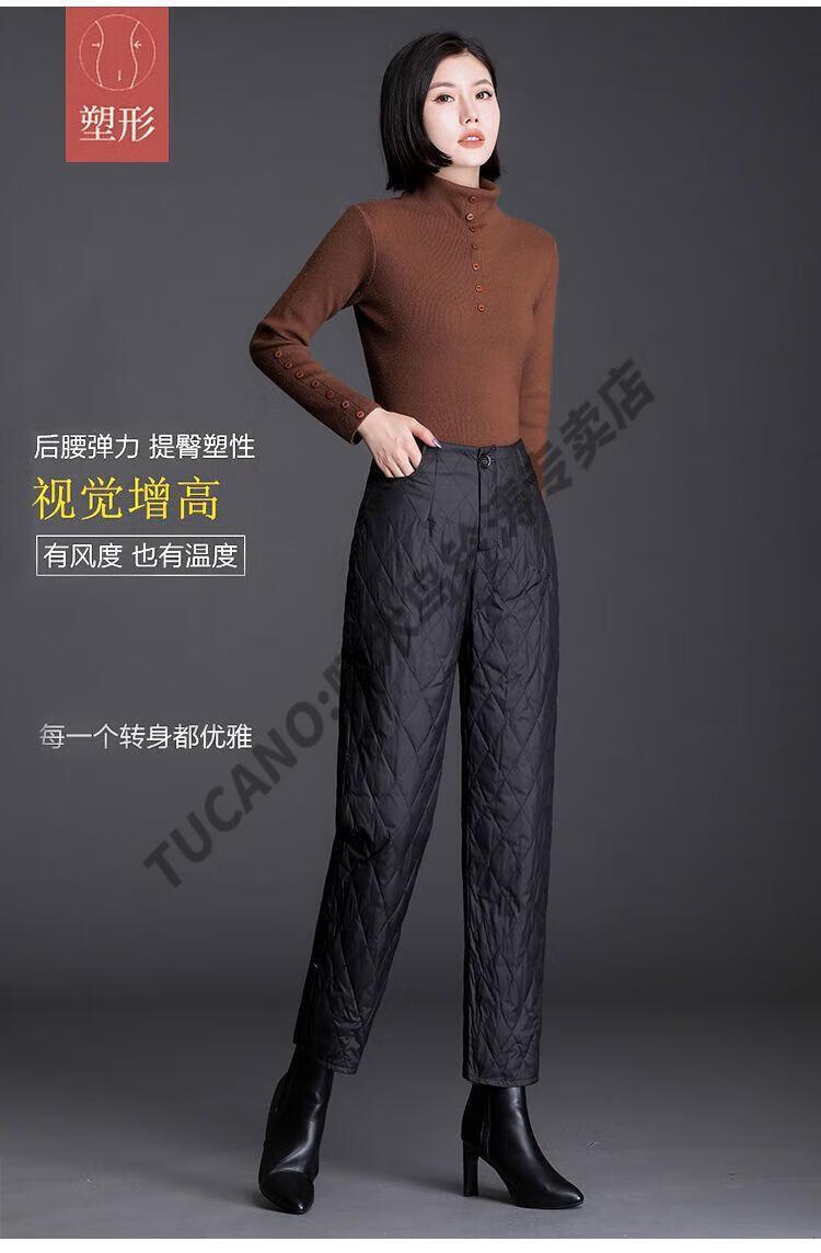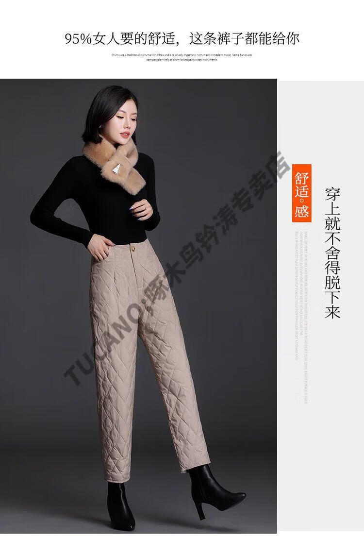 Woodpecker lightweight cotton pants for women, fashionable straight cotton pants for winter, new style, thickened, high-waisted, loose, warm and slim, black M recommended 95-105Jin Jin equals 0.5kg