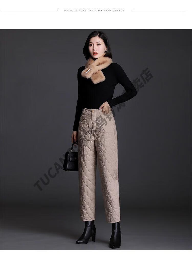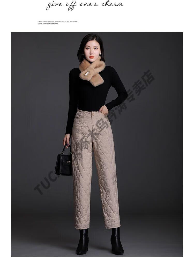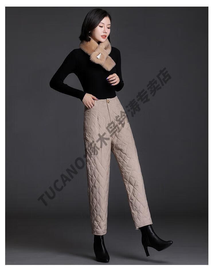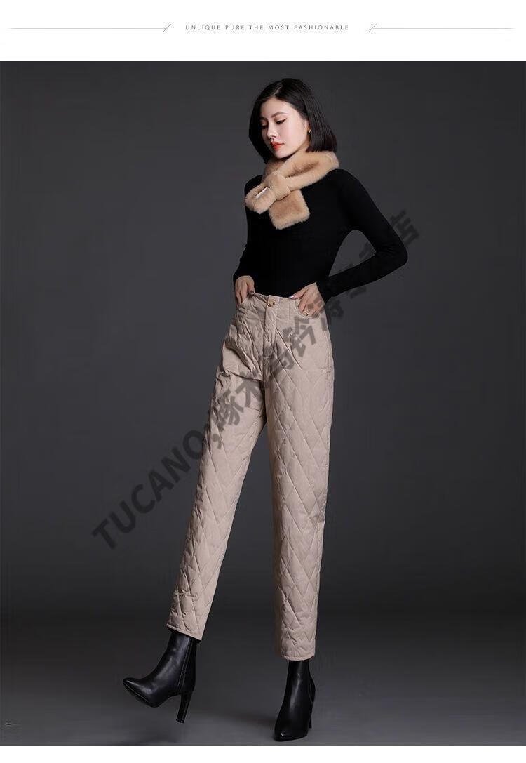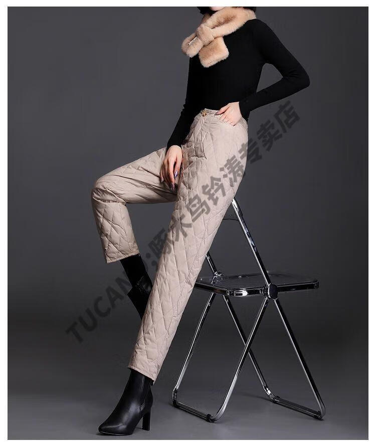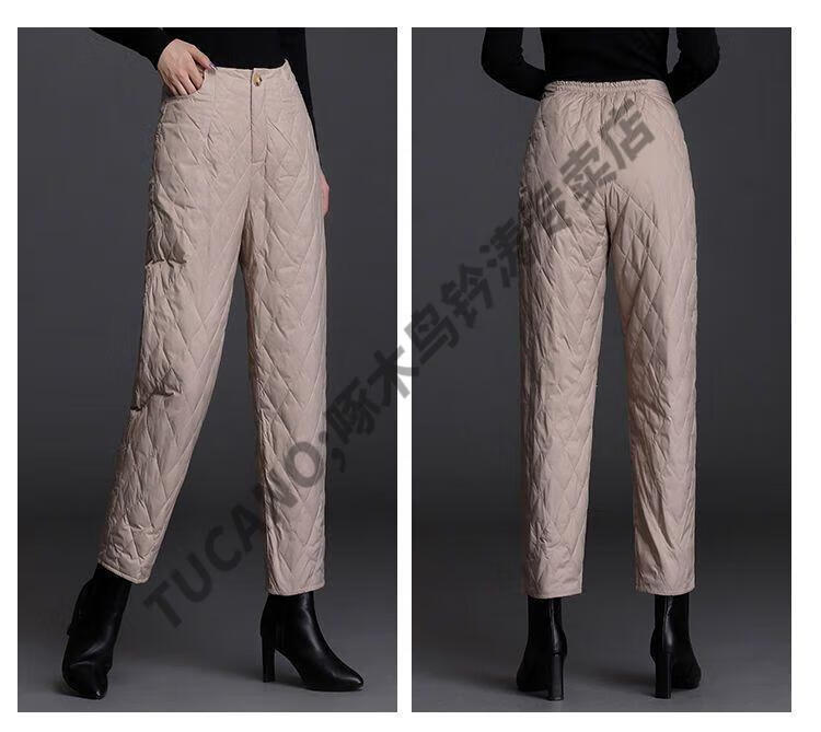 Woodpecker lightweight cotton pants for women, fashionable straight cotton pants for winter, new style, thickened, high-waisted, loose, warm and slim, black M recommended 95-105Jin Jin equals 0.5kg