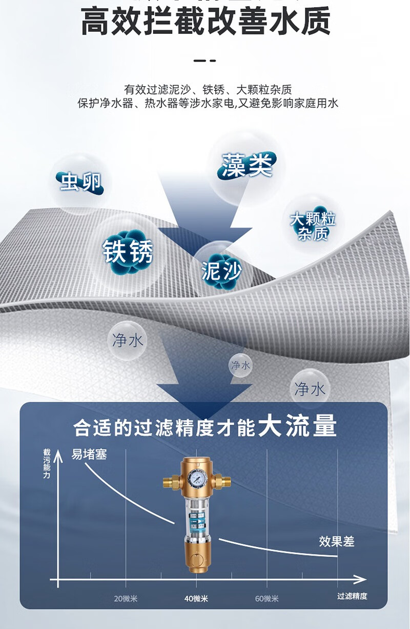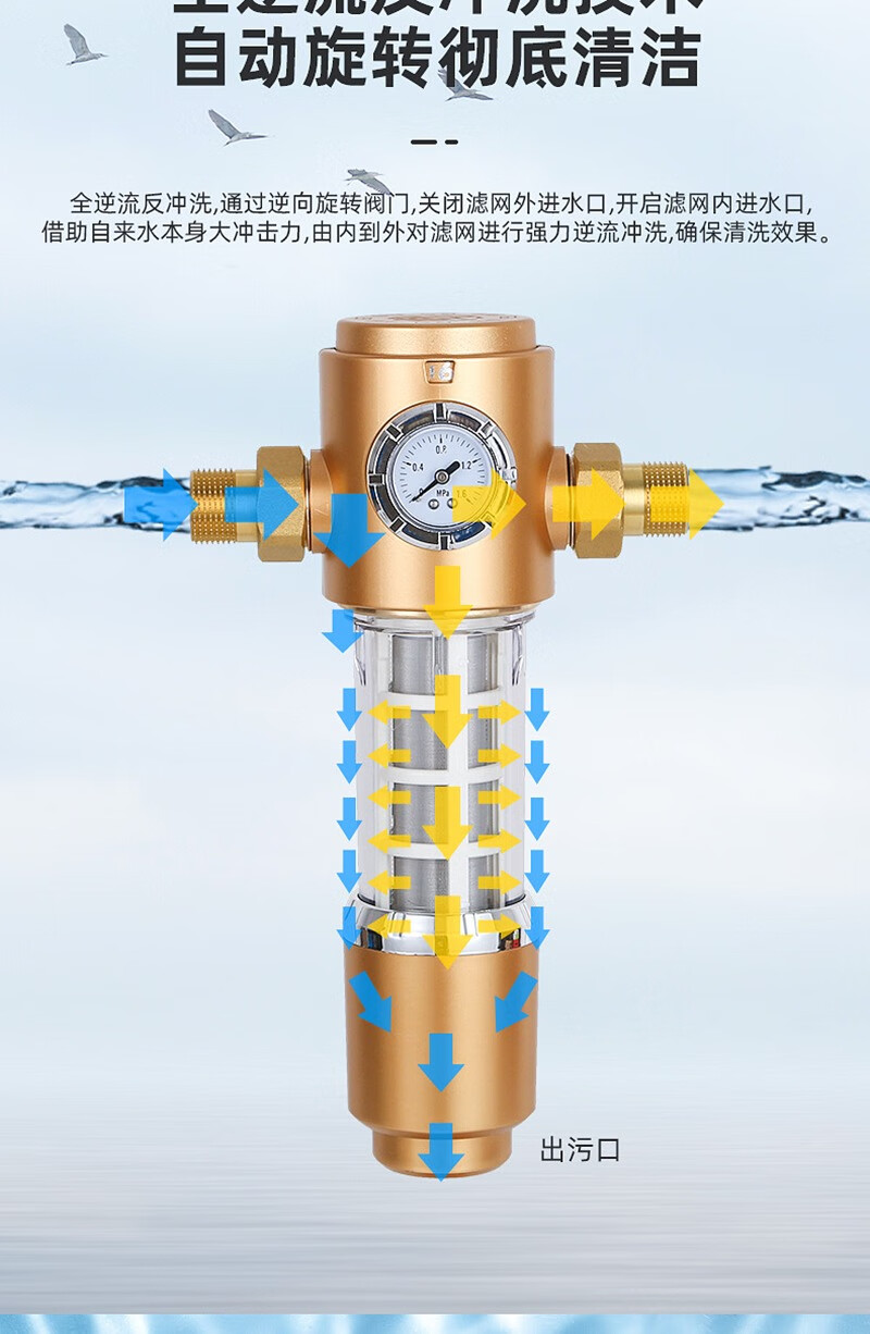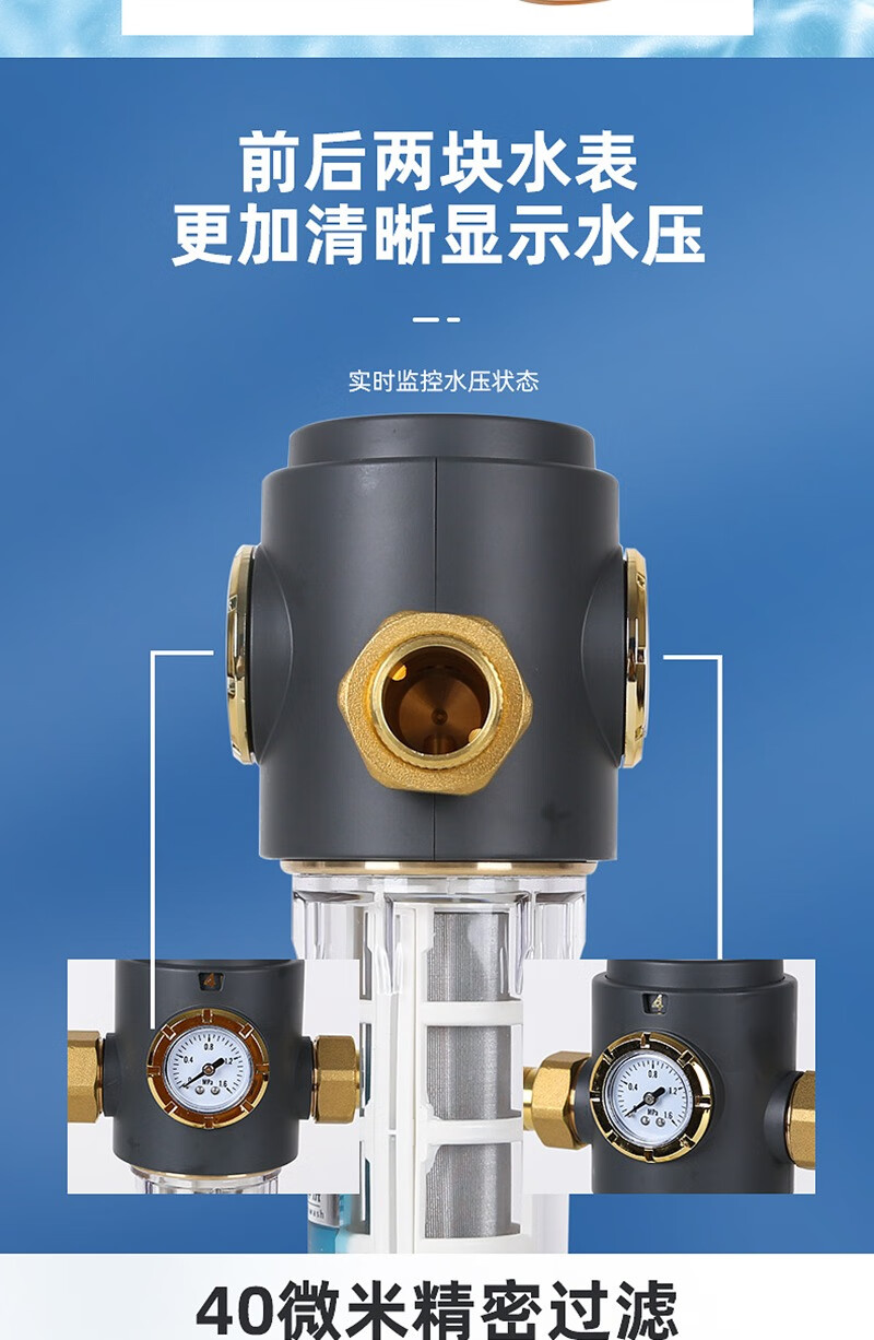 Smith pre-filter large flow automatic backwash household water purifier whole house filter black directional automatic cleaning self-installation