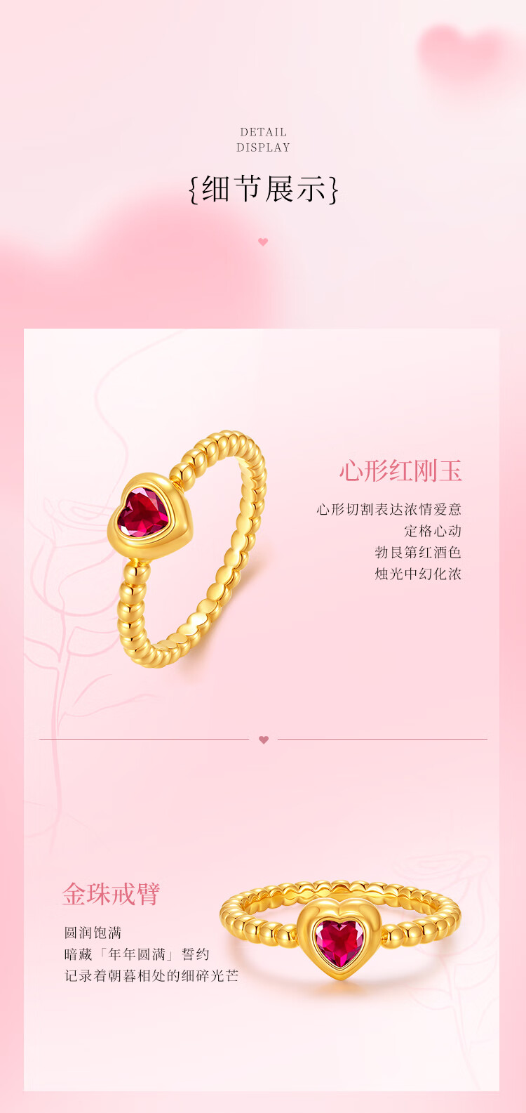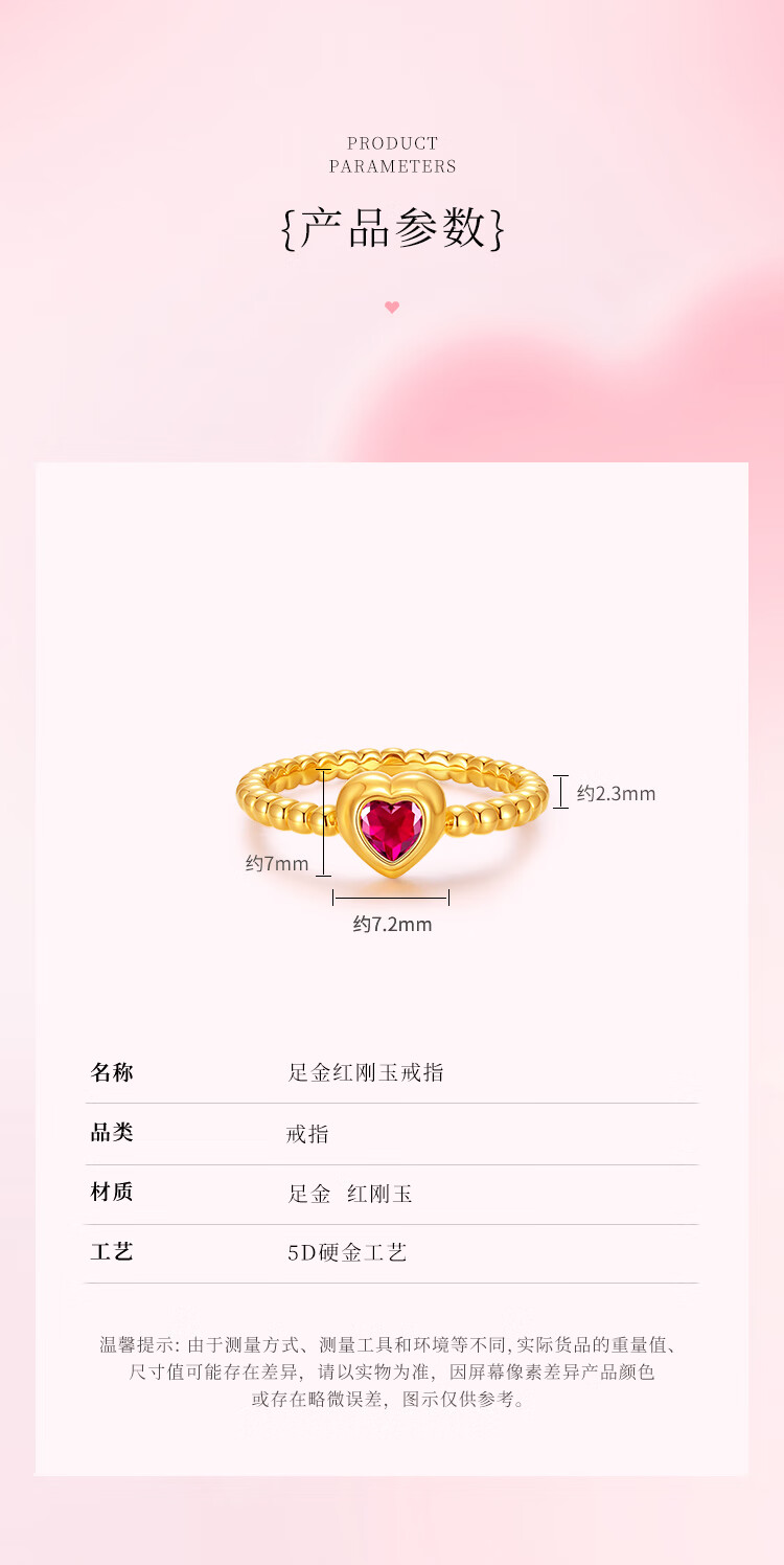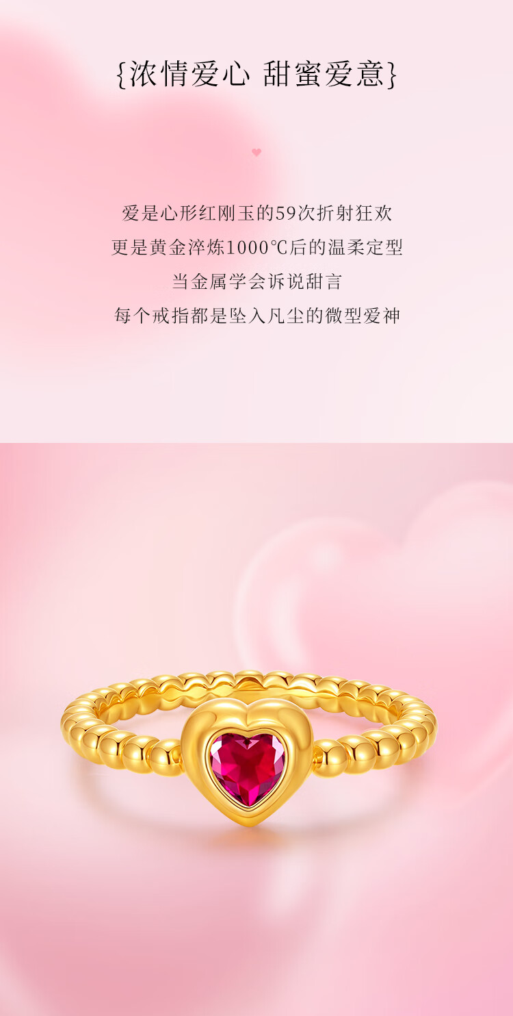 Chiba Jewelry Pure gold 5D red corundum ring, gilt heart, scarlet flame, heart-shaped, full of love, a birthday gift for my girlfriend and wife, pure gold red corundum ring, gold weight is about 0.94g, size 10/Support for more refunds and less replenishment