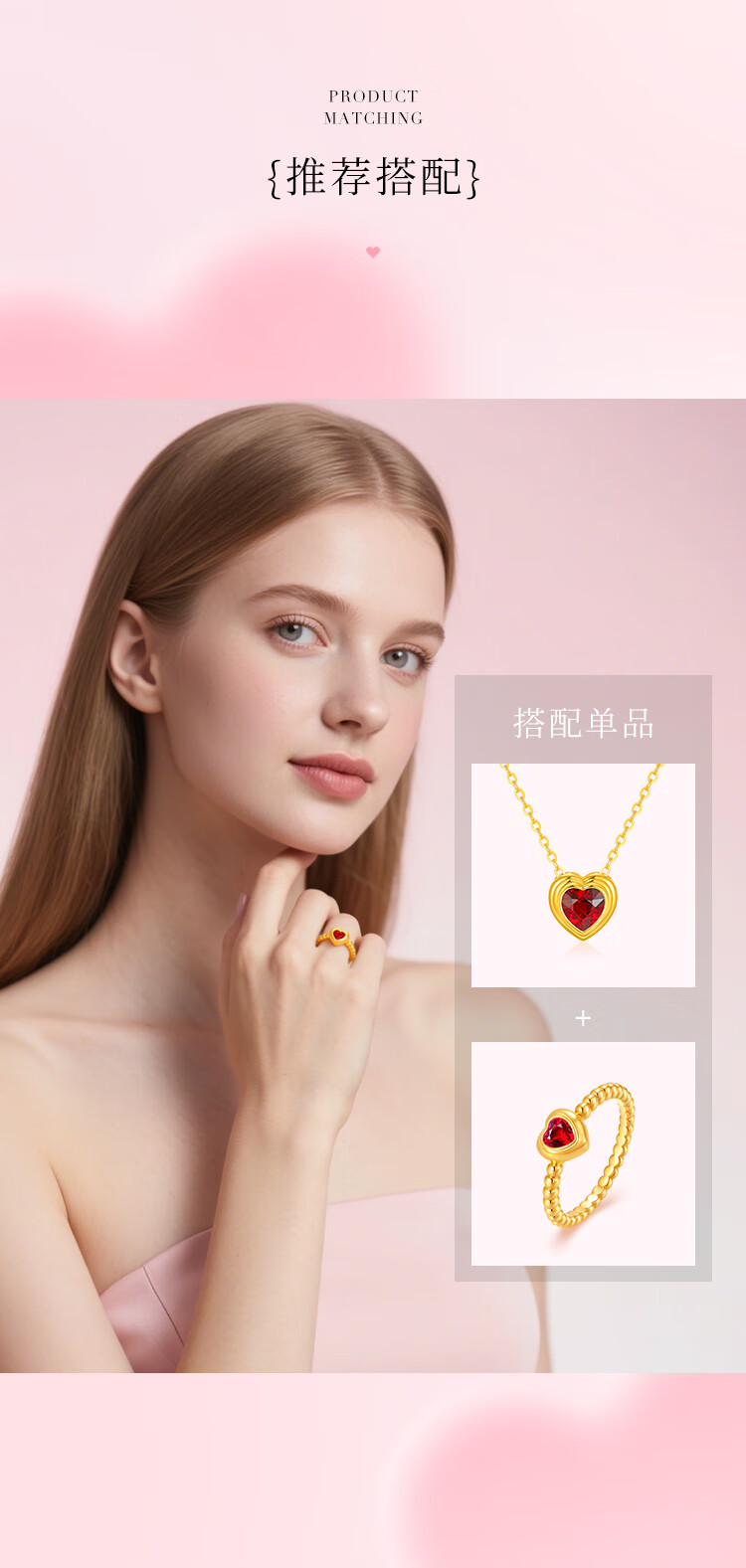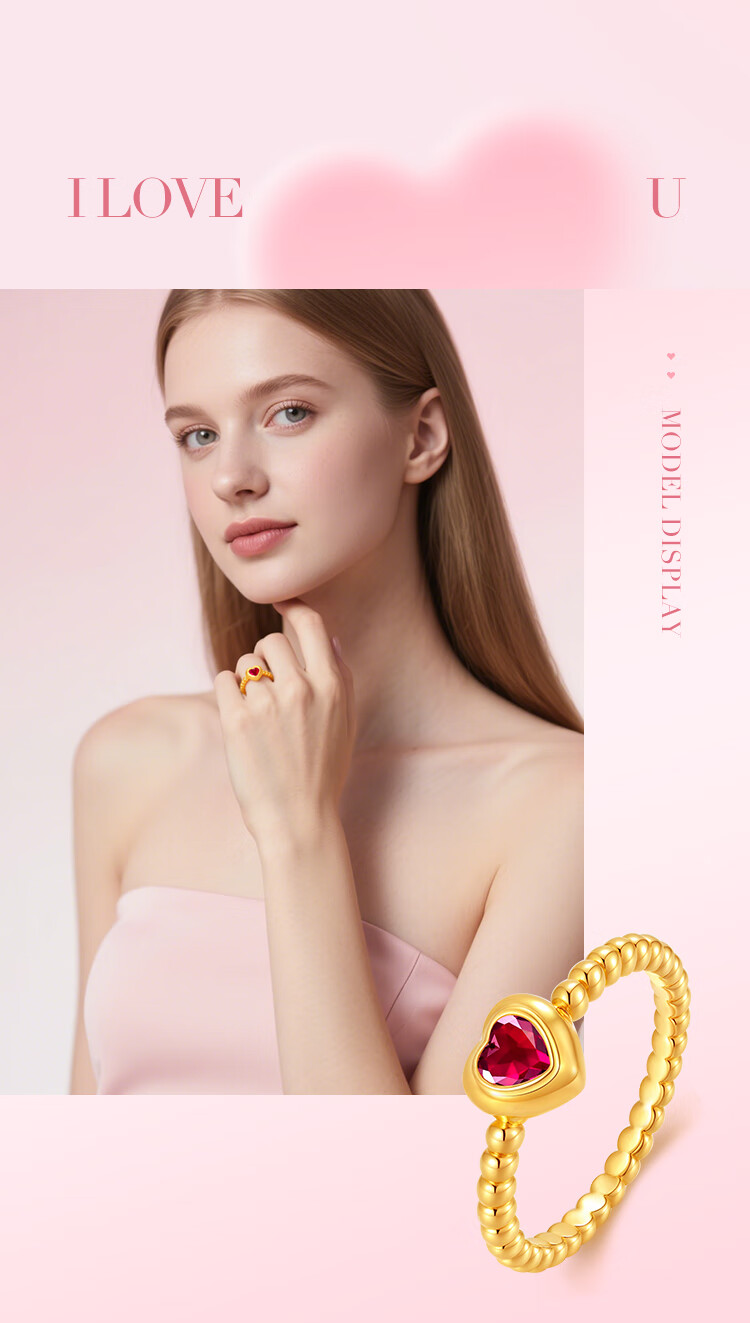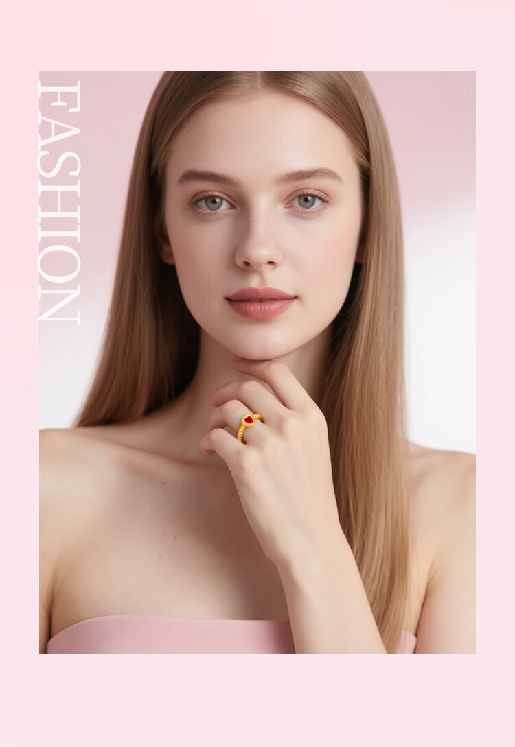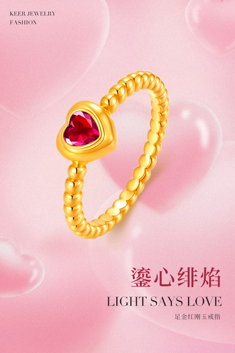 Chiba Jewelry Pure gold 5D red corundum ring, gilt heart, scarlet flame, heart-shaped, full of love, a birthday gift for my girlfriend and wife, pure gold red corundum ring, gold weight is about 0.94g, size 10/Support for more refunds and less replenishment