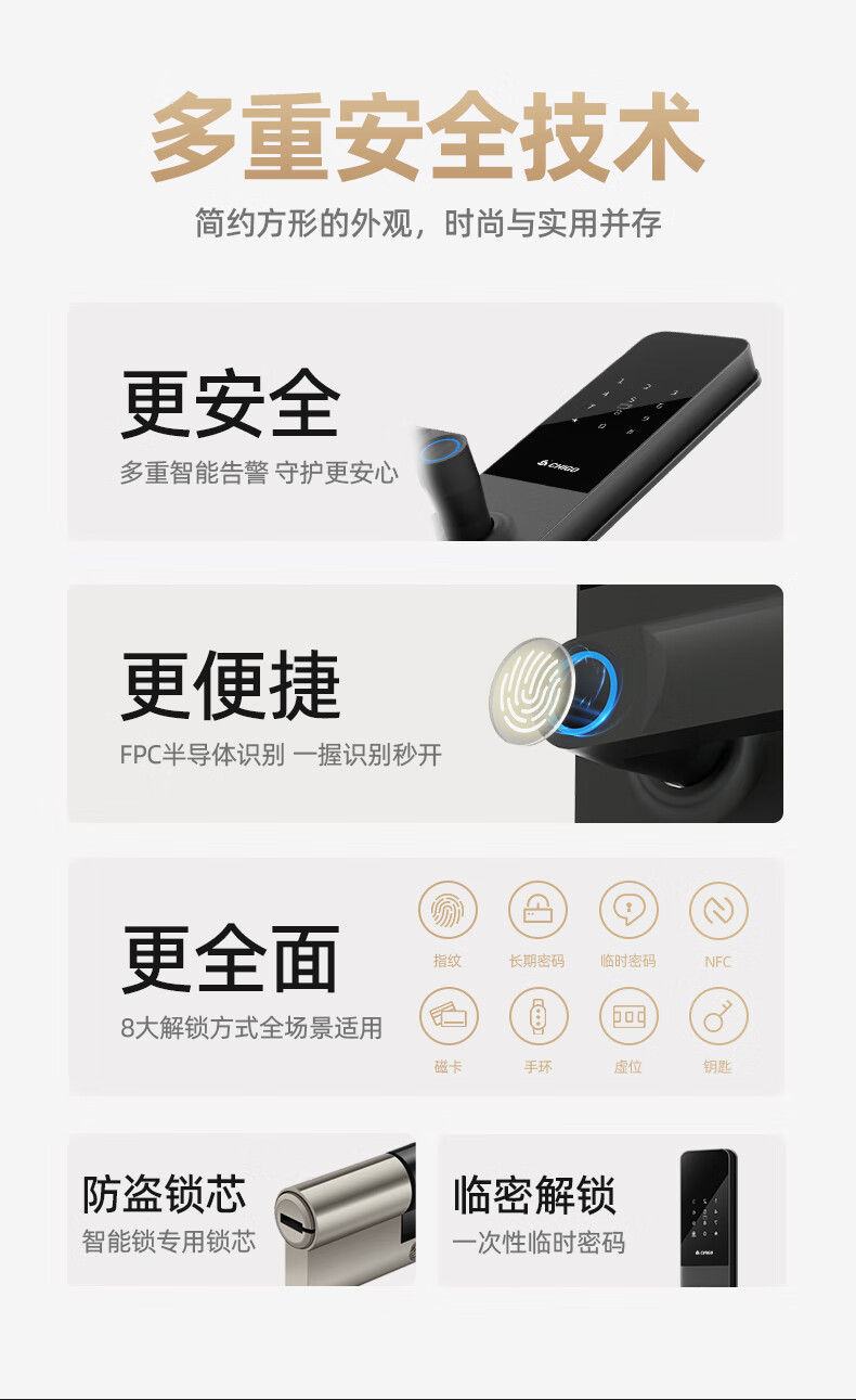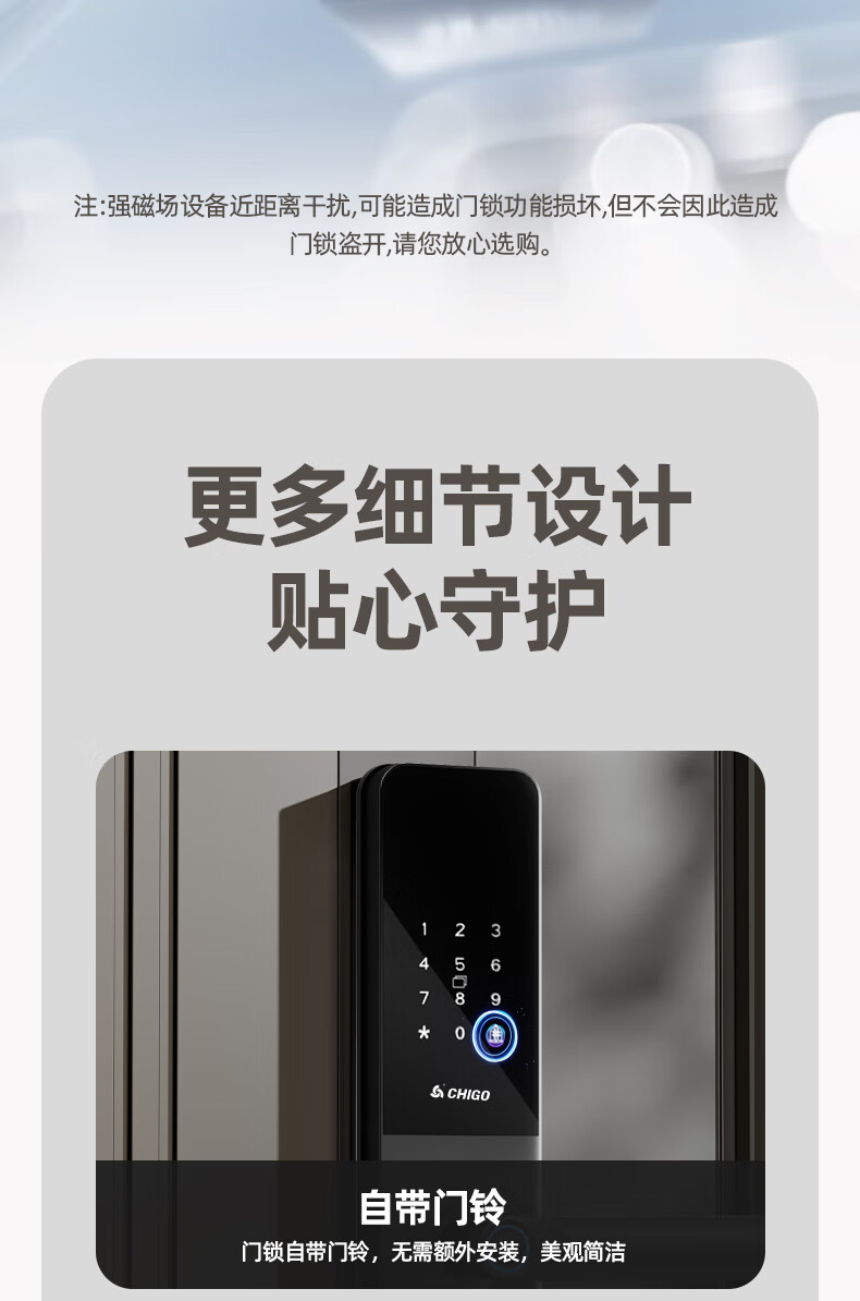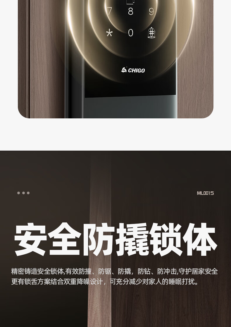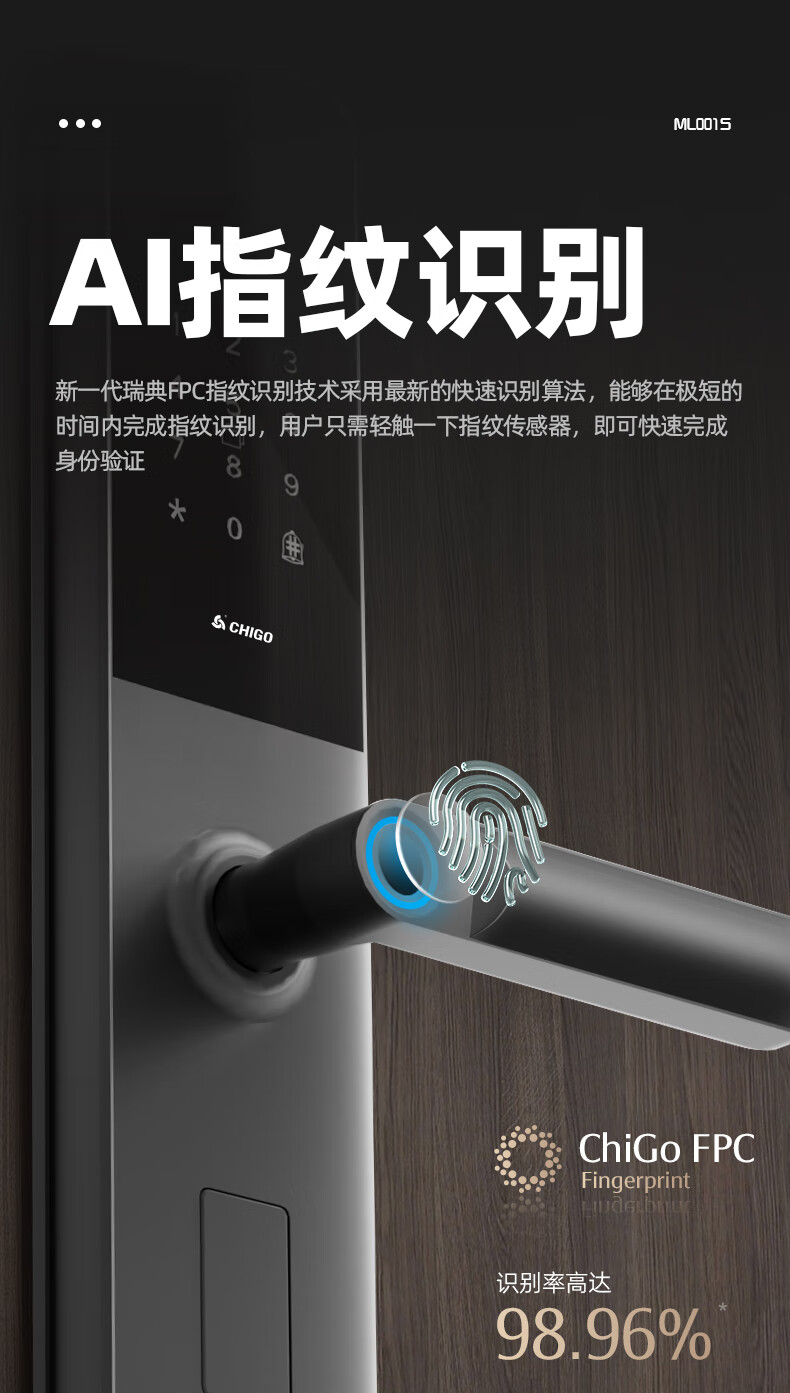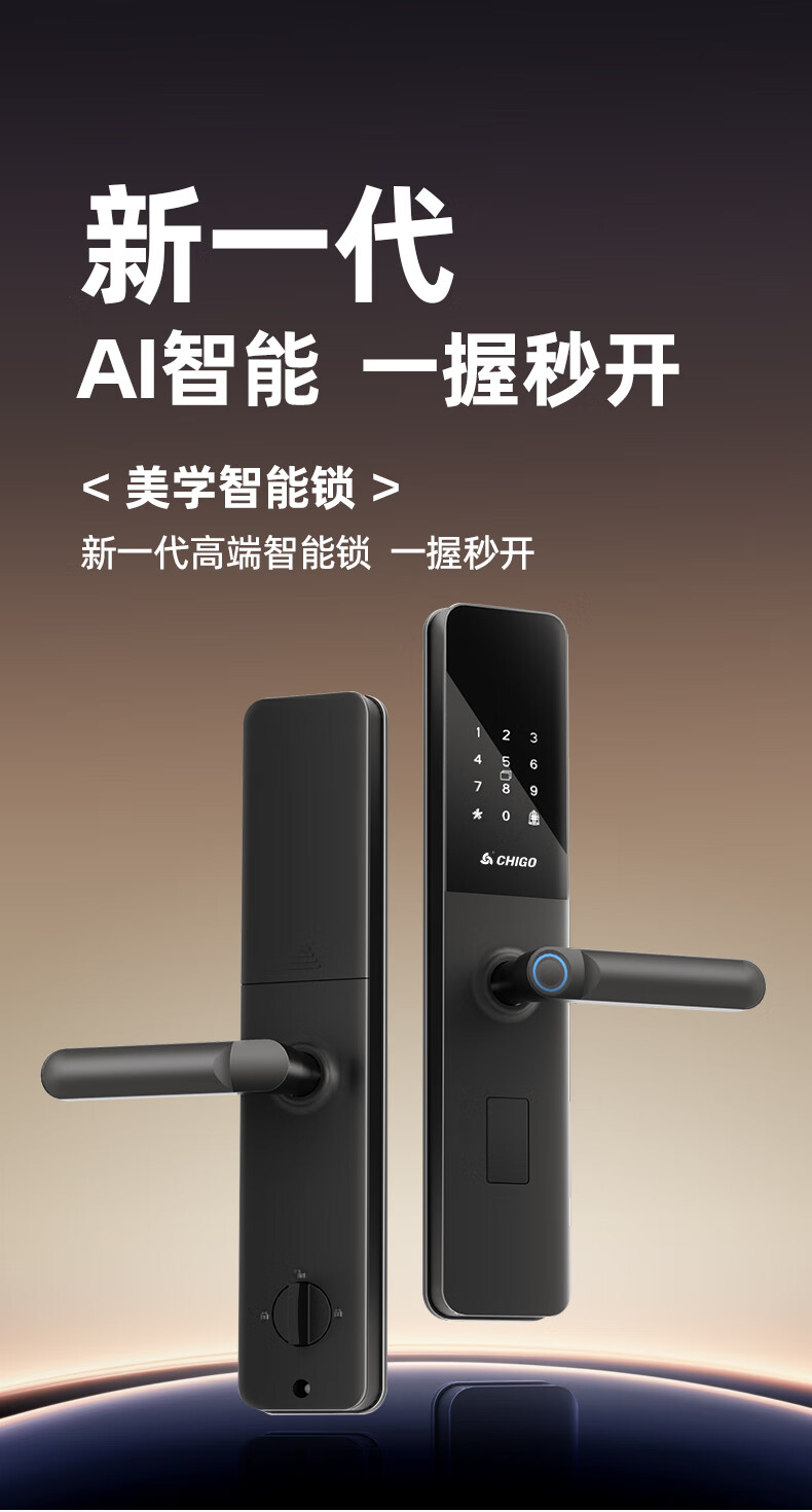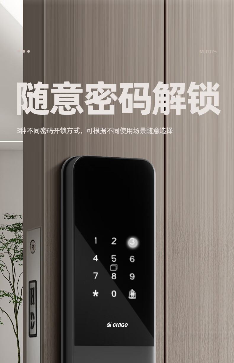 Chigo Smart Door Lock Password Fingerprint Lock B&B Apartment Password Lock Entry Door Home Smart Lock Anti-Theft Door Electronic Lock Eight Unlocks + Remote Temporary Password + Free Installation