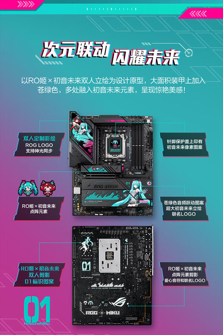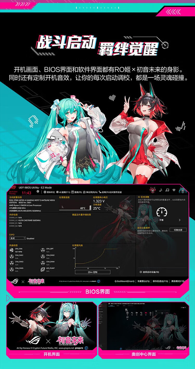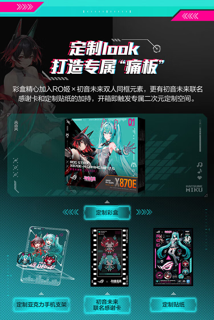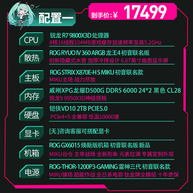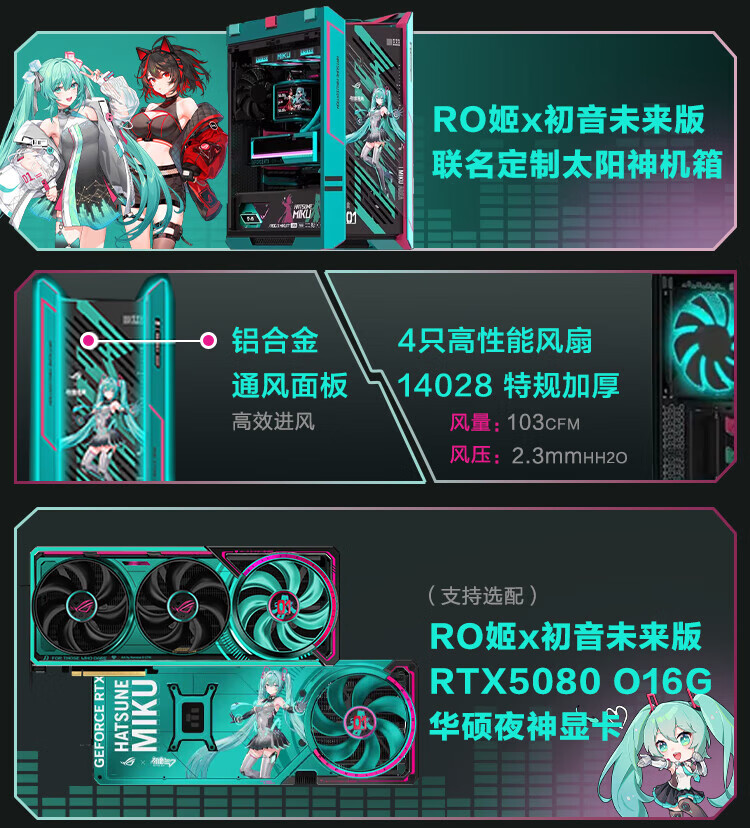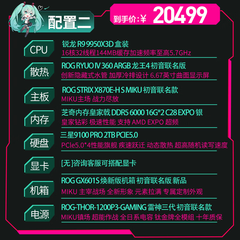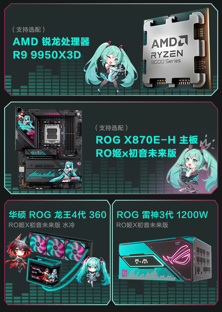 ASUS ROG Hatsune Family Bucket AMD R7 9800X3D Yagami RTX5080 RO Hime x Hatsune Miku Edition Sun God Assembled Computer Desktop Complete Computer Host Configuration Three R7 9800X3D/5080 Hatsune Co-branded Model