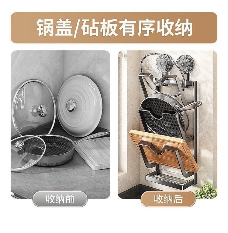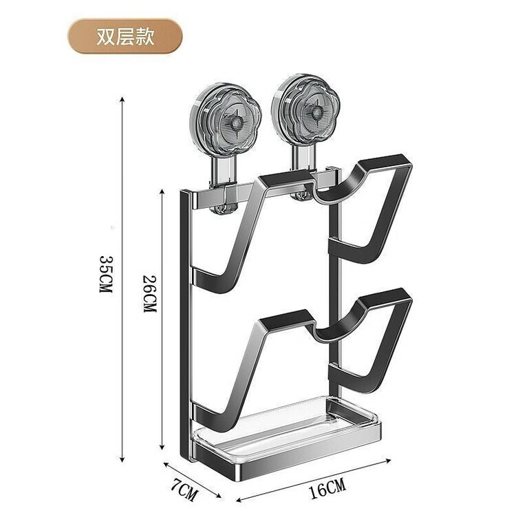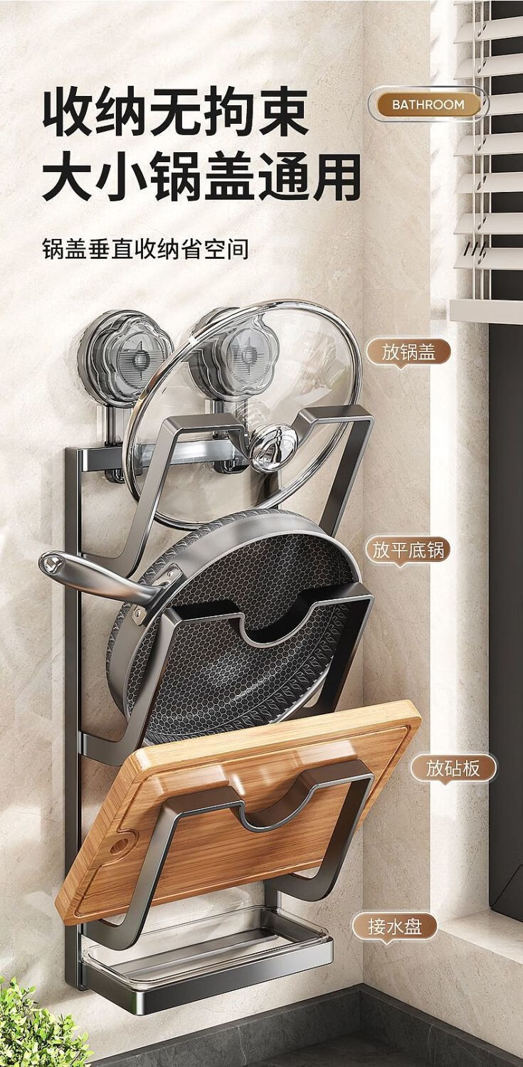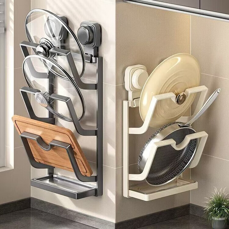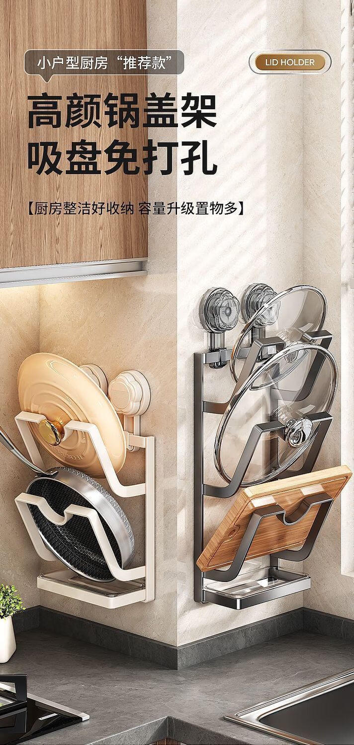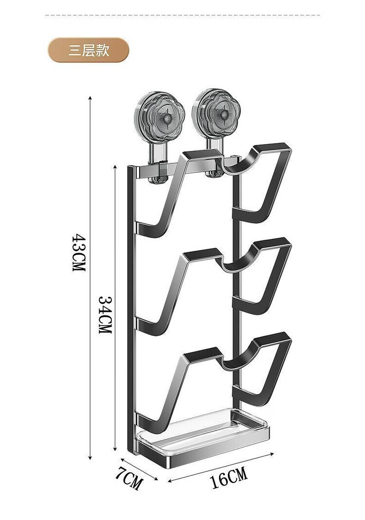 Huamuxi suction cup pot lid holder on the wall without punching wall-mounted multi-functional bathroom kitchen rack bathroom mirror bathroom mirror bathroom mirror double suction cup gun gray three-layer pot lid holder + 3 hooks