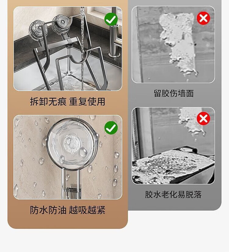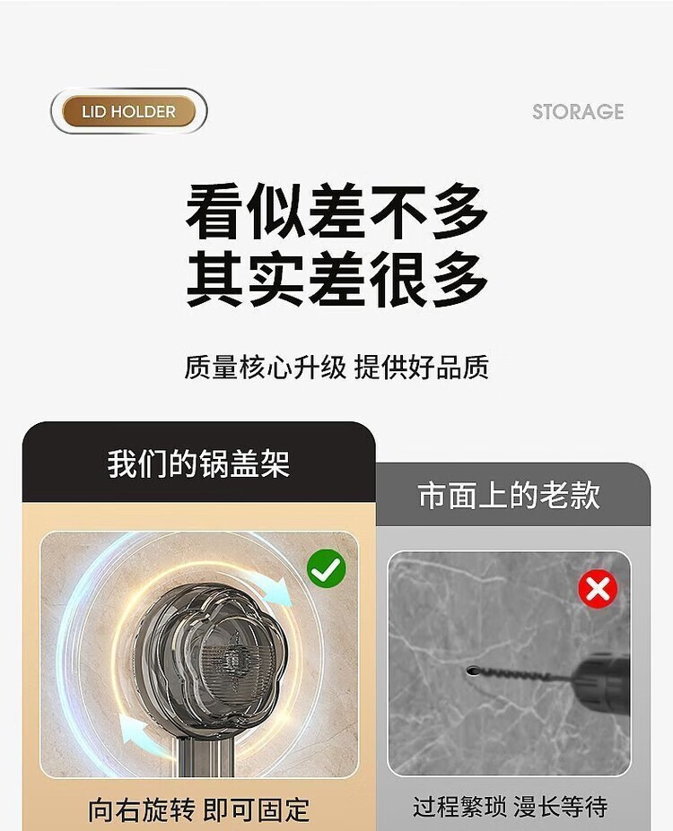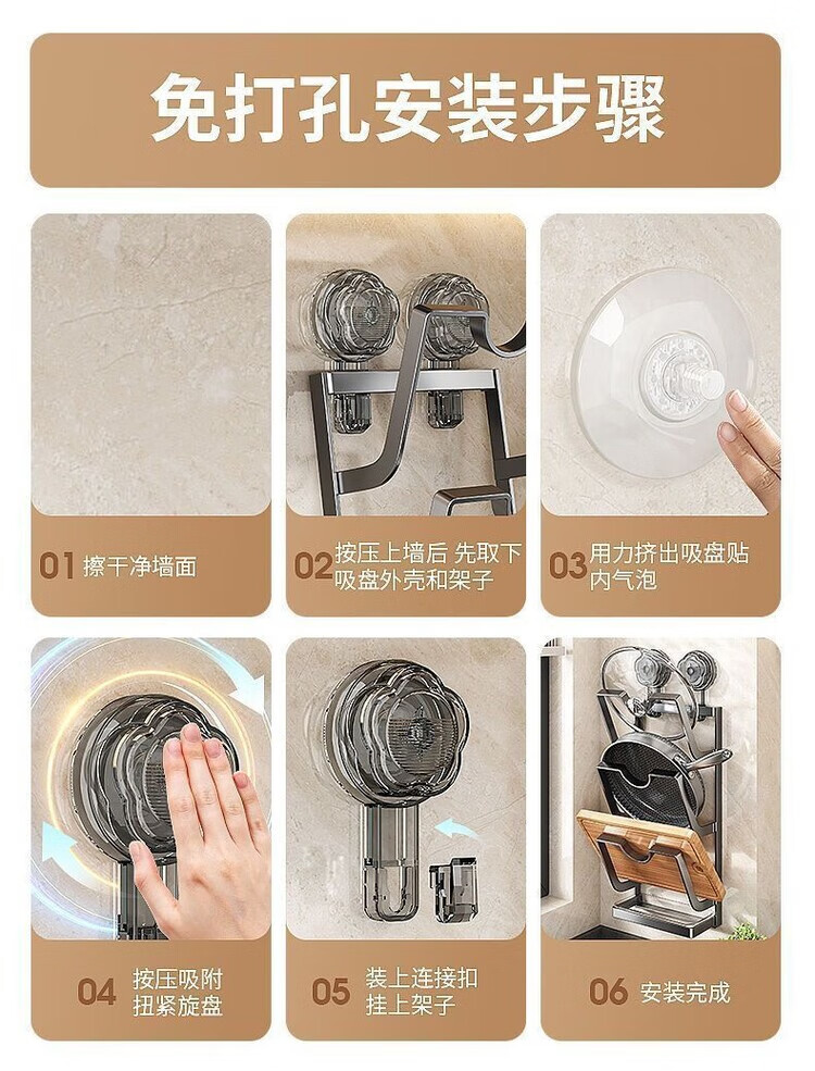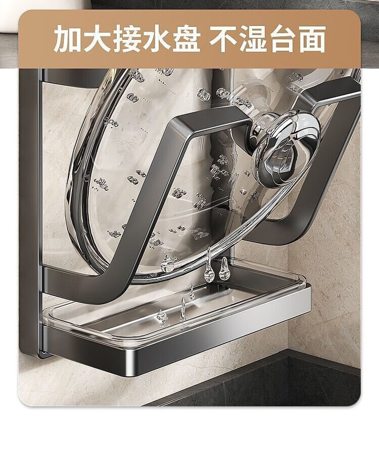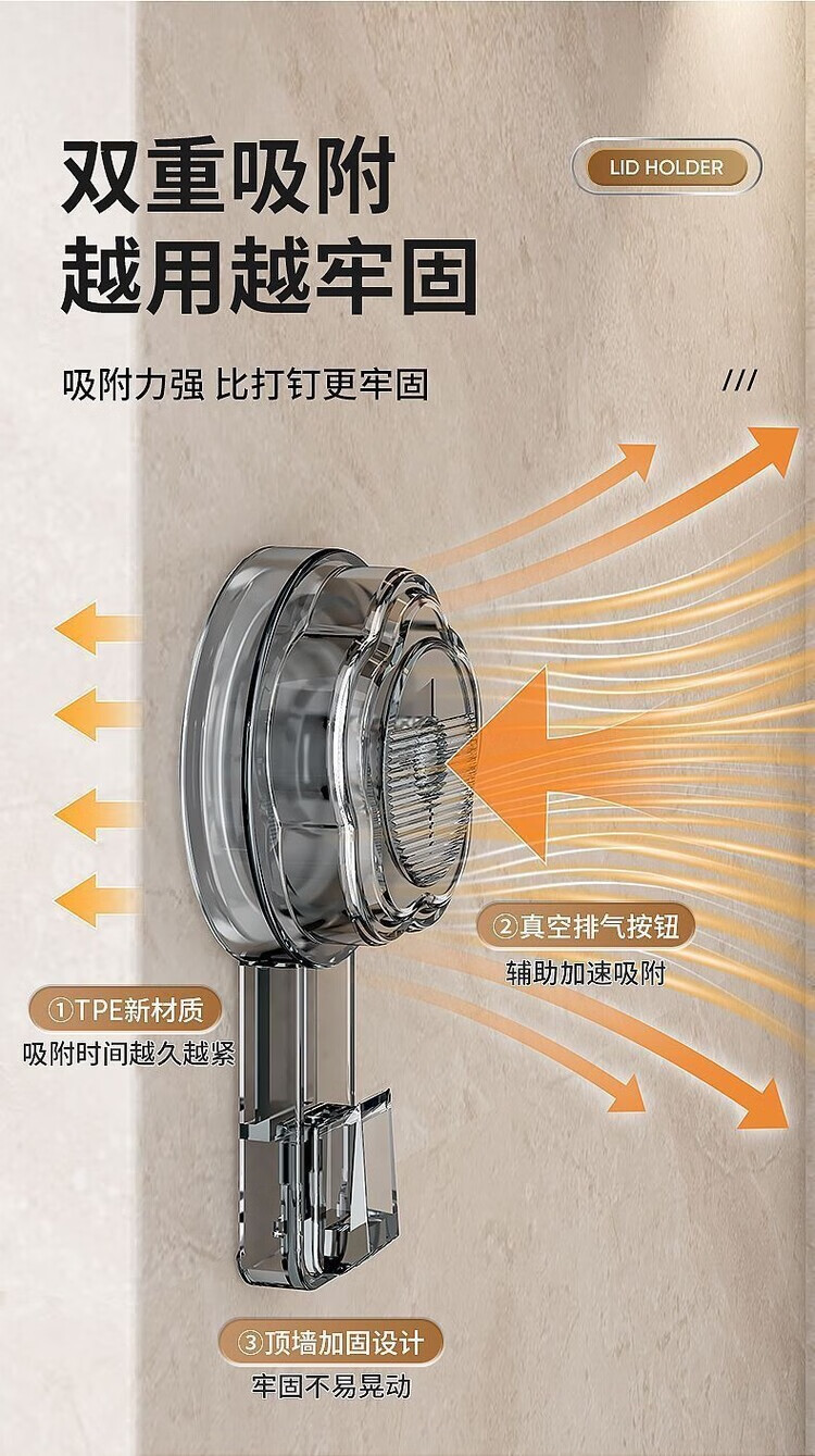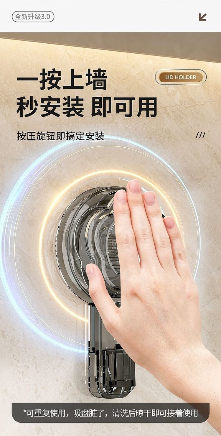 Huamuxi suction cup pot lid holder on the wall without punching wall-mounted multi-functional bathroom kitchen rack bathroom mirror bathroom mirror bathroom mirror double suction cup gun gray three-layer pot lid holder + 3 hooks