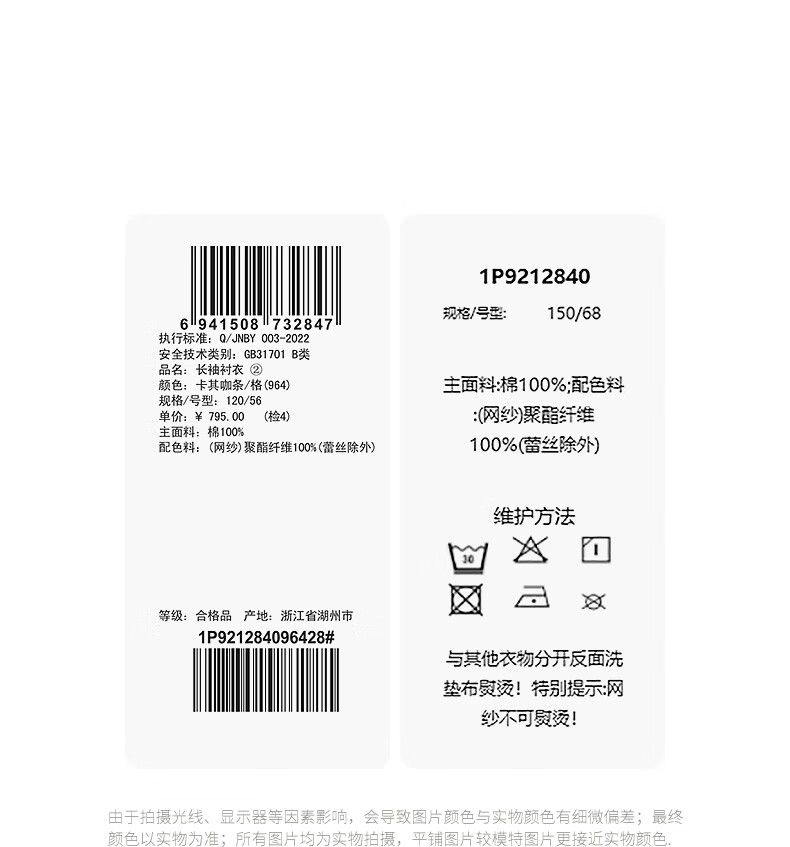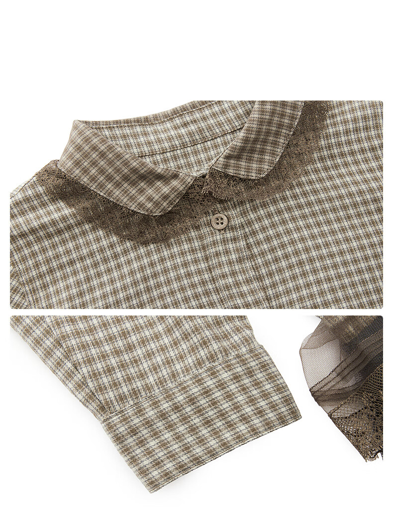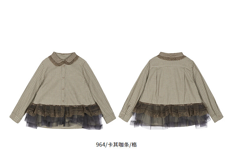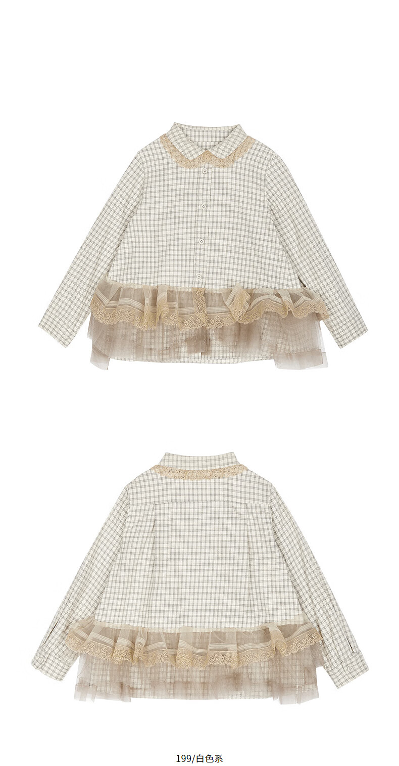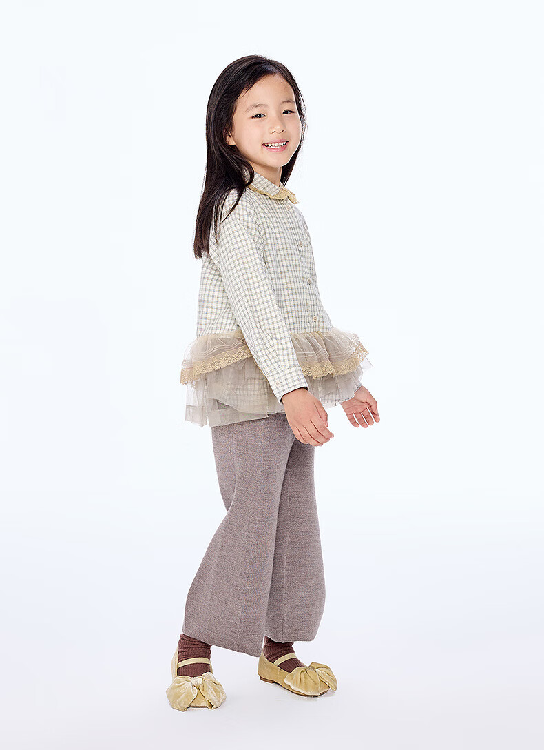 Jnby by JNBY The same style as the show, new Jiangnan Buyi children's long-sleeved shirt A-type loose 25 autumn girls 1P9212840 964/khaki coffee strip/grid 100 cm