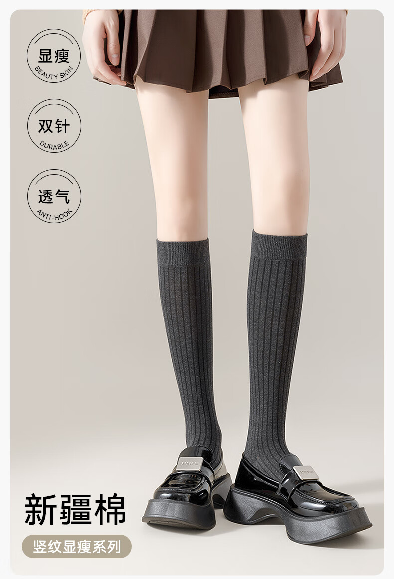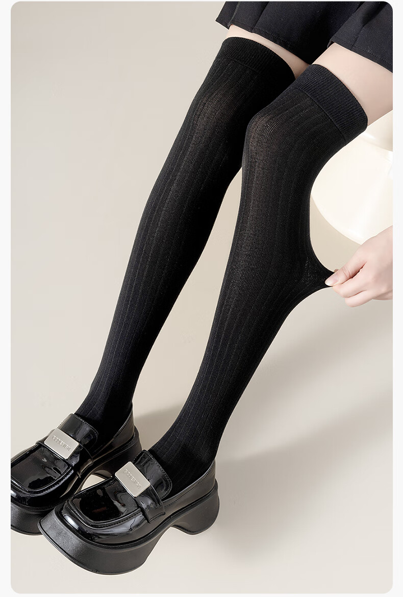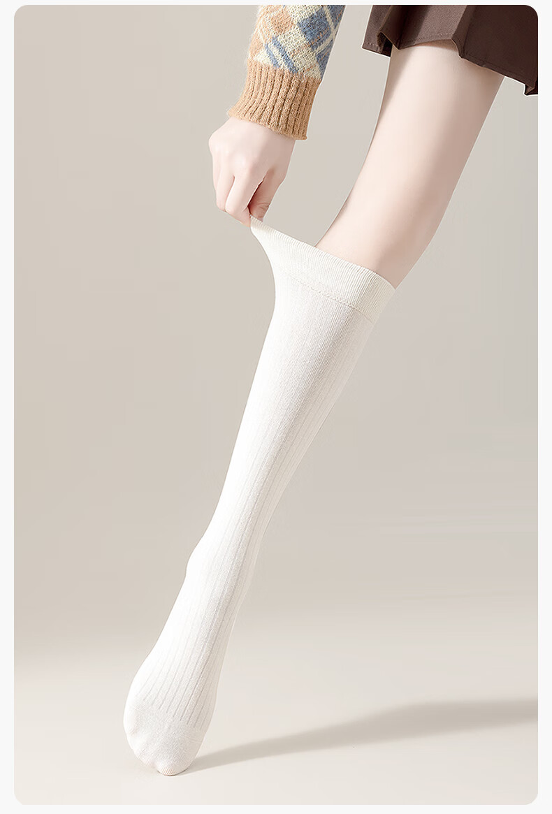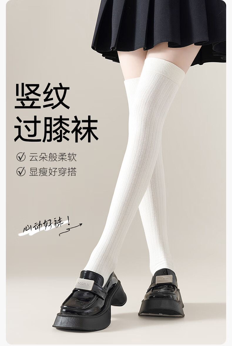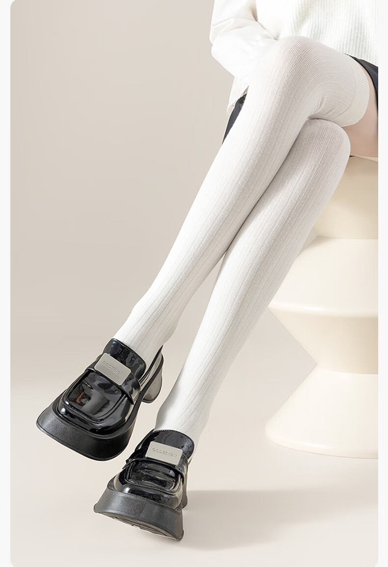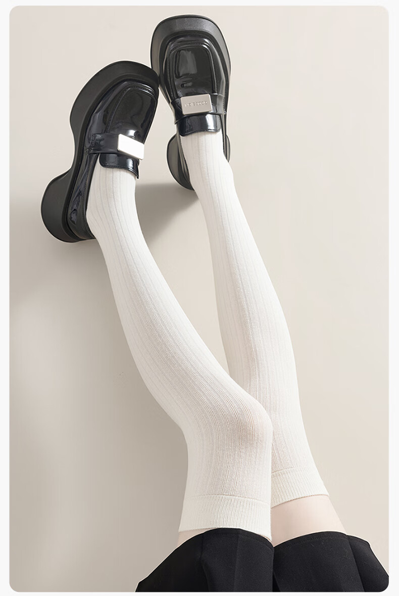 猫人白色过膝袜女春秋堆堆小腿棉袜秋冬保暖显瘦日系长筒大腿长腿袜子 【过膝袜-约50cm】白色 均码 -1双装