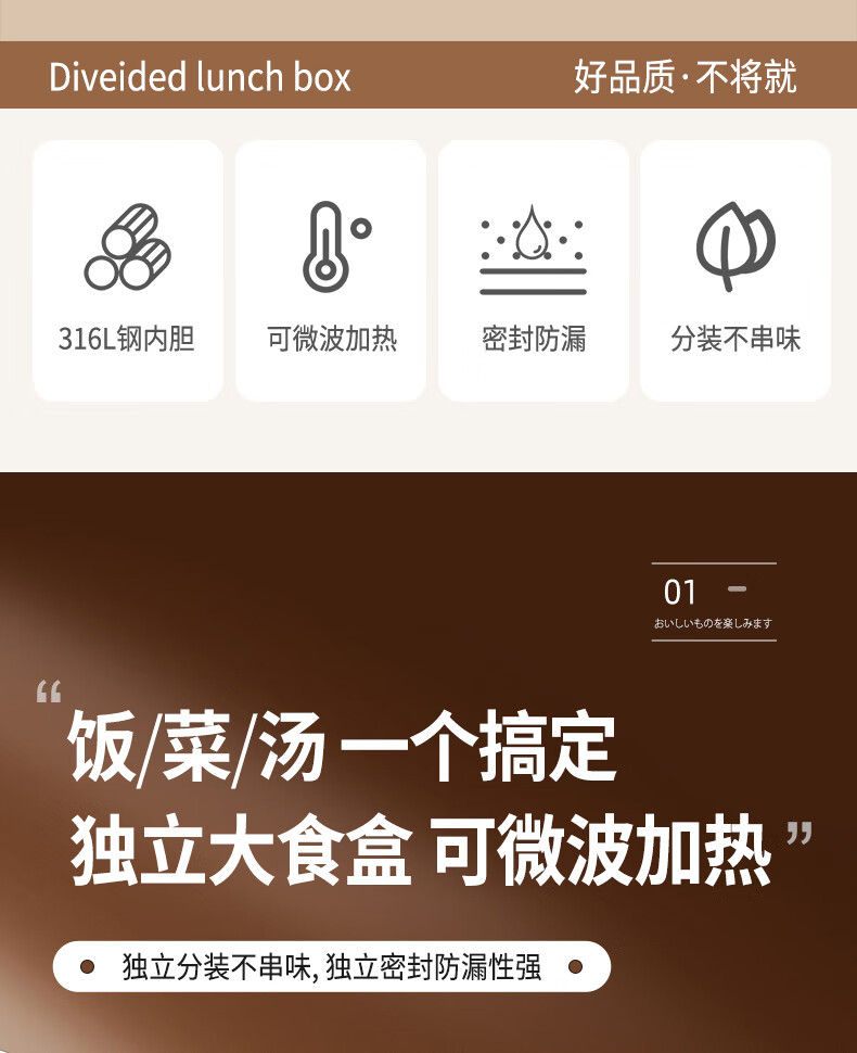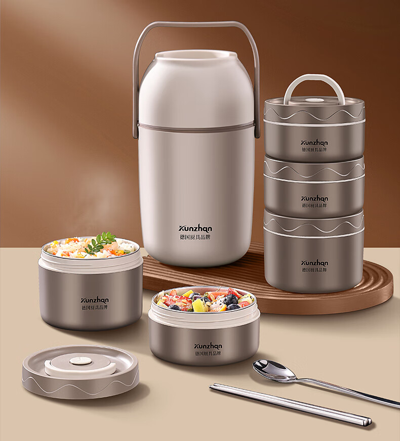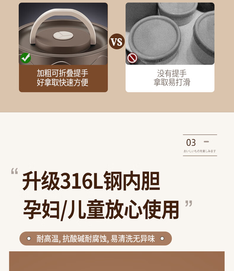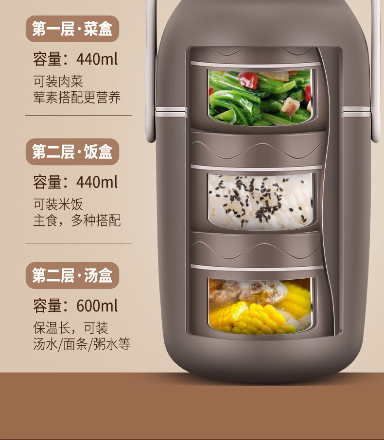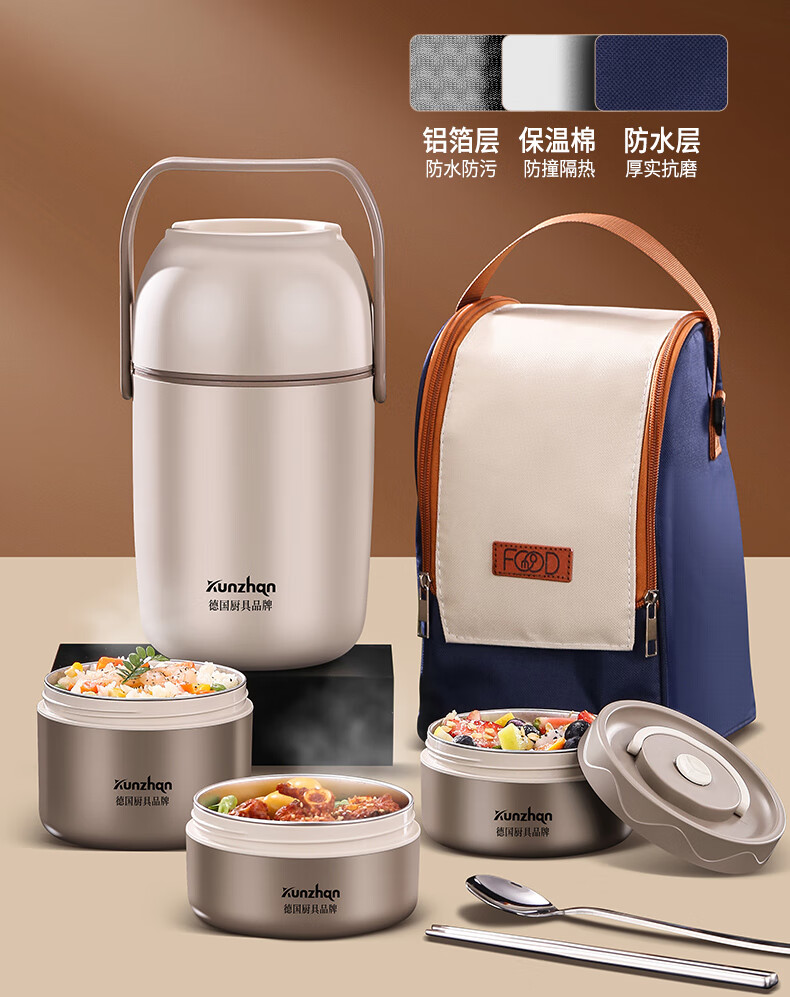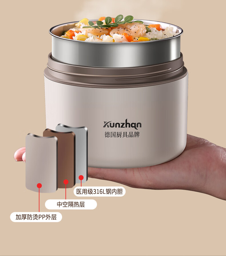 316 stainless steel insulated lunch box, extra long insulated lunch box for office workers, three-layer 304 student lunch box, B316 stainless steel - elegant white three-layer + thermal insulation