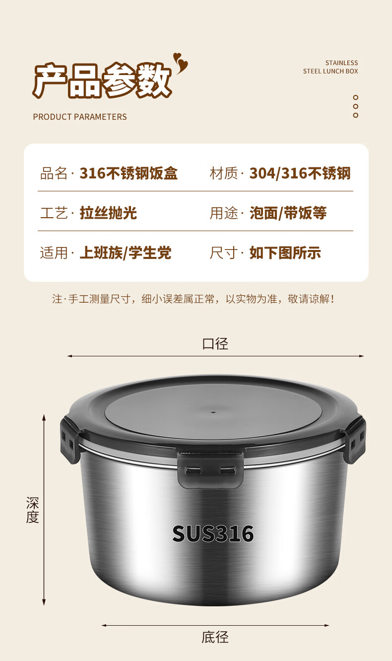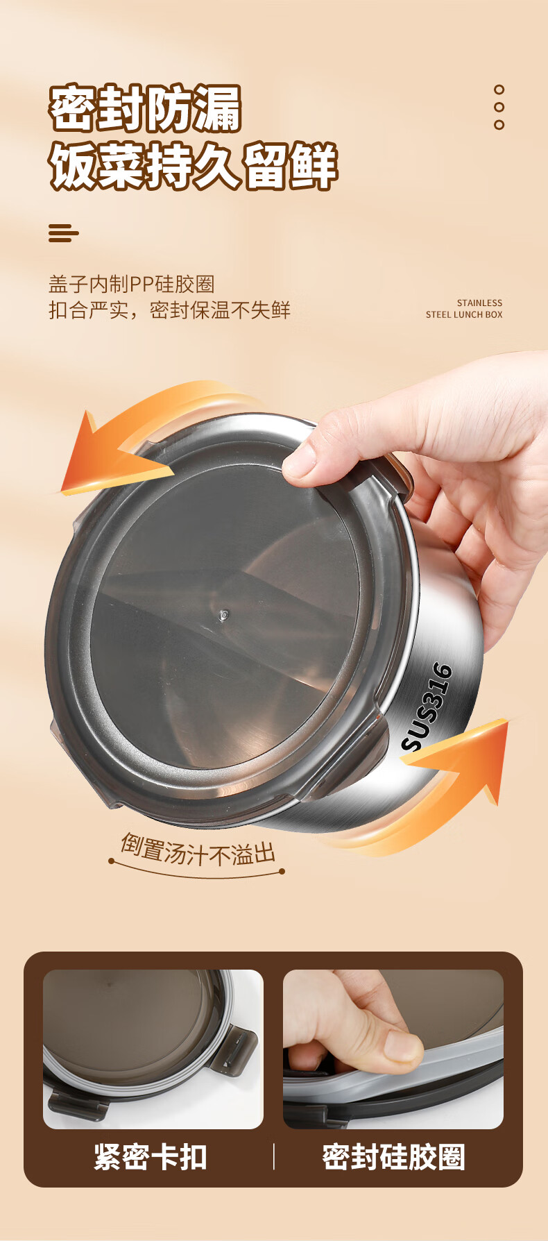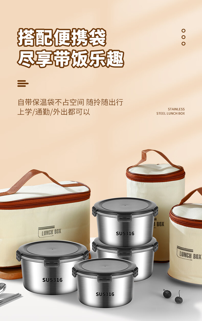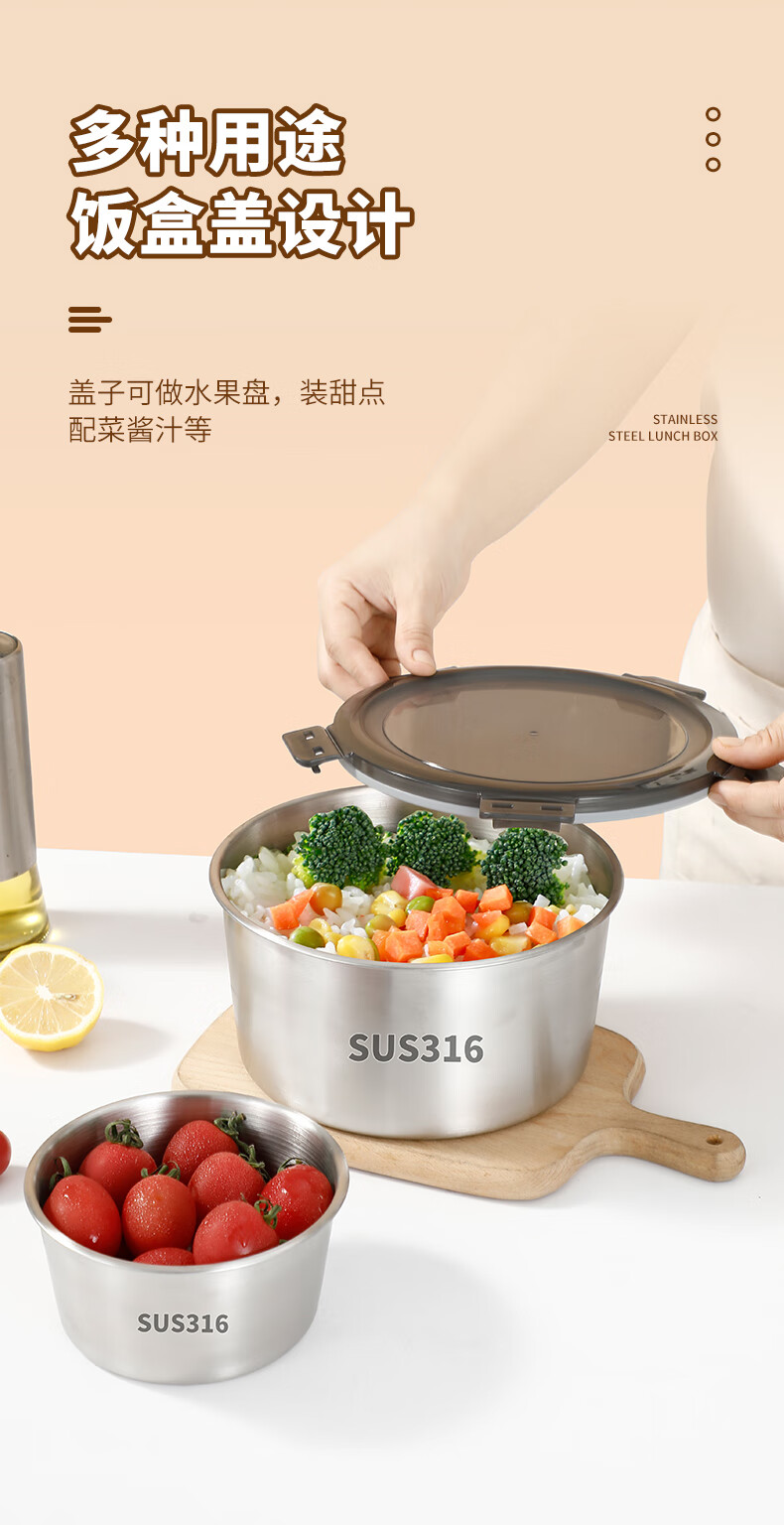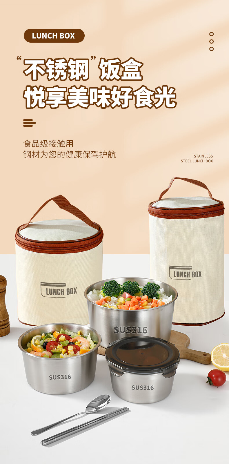 316 stainless steel lunch box for office workers 2025 new insulated bag lunch box lunch box special crisper box for primary school students inside - round 1 piece 400ML